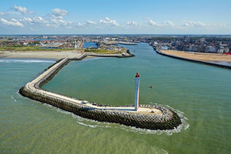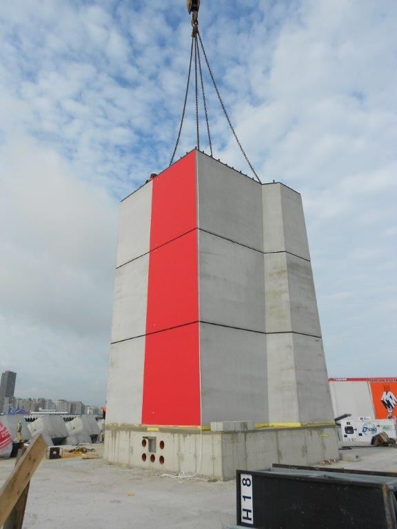 Tour radar du port d'Ostende. L'élégante construction est faite de 23 éléments préfabriqués en béton.