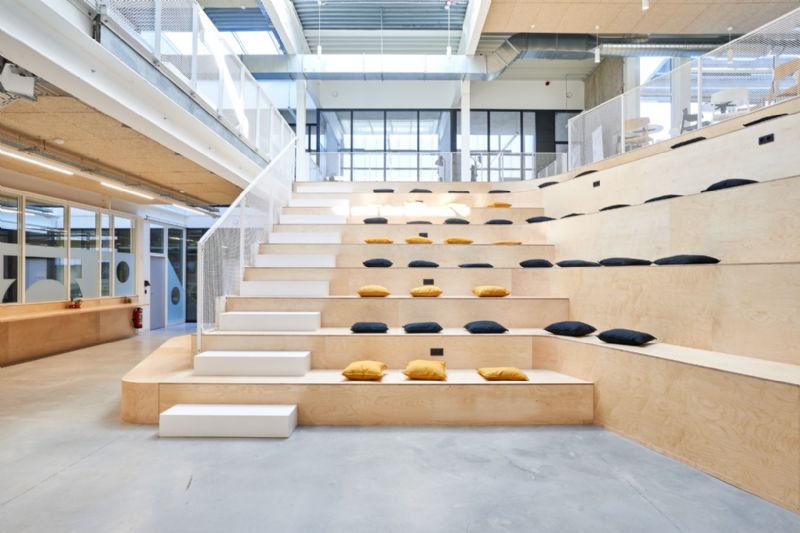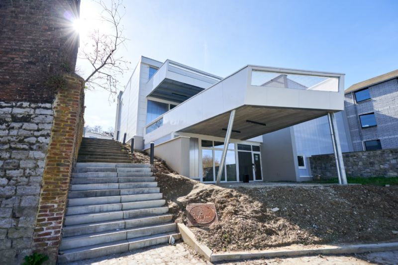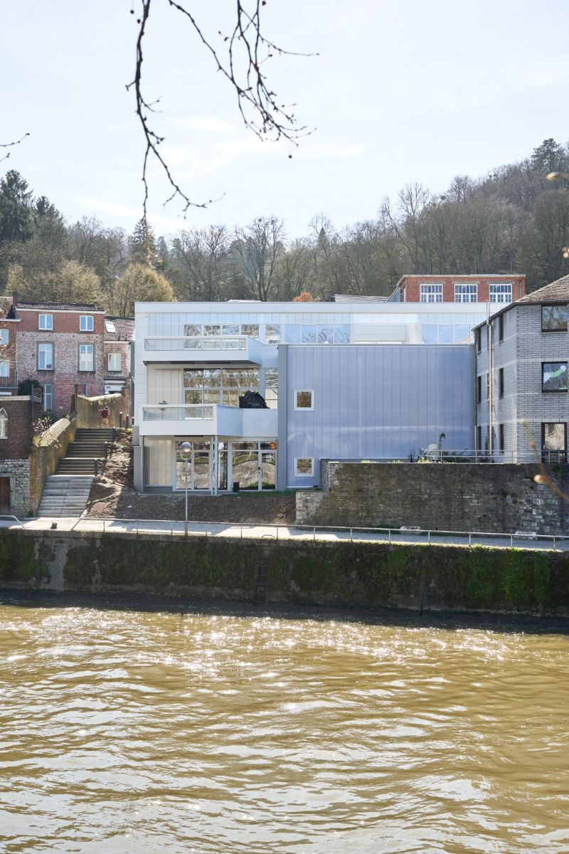 La nouvelle affectation du hall sportif, construit à l’origine par l’architecte Roger Bastin, en pôle artistique et numérique se veut respectueuse de l’existant. L’intervention est mesurée sans être timide pour assumer la fonction que le projet abrite : la créativité sous toutes ses formes. Situé entre le quai de Sambre et l’Avenue Reine Astrid, le projet se veut accueillant et visible, tel un signal, depuis les deux interfaces du site.