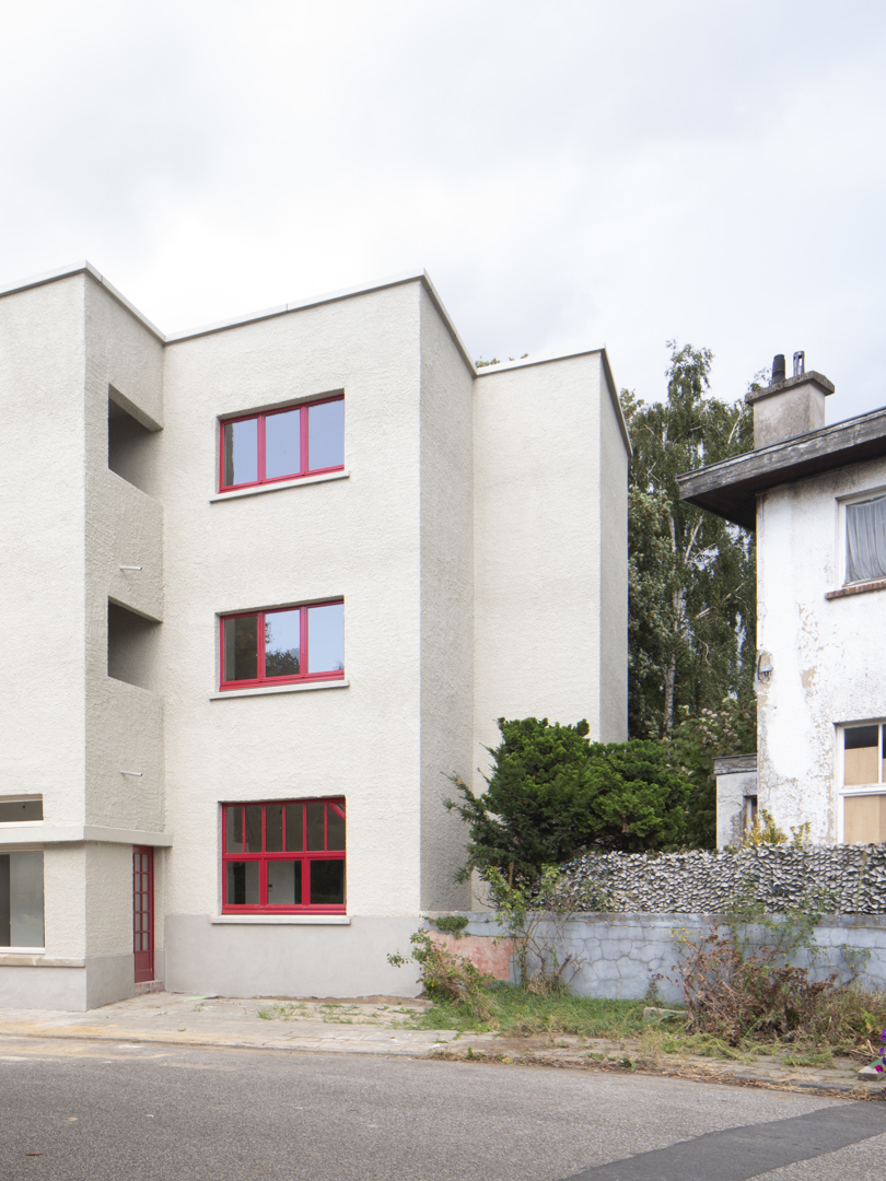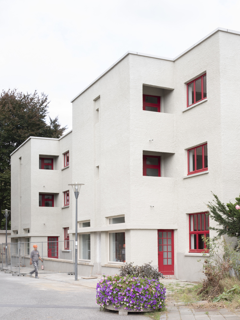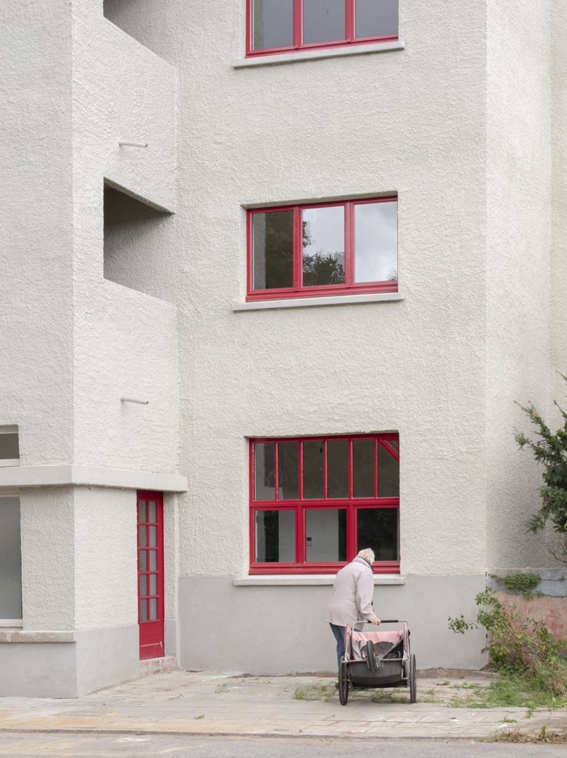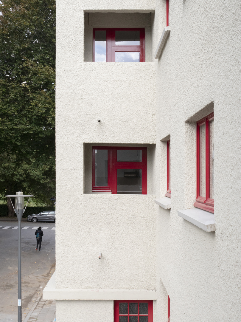 Ingrijpende renovatie van sociale woningen in de Cité Moderne (V. Bourgeois), gericht op het verenigen van erfgoedbehoud en aanpassing aan hedendaagse normen. De opdracht betreft de transformatie van 45 eenheden naar 28 kwalitatieve en diverse woningen (van 1 tot 4 kamers), met integratie van 30% grote woningen en aangepaste units voor personen met beperkte mobiliteit (PMR). Het project verbetert de bewoonbaarheid (doorgaande woonkamers, heldere indeling, volledige uitrusting), de energieprestaties en de naleving van de regelgeving (RRU, EPB, brandveiligheid), terwijl het de oorspronkelijke architecturale en stedelijke kwaliteiten respecteert.