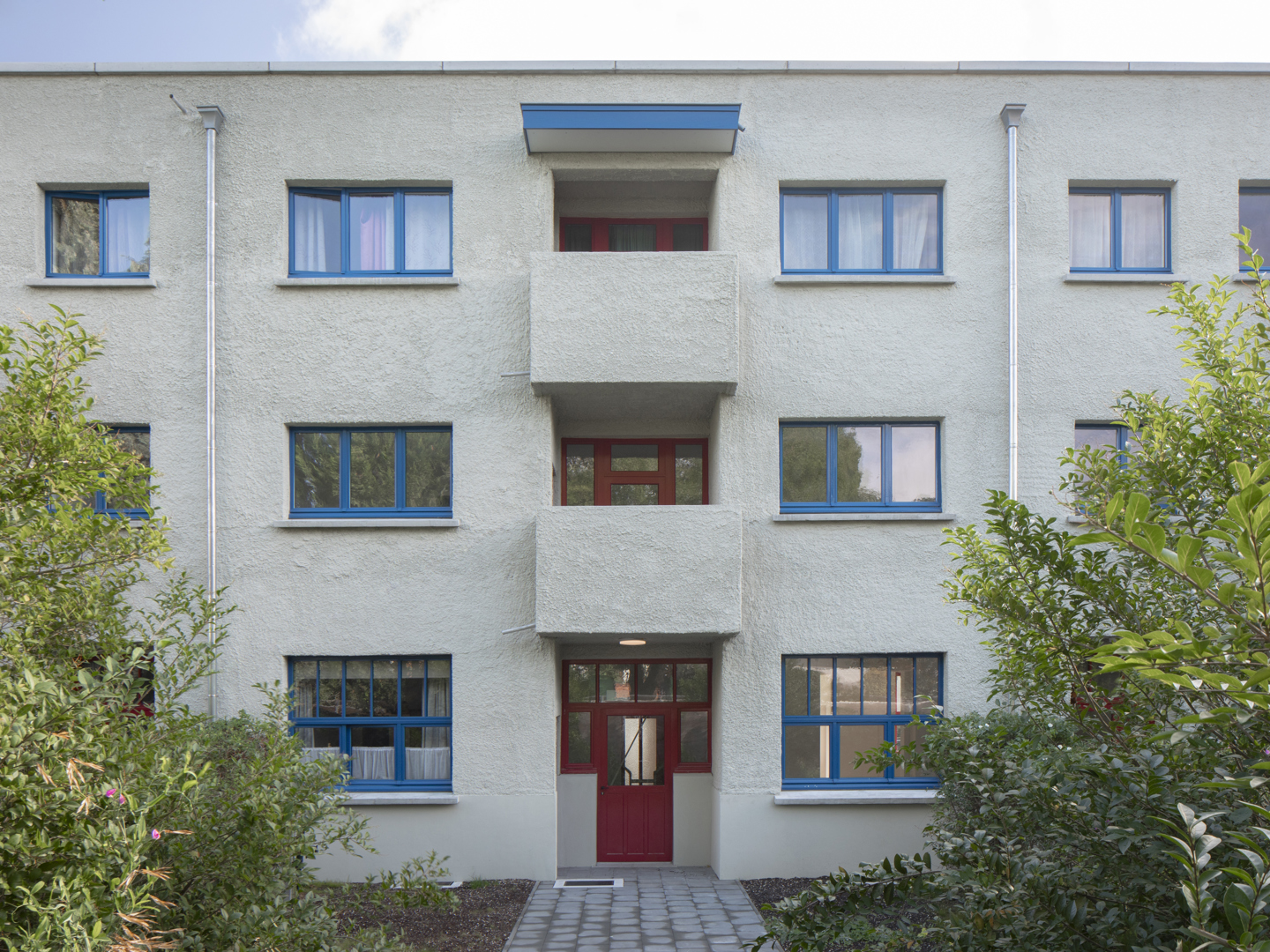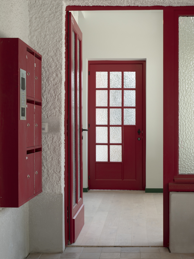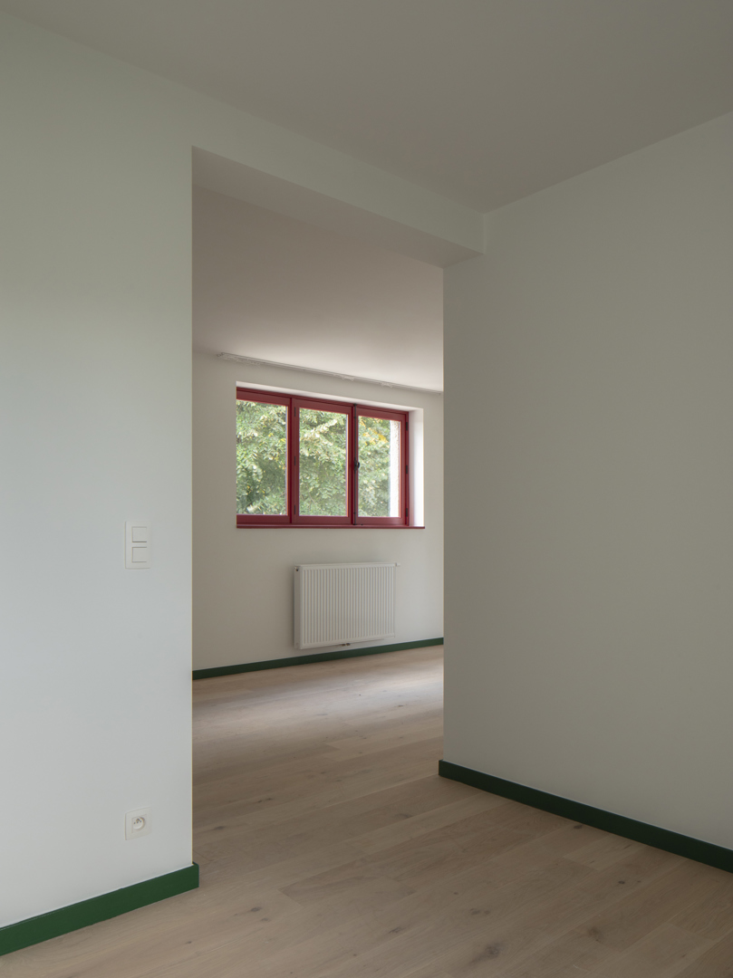 Ingrijpende renovatie van sociale woningen in de Cité Moderne (V. Bourgeois), gericht op het verenigen van erfgoedbehoud en aanpassing aan hedendaagse normen. De opdracht betreft de transformatie van 45 eenheden naar 28 kwalitatieve en diverse woningen (van 1 tot 4 kamers), met integratie van 30% grote woningen en aangepaste units voor personen met beperkte mobiliteit (PMR). Het project verbetert de bewoonbaarheid (doorgaande woonkamers, heldere indeling, volledige uitrusting), de energieprestaties en de naleving van de regelgeving (RRU, EPB, brandveiligheid), terwijl het de oorspronkelijke architecturale en stedelijke kwaliteiten respecteert.