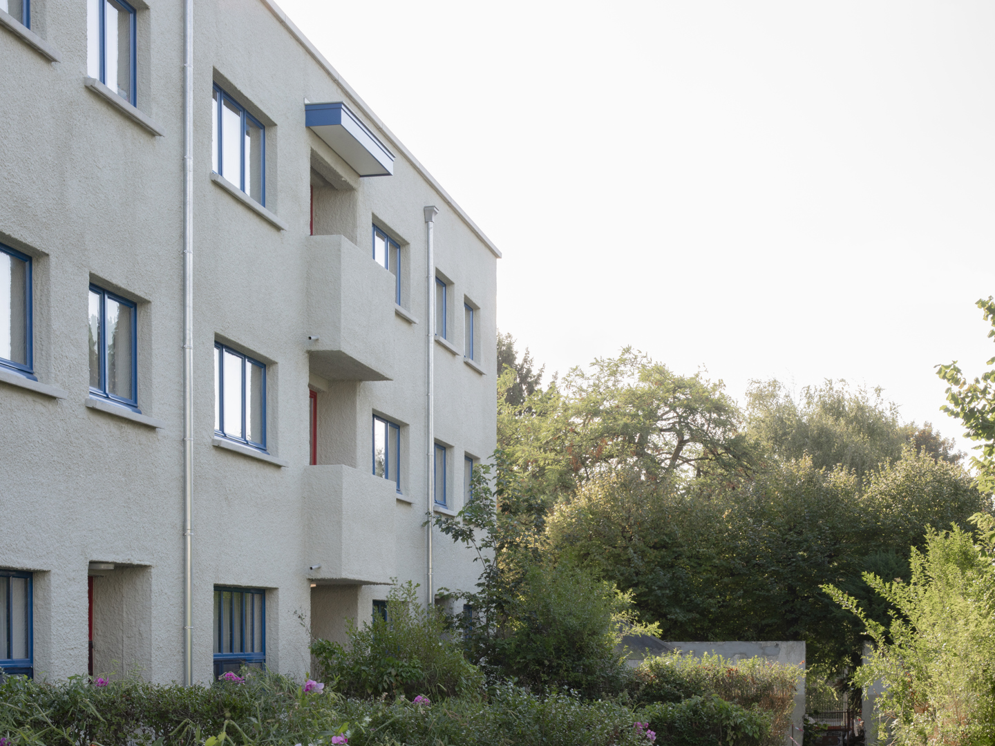 De belangrijkste uitdaging bestond erin te interveniëren op een beschermd modernistisch erfgoed, dat in zeer slechte staat verkeerde, zonder de identiteit ervan aan te tasten. In plaats van een ingrijpende transformatie hanteert het project een 'actieve conservatieve' benadering: behoud van de structuren, restauratie van de gevels (tyrolisch pleisterwerk), en fijne reorganisatie van de typologieën. De technische beperkingen (kleine ruimte, gebrek aan uitrusting, lage energieprestaties) worden opgelost door gerichte ingrepen: doorgaande woonkamers, biobased binnenisolatie, nieuwe PMR-toegangen via geheractiveerde steegjes. Het project balanceert zo erfgoedrespect, gebruikskwaliteit en budgetbeheer.