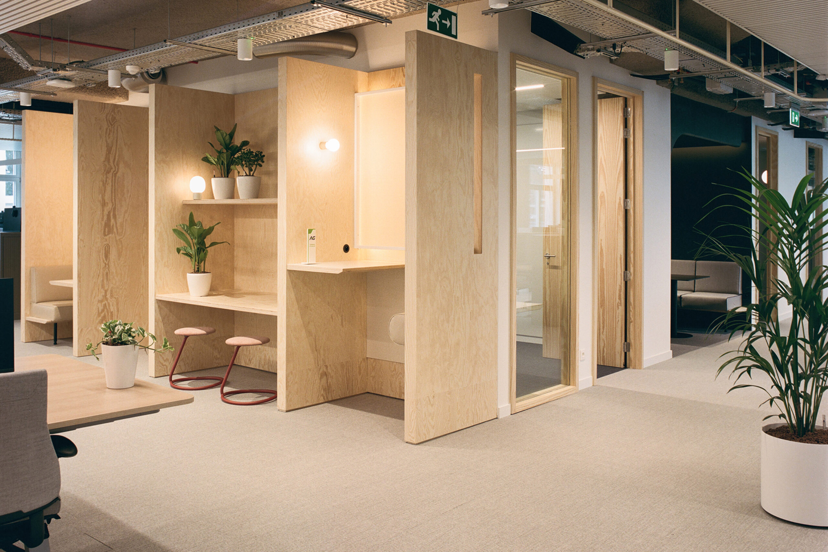 Het AG Workplace Concept werd ontwikkeld als een flexibel ontwerpkader dat toegepast kan worden op meerdere kantoorlocaties. In plaats van één enkel project bestond de opdracht uit het definiëren van een coherent en aanpasbaar ruimtelijk systeem dat kan inspelen op verschillende gebouwen, contexten en gebruikersbehoeften. Het concept ondersteunt nieuwe manieren van werken door inclusiviteit, welzijn en interactie te bevorderen. Het creëert een balans tussen structuur en vrijheid, waardoor werknemers hun werkomgeving kunnen kiezen op basis van activiteit, stemming en samenwerkingsbehoeften.