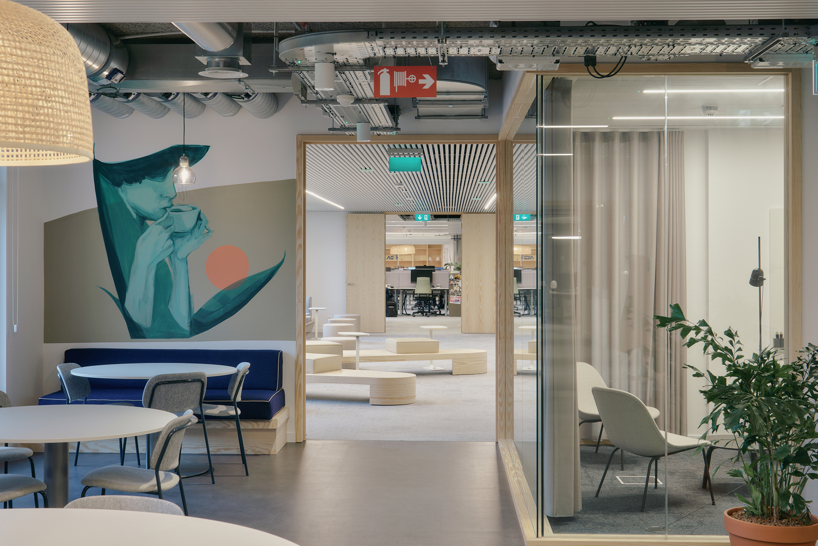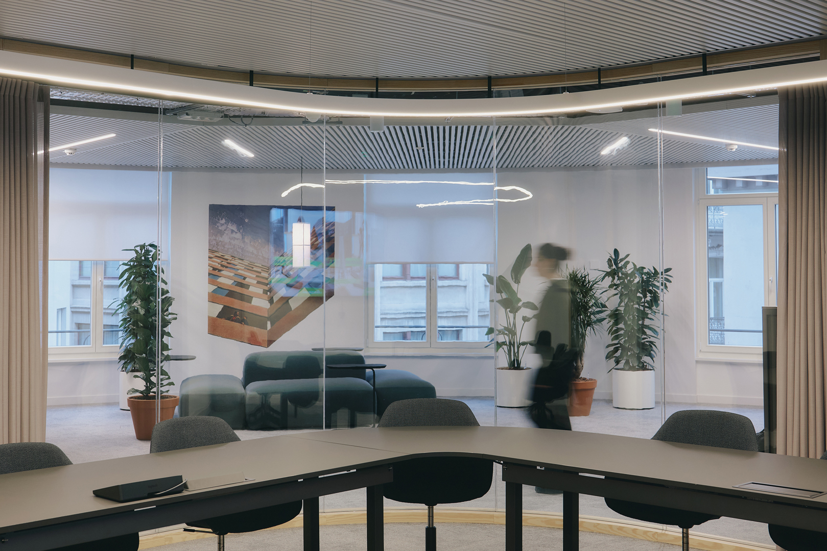 De belangrijkste uitdaging was het creëren van een uniforme werkplekidentiteit die zich kan aanpassen aan diverse architecturale omstandigheden en evoluerende werkpatronen. De oplossing was de ontwikkeling van een generiek maar flexibel ruimtelijk systeem, gebaseerd op drie kern typologieën: Team Spaces, Collective Spaces en informele “Generations”-zones. Deze worden gecombineerd via vloeiende indelingen, visuele verbindingen en subtiele overgangen. Deze aanpak maakt het mogelijk om elke implementatie af te stemmen op de specifieke context, terwijl een consistente gebruikerservaring behouden blijft.