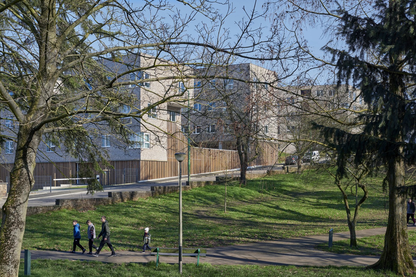 De belangrijkste uitdaging was om een geënclaveerde, weinig leesbare en weinig geëigende site voor de gebruikers te transformeren tot een samenhangende, aantrekkelijke en toegankelijke wijk. De oplossing rust op een organisatie in vijf menselijke schaal-eilanden, die het mogelijk maakt om voetgangers- en fietspaden over de hele site te vermenigvuldigen. De verbinding tussen verschillende gebouwenschalen, tussen torens en arbeidershuizen, is gegarandeerd door tussenvormen. De duidelijke hiërarchie tussen openbare, collectieve en privéruimtes versterkt de leesbaarheid en de toe-eigening. Tot slot, de integratie van een continu park en de ontwikkeling van een netwerk van zachte mobiliteit maken het mogelijk om de site met zijn omgeving te verbinden en ervan een gedeelde en toegankelijke leefruimte te maken.