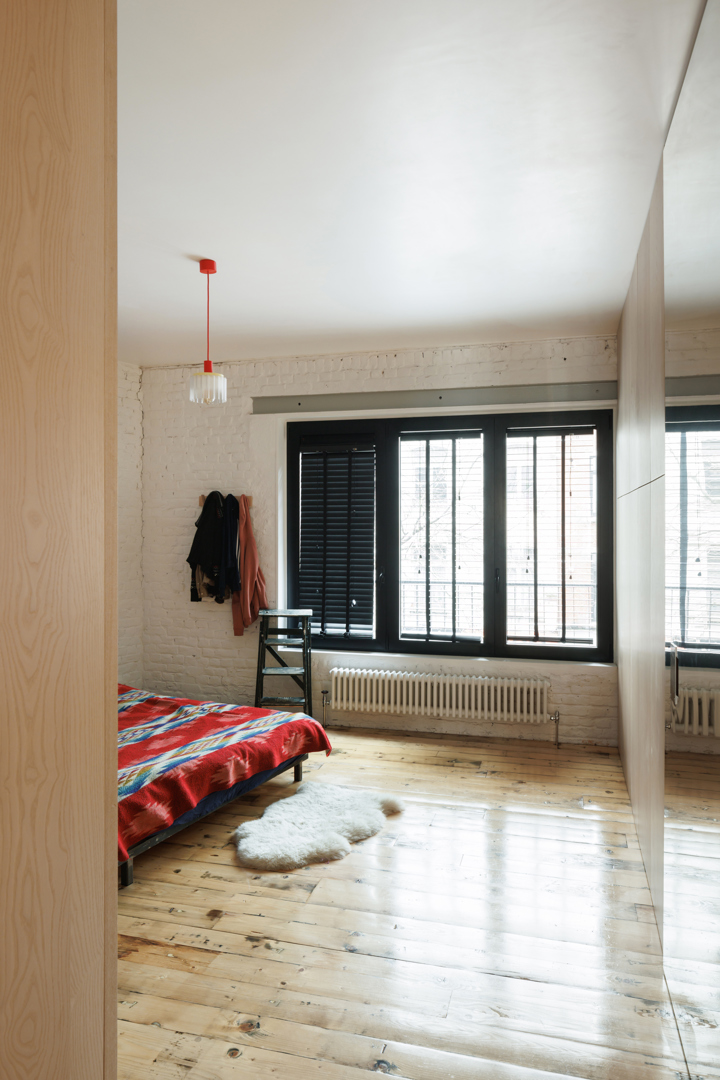 De combinatie van historische, recuperatie en nieuwe materialen creëert een unieke omgeving waarmee de bewoners zich kunnen gaan identificeren en thuis voelen. Veel natuurlijk licht, zelfs in de bergingen en de badkamer – dat terwijl het casco maar vier ramen had - is een meerwaarde om dagdagelijks in te wonen. De spiegelende deurgehelen bieden ruimte doorzichten – tweegevel wonen – wanneer gewenst en akoestische privacy wanneer nodig. De spiegels verruimen de woning en vergroten het imaginaire zicht op een gevel. Zelfs als ze gesloten zijn voelt het appartement nog aan als een tweegevel woning. Het openen en sluiten van deuren van 1,75m breedte vormt een bewuste handeling, als een uniek ritueel voor de bewoners van deze ruimte.