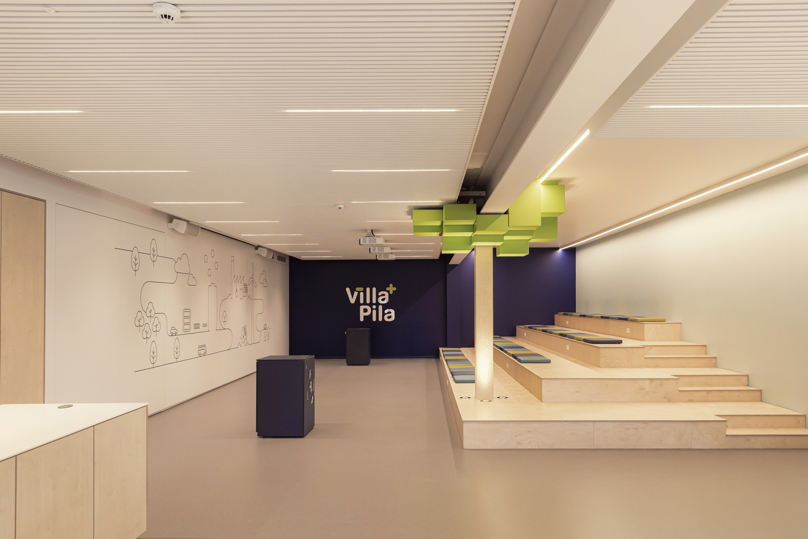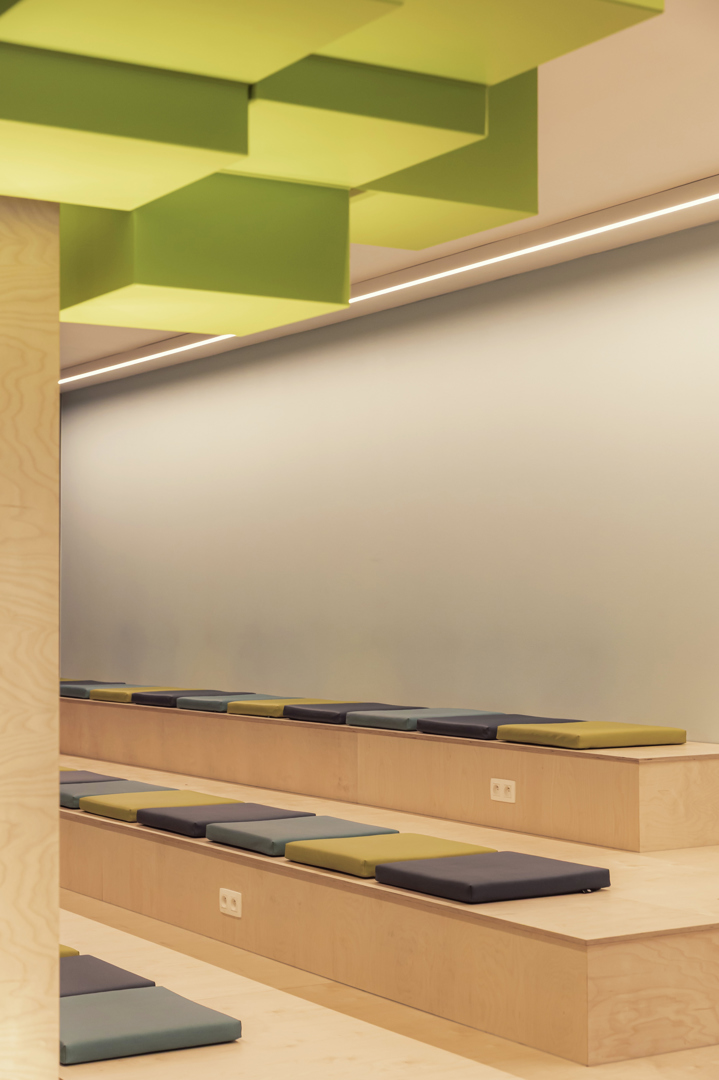 Het project werd duurzaam opgevat door maximaal in te zetten op hergebruik en behoud van bestaande structuren, waardoor ingrijpende bouwkundige ingrepen werden beperkt. Er werd gekozen voor duurzame, onderhoudsvriendelijke materialen met een lange levensduur, zoals HPL, laminaat en akoestische viltmaterialen. Maatmeubilair werd ontworpen op functionaliteit en flexibiliteit, zodat ruimtes in de toekomst eenvoudig kunnen worden aangepast. Groene elementen zoals mos- en plantenwanden dragen bij aan het binnenklimaat en welzijn. Daarnaast versterkt de educatieve invulling rond inzameling en recyclage de bewustwording rond circulariteit, waardoor duurzaamheid niet alleen fysiek, maar ook inhoudelijk een kernonderdeel van het project vormt.