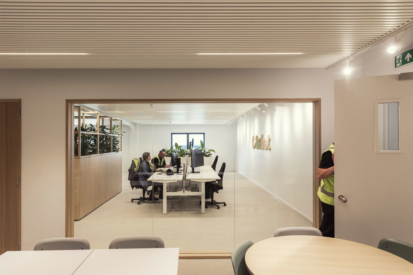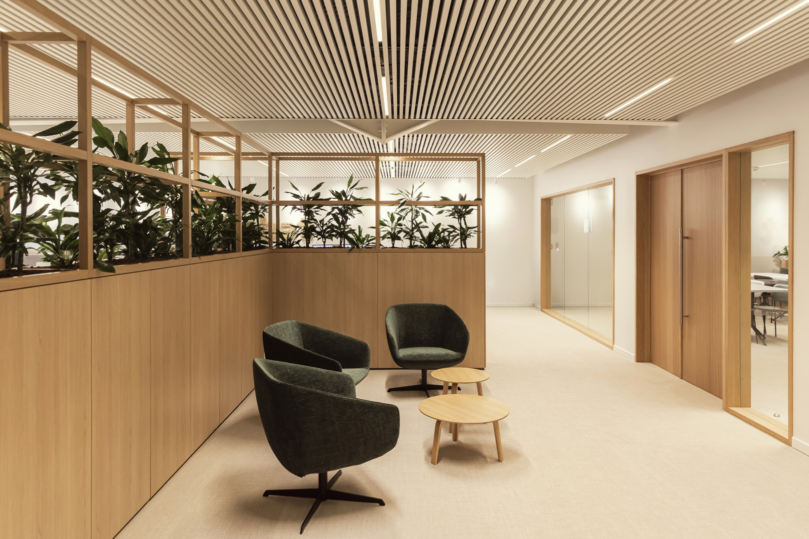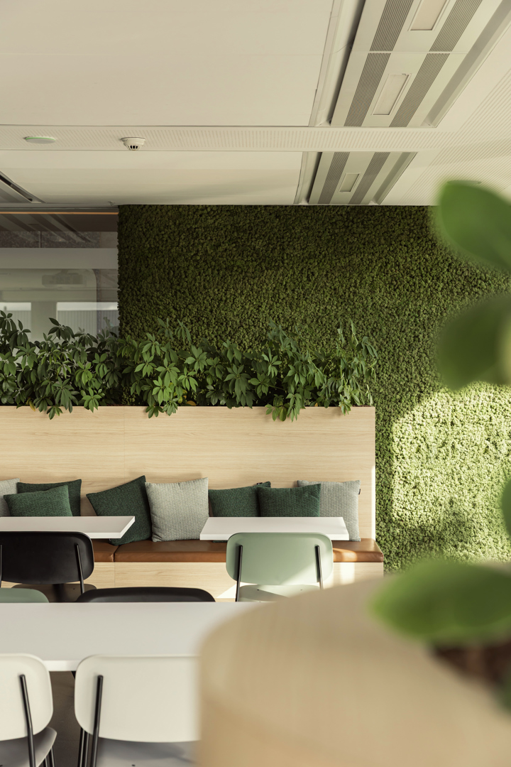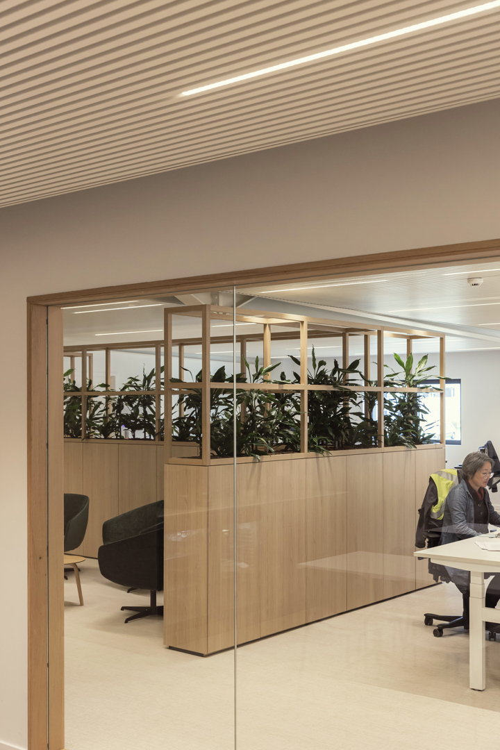 Dit project draagt bij aan het welbevinden van gebruikers door een warme, overzichtelijke en aangename werkomgeving te creëren waarin comfort en beleving centraal staan. Heldere circulatie, een uitnodigend onthaal en duidelijke signalisatie zorgen voor rust en oriëntatie. Akoestische ingrepen, zachte materialen en groen (mos- en plantenwanden) verbeteren het akoestisch en visueel comfort en ondersteunen het mentaal welzijn. Ontmoetingsplekken zoals de bistro stimuleren informele interactie en ontspanning, terwijl functionele werk- en vergaderruimtes focus en efficiëntie bevorderen. Door de educatieve elementen voelen bezoekers zich betrokken en geïnformeerd, wat bijdraagt aan een positieve en betekenisvolle gebruikerservaring.
