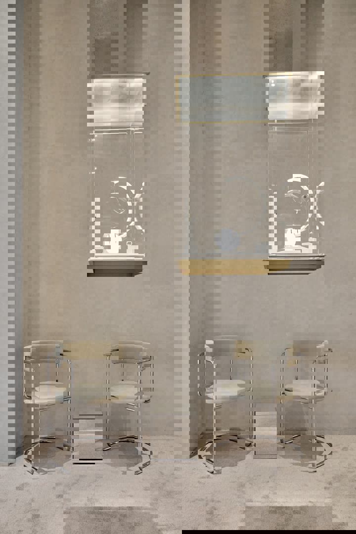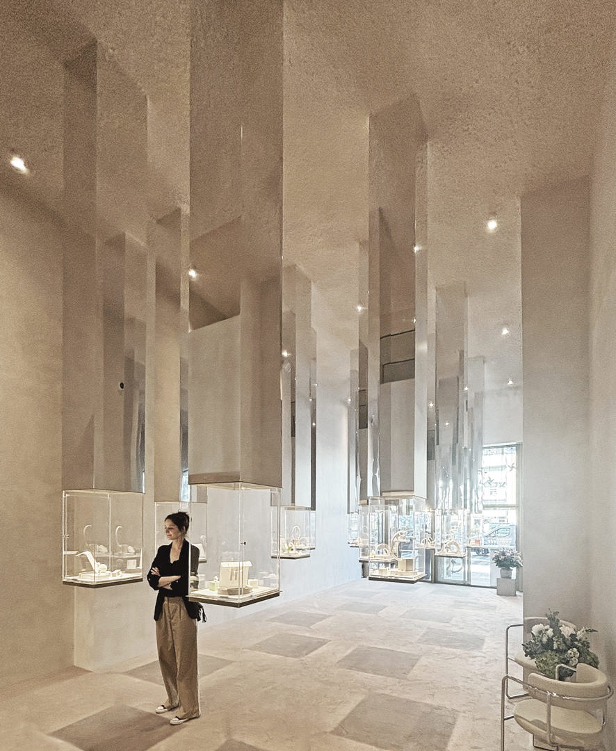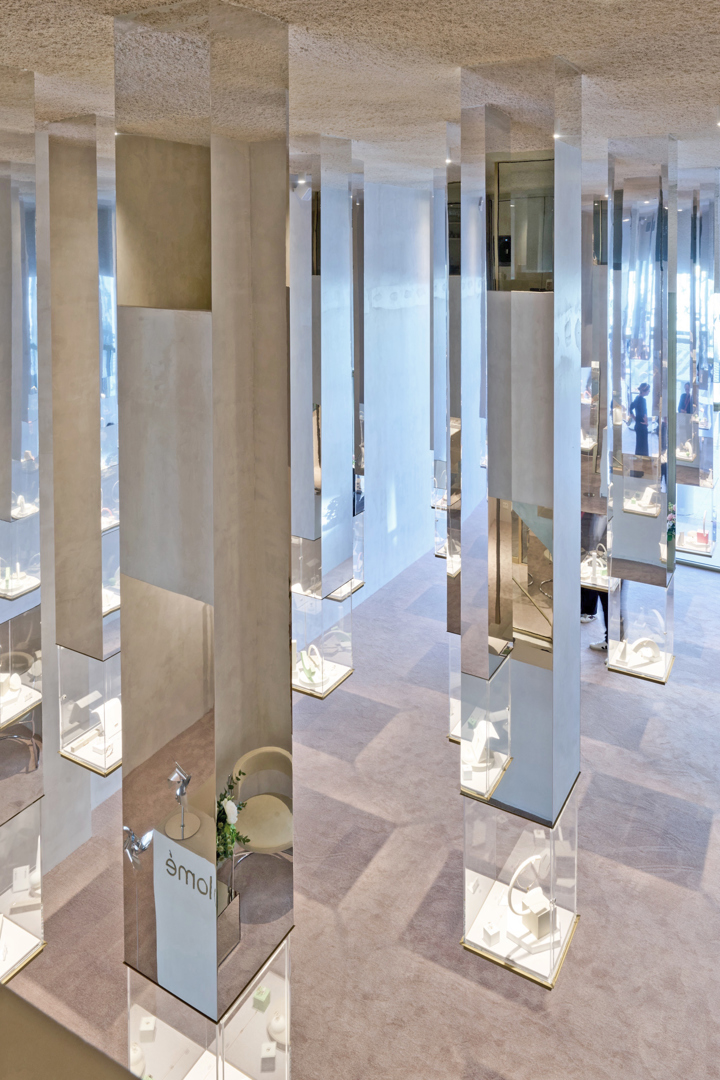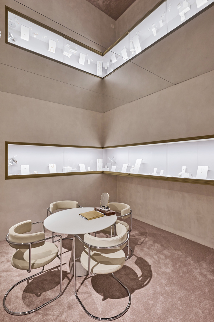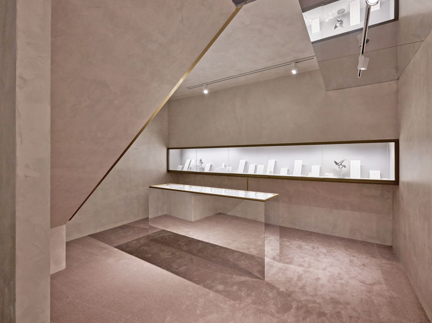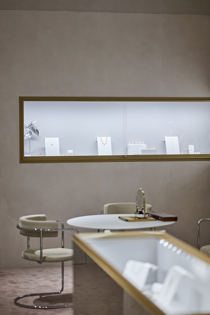 De aanpak van het project is omkeerbaar om het gebouw terug te kunnen geven zodra de huur afloopt. In dit kader behandelt het project de inrichting van een commerciële ruimte door gebruik te maken van de reeds aanwezige muurbekledingen. De omkeerbaarheid wordt versterkt door de creatie van volledig demonteerbare structuren, zoals de aan het plafond hangende vitrines. Een andere uitdaging was om het licht naar het hart van het gebouw terug te brengen. Hiervoor is de scenografie geïnspireerd door een spiegelzaal, met hangende kolommen bedekt met spiegels die spelen met de lichtreflecties in het hart van de juwelierszaak. In de kelder was de uitdaging om een oude kluis uitnodigend te maken door gebruik te maken van een plafond bedekt met spiegels om de ruimte te vergroten.