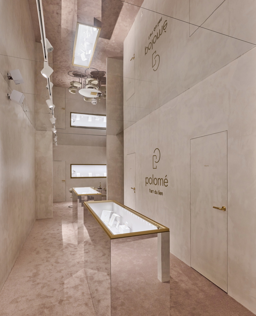 Dit project is voorbeeldig omdat het een gevoelig ontvangstruimte vertegenwoordigt die de nadruk legt op de sensorische ontdekking van de creaties van Polomé. Bovendien stelt dit project de vergankelijkheid binnen de commerciële ruimteontwerpen en hun omkeerbaarheid in de tijd in vraag. In die zin wordt de bestaande situatie als inspiratiebron beschouwd. De toegevoegde elementen zijn zo ontworpen dat ze demonteerbaar zijn.