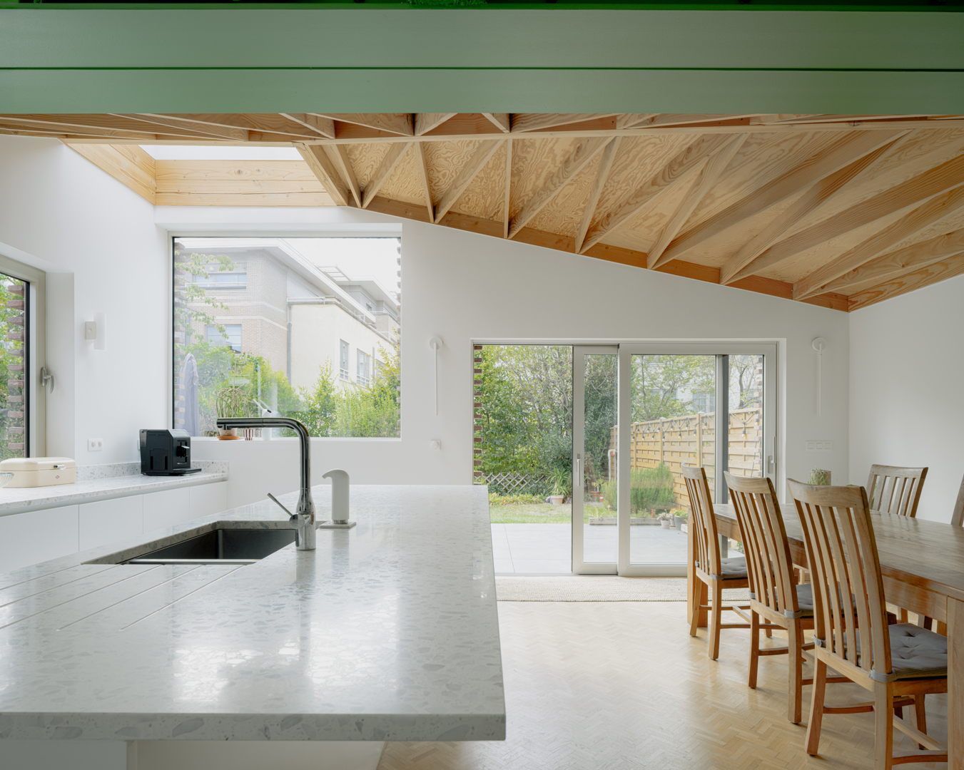 Het project richt zich op de transformatie en uitbreiding van een eengezinswoning om de leefruimtes te herwaarderen. Het belangrijkste doel is om de natuurlijke lichtinval, de vloeiende circulatie en de verbinding met buiten te verbeteren. De uitbreiding wordt gerealiseerd met inachtneming van de stedenbouwkundige beperkingen (maten, uitzichten) terwijl een unieke architecturale aanpak wordt geboden. Het ontwerp omvat ook principes van omkeerbaarheid en circulariteit, met bijzondere aandacht voor de keuze van materialen en hun toepassing.
