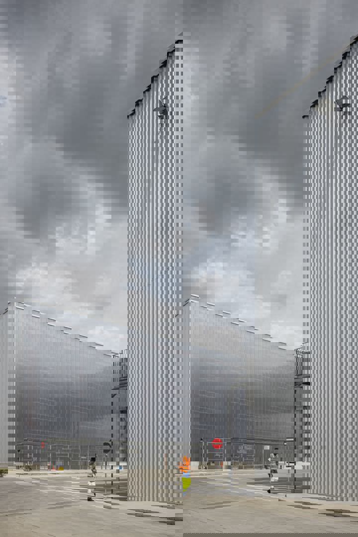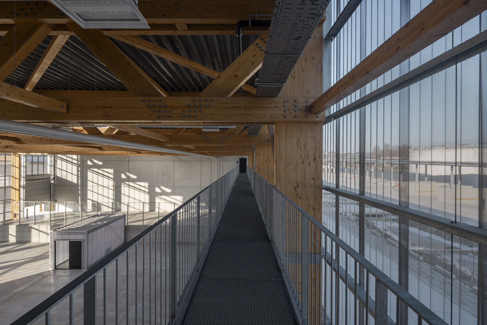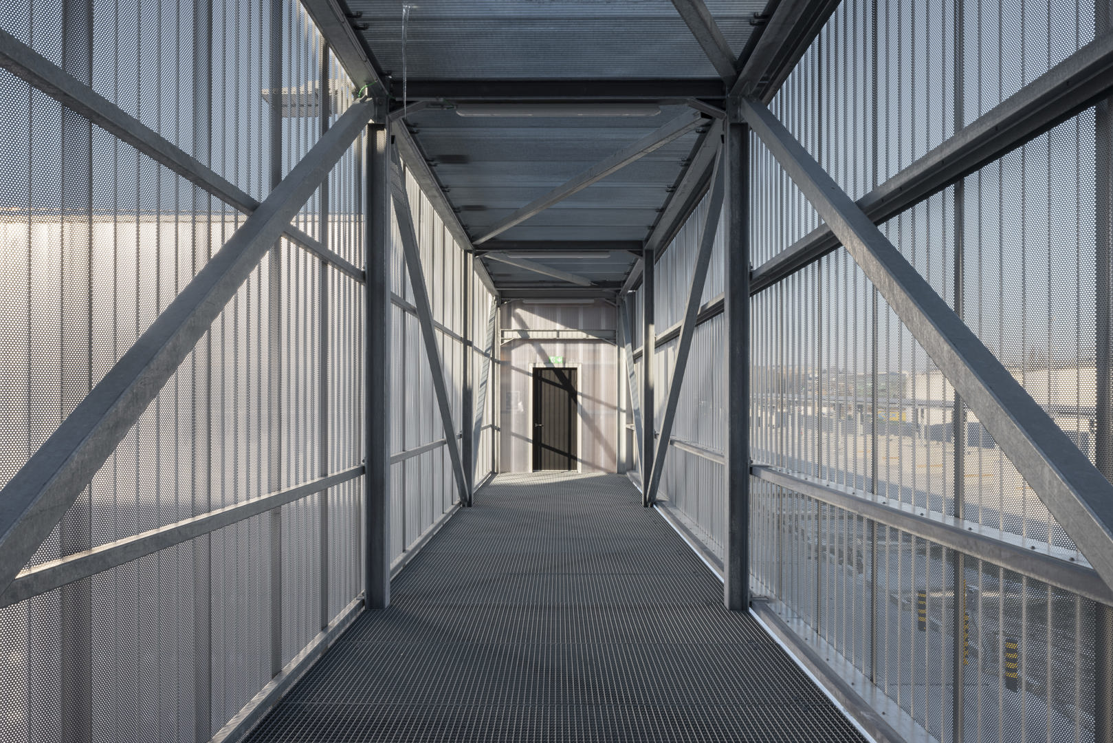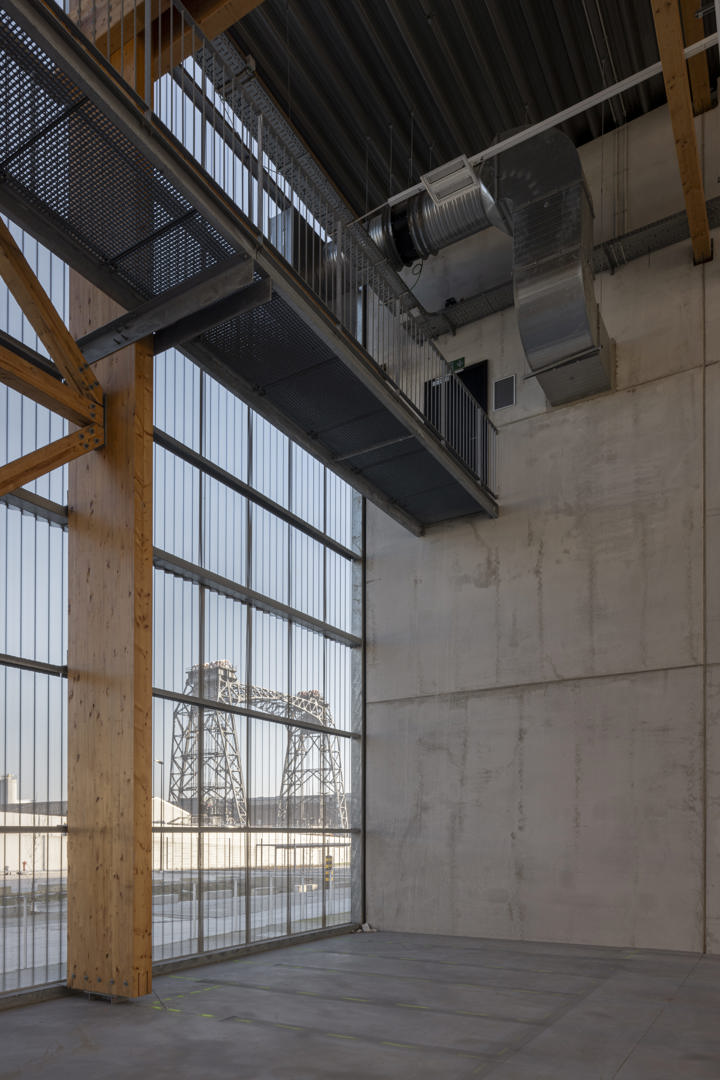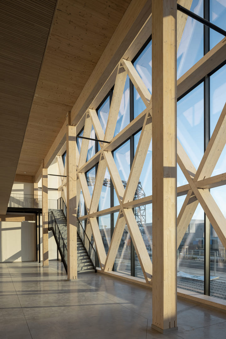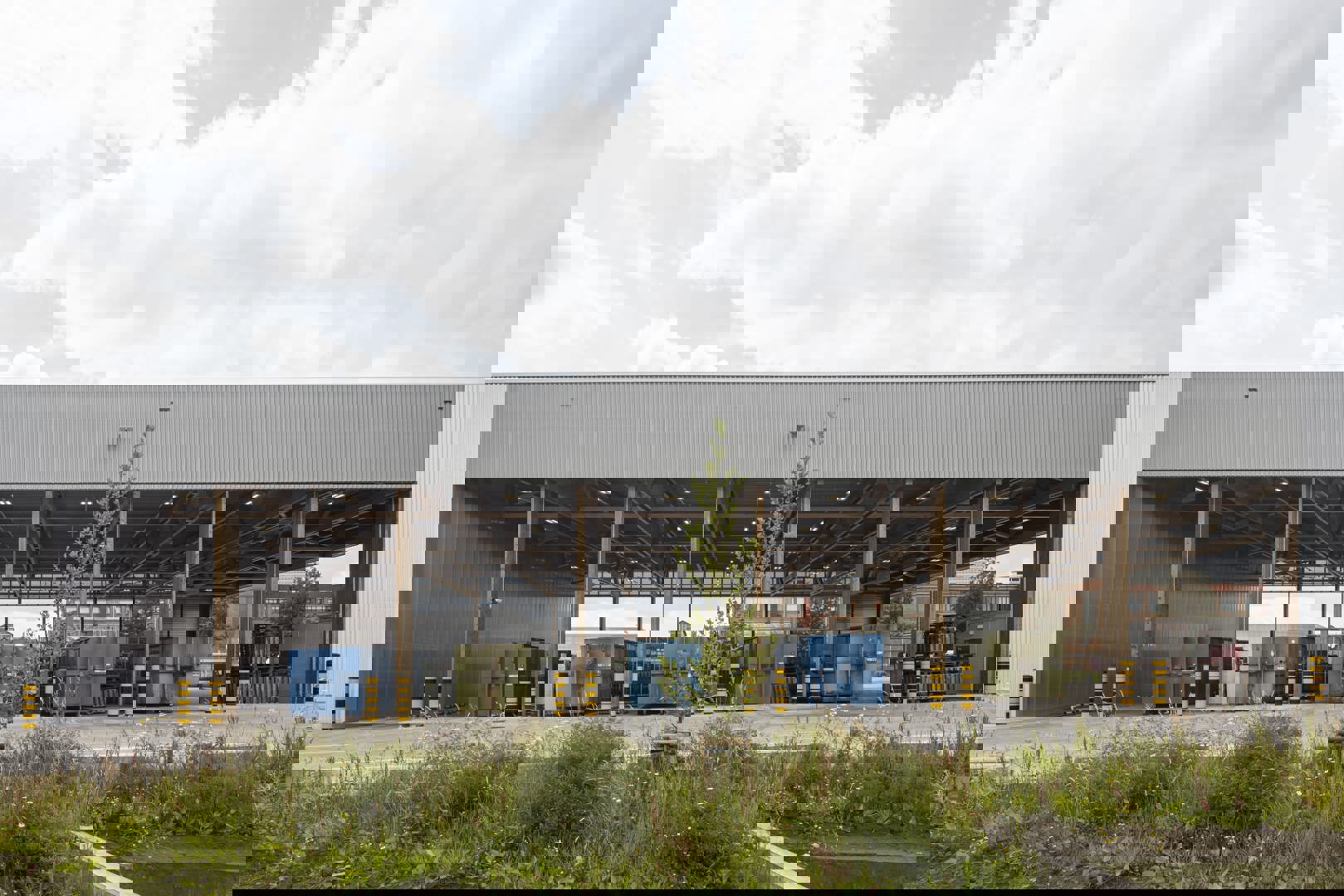 De belangrijkste uitdaging lag in de co-existentie van intensieve logistieke stromen met een kwalitatieve stedelijke inpassing. Het project organiseert het terrein in vier parallelle stroken, die de circulaties helder structureren en conflicten vermijden. Aan de kanaalzijde krijgt het project een uitgesproken stedelijke gevel, aangevuld met een landschappelijke zone en een publieke esplanade. De keuze voor een houten draagstructuur en een open architecturale taal transformeert het beeld van een traditioneel gesloten infrastructuur naar een actieve interface tussen stad en productie.