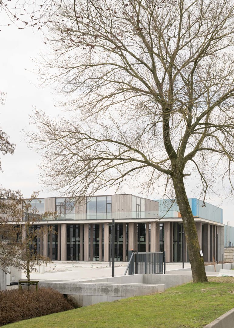 Duurzaamheid is integraal benaderd, zowel op ecologisch, functioneel als menselijk vlak. Betonkernactivering en zonnepanelen zorgen voor een energie-efficiënte werking, terwijl de zichtbare betonstructuur het materiaalgebruik beperkt. De flexibele indeling verlengt de levensduur van het gebouw. Gevels dragen bij aan thermisch en akoestisch comfort, en de doordachte integratie van daglicht en zonwering ondersteunt een gezonde werkomgeving. Daarnaast werd gekozen voor verantwoorde materialen, zoals PEFC- en FSC-gecertificeerd hout, Cradle to Cradle-gecertificeerd plaatmateriaal en akoestische panelen met meer dan 50% gerecycleerde PET-vezels.