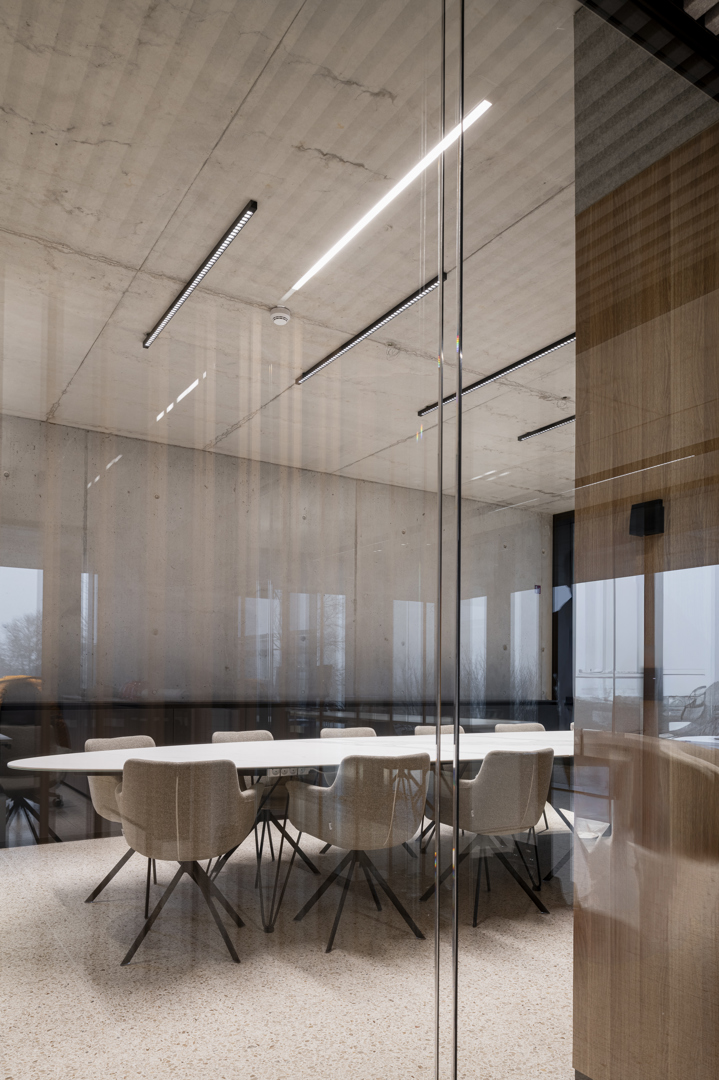 De ontwerpopdracht bestond uit het realiseren van nieuwe kantoren voor CBS Beton, pionier in milieuvriendelijke prefab betonsystemen. Het was dan ook vanzelfsprekend om beton centraal te stellen, zowel als structureel als duurzaam element. Het gebouw werd opgevat als een flexibel indeelbare werkomgeving met een hoog comfortniveau, waarbij beton niet alleen de volledige draagstructuur vormt, maar via betonkernactivering ook actief bijdraagt aan het binnenklimaat - een techniek die Goedefroo Architecten al sinds 2008 toepast.
