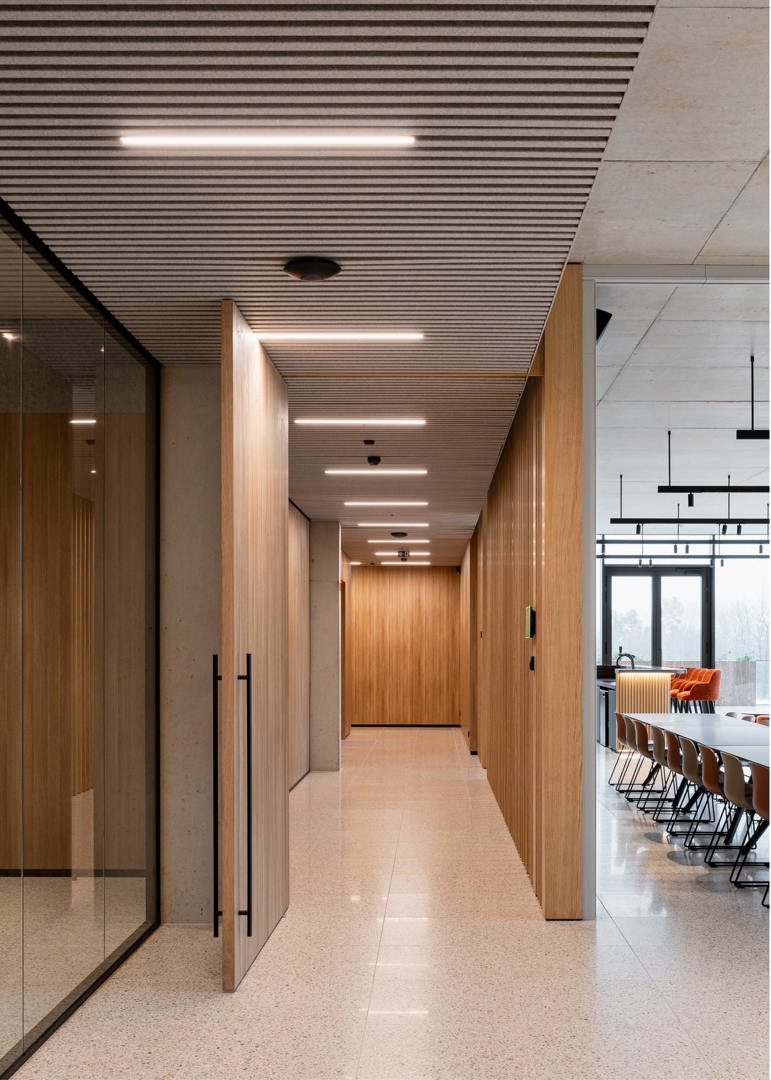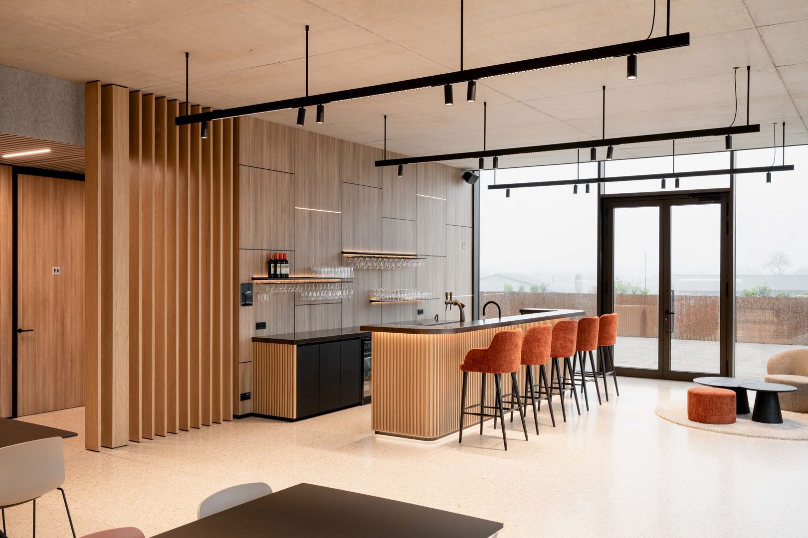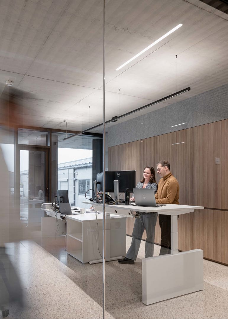 Het project draagt bij aan het welbevinden voor werknemers en klanten, door een comfortabele en gezonde (werk)omgeving te creëren. De ruime toetreding van daglicht, gecombineerd met doordachte zonwering en transparante gevels, versterkt het contact met de buitenomgeving en verhoogt het werkcomfort. Tegelijk werd veel aandacht besteed aan akoestiek, met geïntegreerde oplossingen die rust brengen voor de mensen in een open kantoorstructuur. Warme materialen en een zachte overgang naar de industriële context zorgen voor een aangename en evenwichtige werkbeleving.