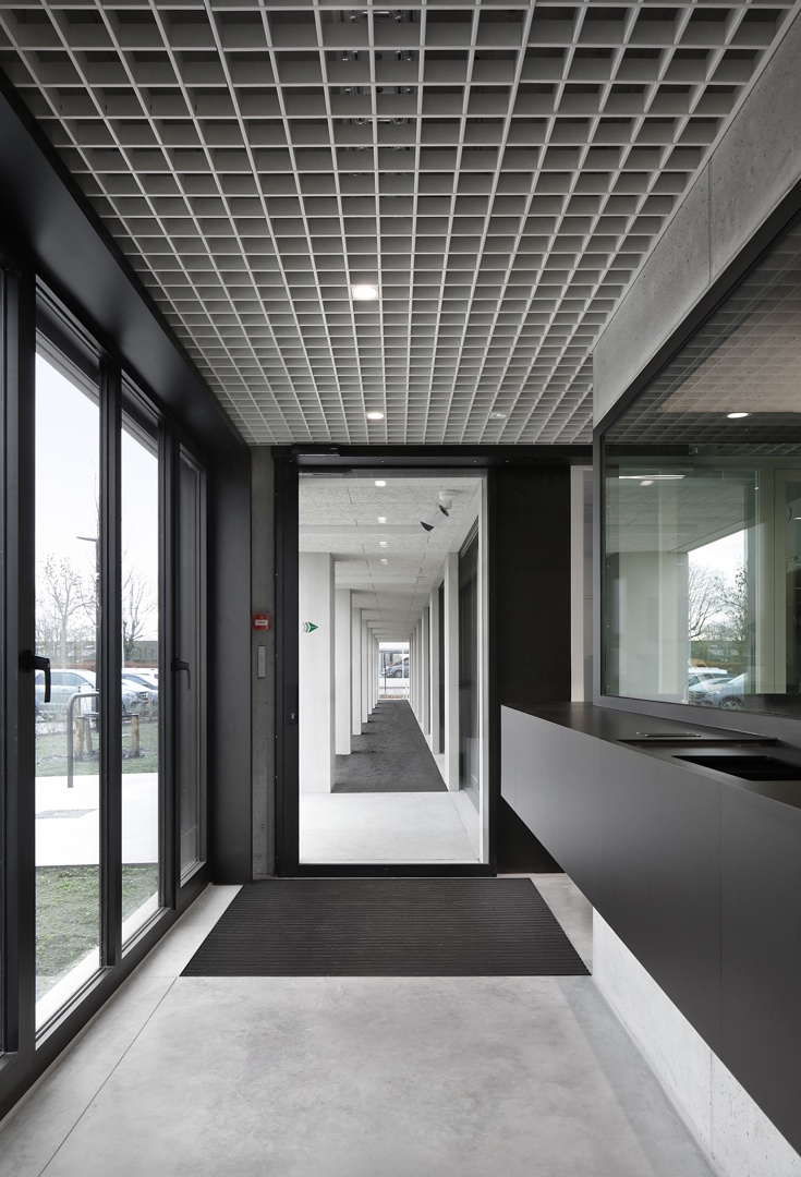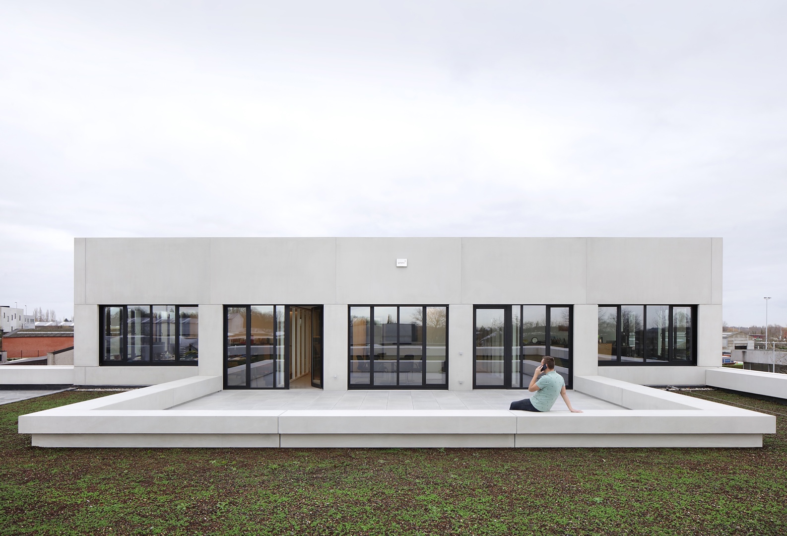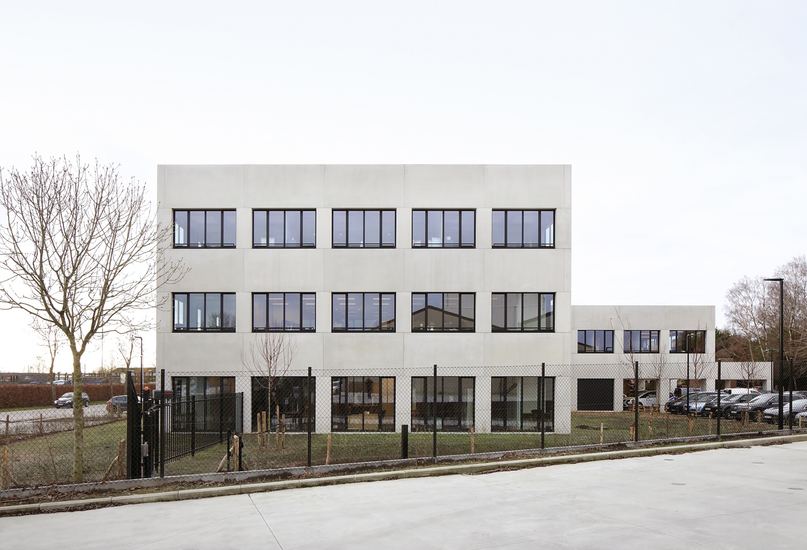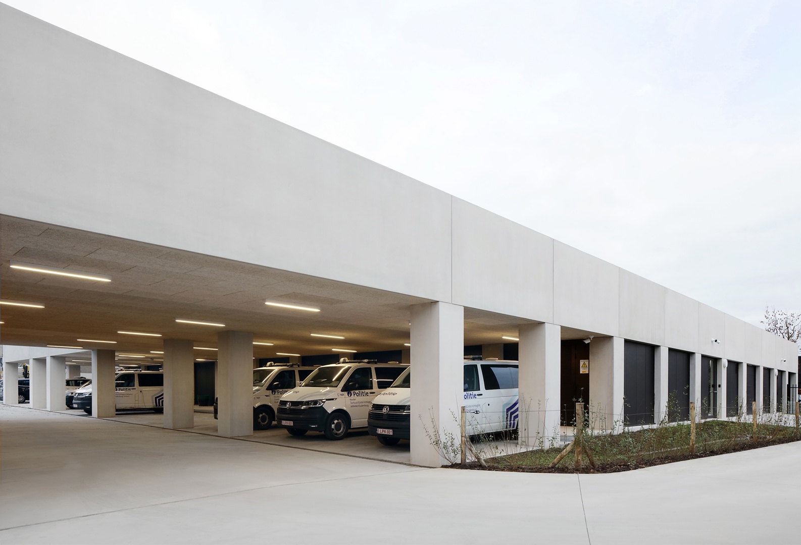 Architectuur begint bij luisteren. In dit project stond het participatietraject centraal, waarbij de noden van de opdrachtgever – een 100% functioneel politiegebouw – de basis vormden. Dit vertaalde zich in een helder grondplan met logische relaties, korte loopafstanden, duidelijke circulatie en robuuste, duurzame materialen. Tegelijk reikt het ontwerp verder dan de louter functionele vraag van de opdrachtgever. Als architect voeg je bijkomende lagen toe die noodzakelijk zijn voor het welslagen van het project. Door ingrepen zoals de trapvorm in grondplan en doorsnede, de zorgvuldige inpassing in de KMO-zone en een uitgesproken publieke verschijningsvorm, krijgt het gebouw een sterke architecturale identiteit. Het verenigt efficiëntie met betekenis en toont de meerwaarde van architectuur.