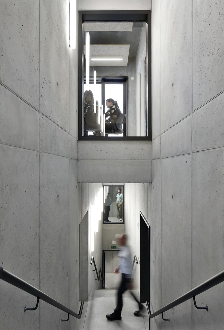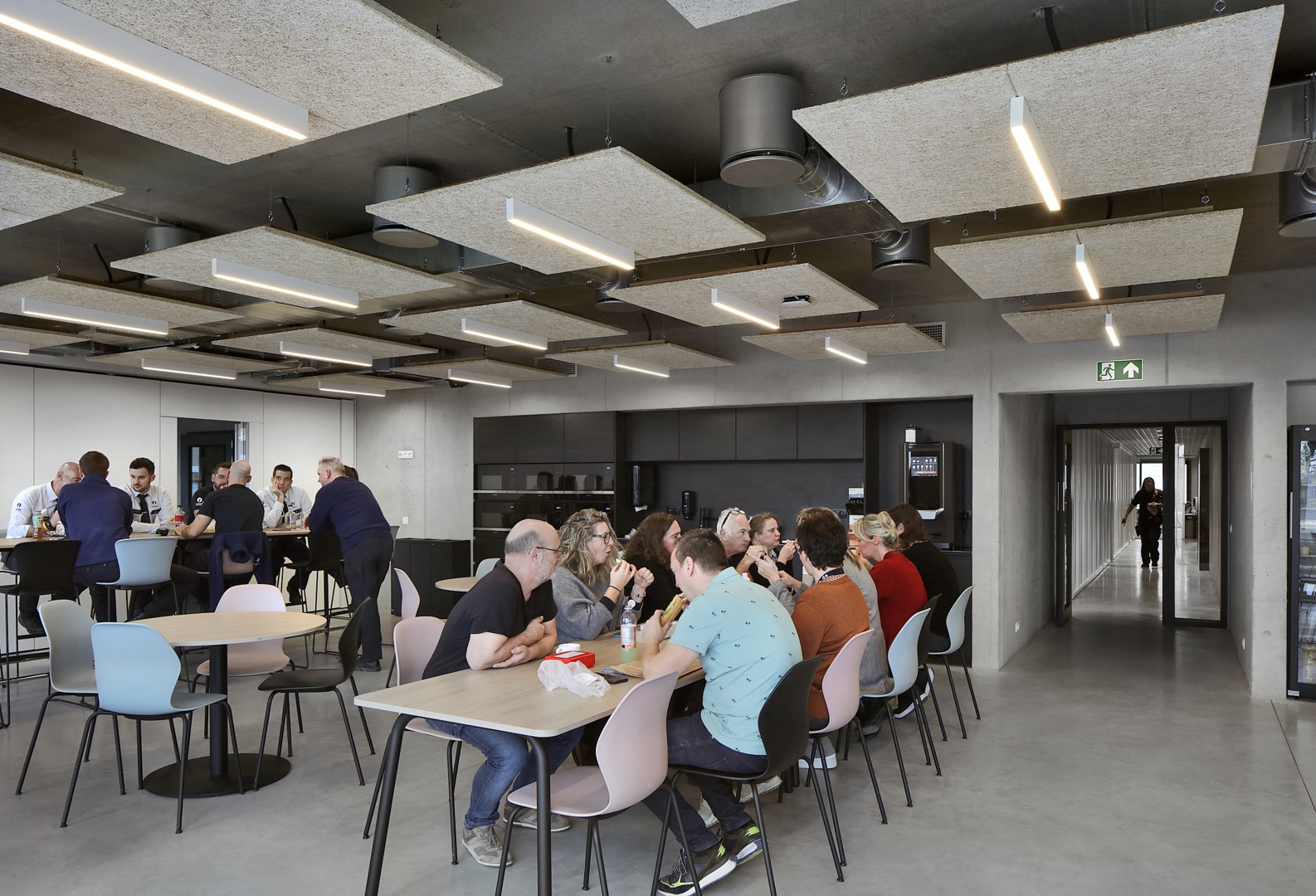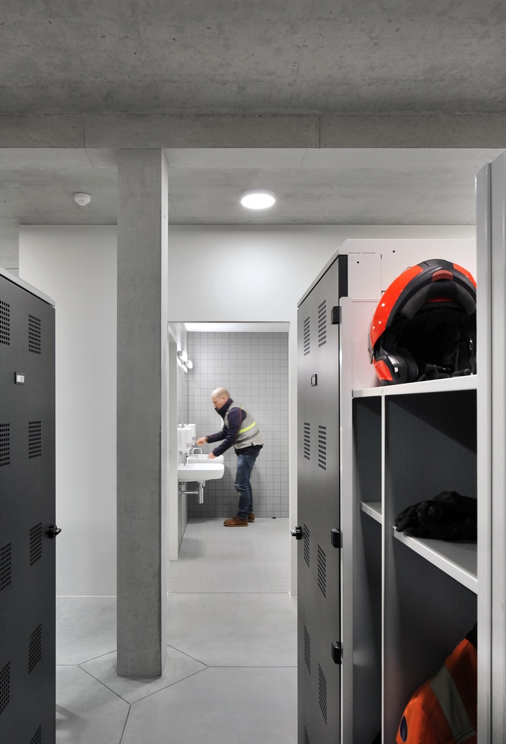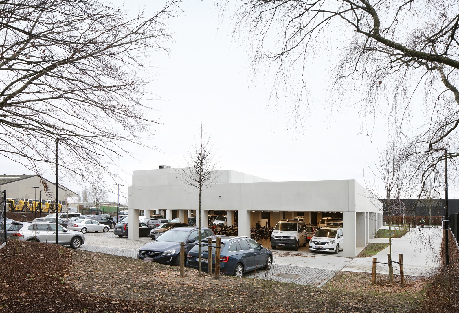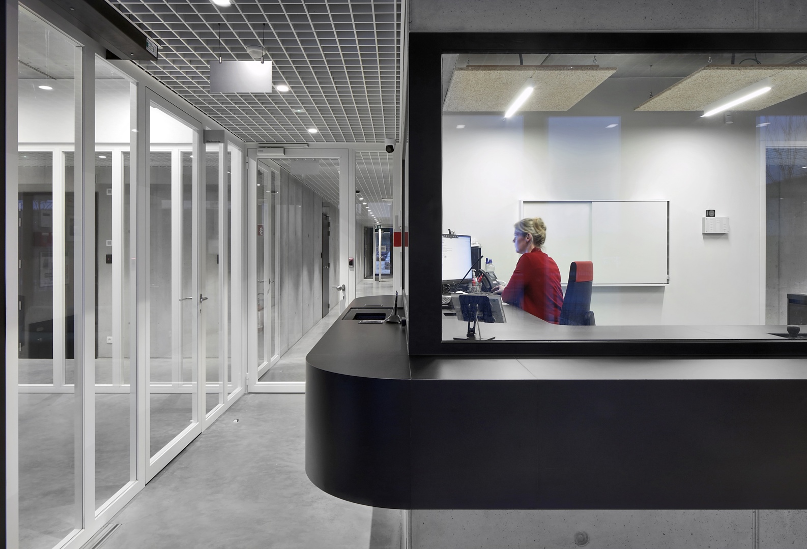 Architectuur begint bij luisteren. In dit project stond het participatietraject centraal, waarbij de noden van de opdrachtgever – een 100% functioneel politiegebouw – de basis vormden. Dit vertaalde zich in een helder grondplan met logische relaties, korte loopafstanden, duidelijke circulatie en robuuste, duurzame materialen. Tegelijk reikt het ontwerp verder dan de louter functionele vraag van de opdrachtgever. Als architect voeg je bijkomende lagen toe die noodzakelijk zijn voor het welslagen van het project. Door ingrepen zoals de trapvorm in grondplan en doorsnede, de zorgvuldige inpassing in de KMO-zone en een uitgesproken publieke verschijningsvorm, krijgt het gebouw een sterke architecturale identiteit. Het verenigt efficiëntie met betekenis en toont de meerwaarde van architectuur.