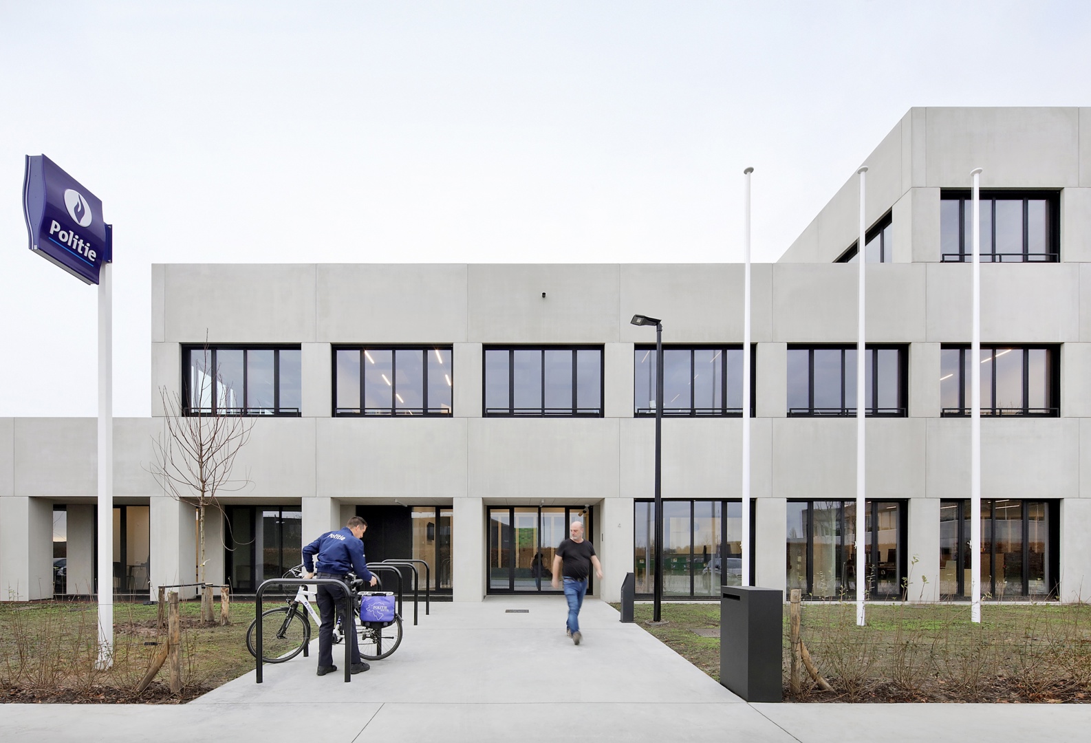 Het programma omvat specifieke en generieke functies, die onzichtbaar in één geheel worden geïntegreerd. Daarbij behoort elke ruimte tot een welbepaalde beveiligingszone. Specifieke functies zijn onder meer een vandaal- en suïcidebestendig cellencomplex, verhoorruimtes, wapen- en munitieruimtes, dispatchingruimte en autowasplaats. Deze functies zijn 100% functioneel, wat zich vertaalt in korte loopafstanden, robuuste materialen en een logische circulatie. Uit het ontwerp is bovendien het organogram van het politiekorps afleesbaar: op niveau +2 de korpsleiding en ondersteunende diensten, op niveau +1 de kantoren van de verschillende diensten, de refter en de crisisroom en op het gelijkvloers alle grondgebonden en publieke functies, samen met kantoren van interventie en wijkdienst.