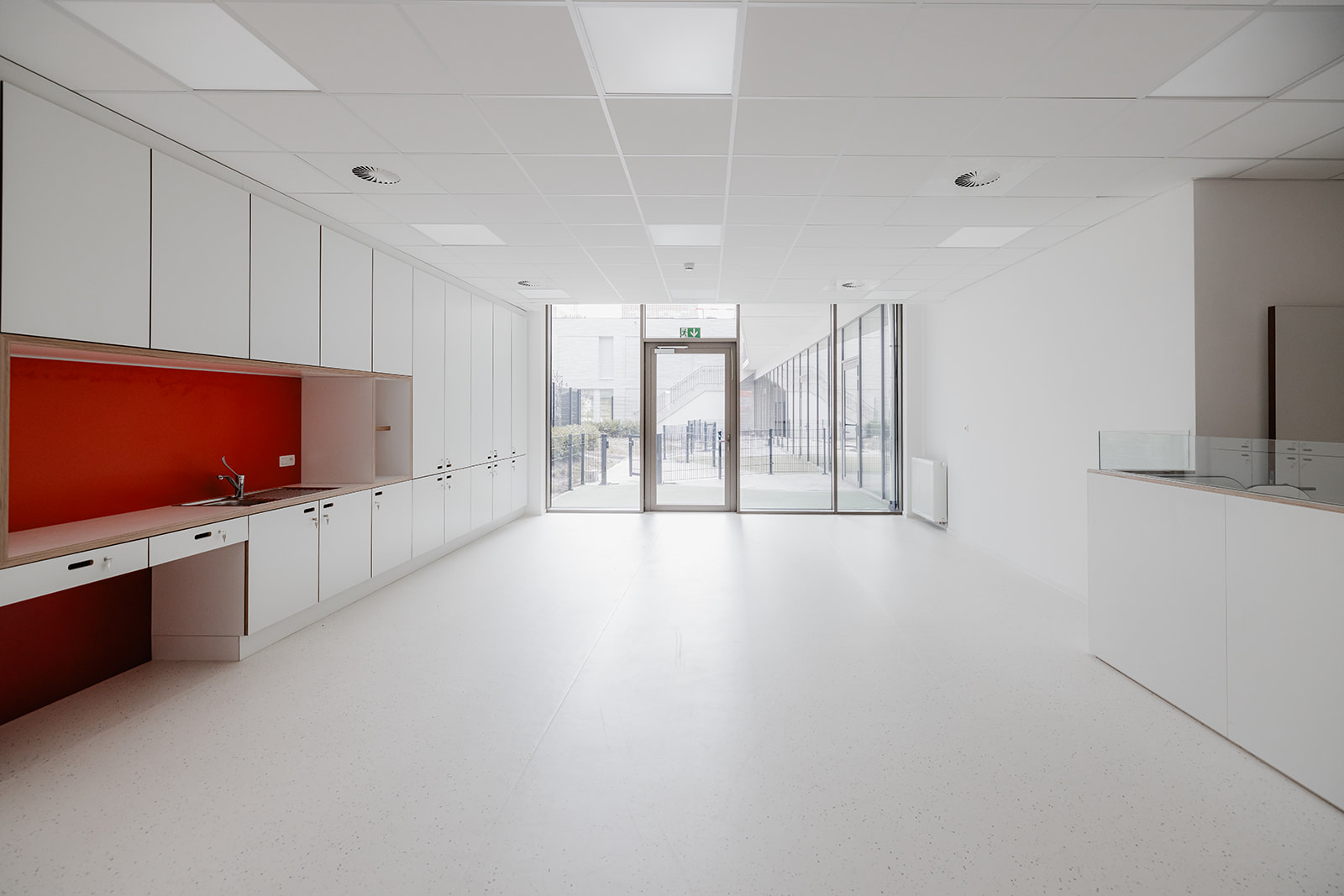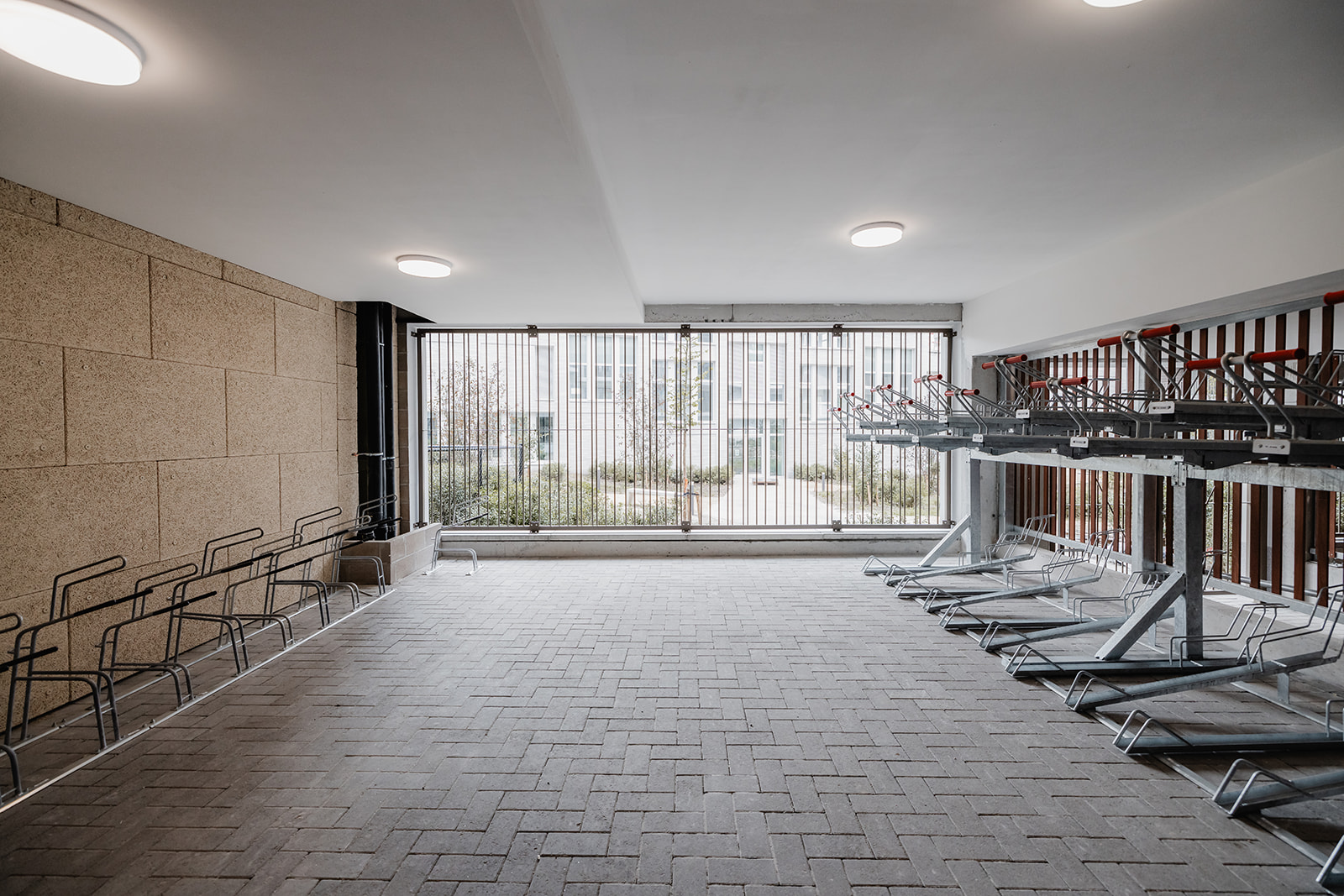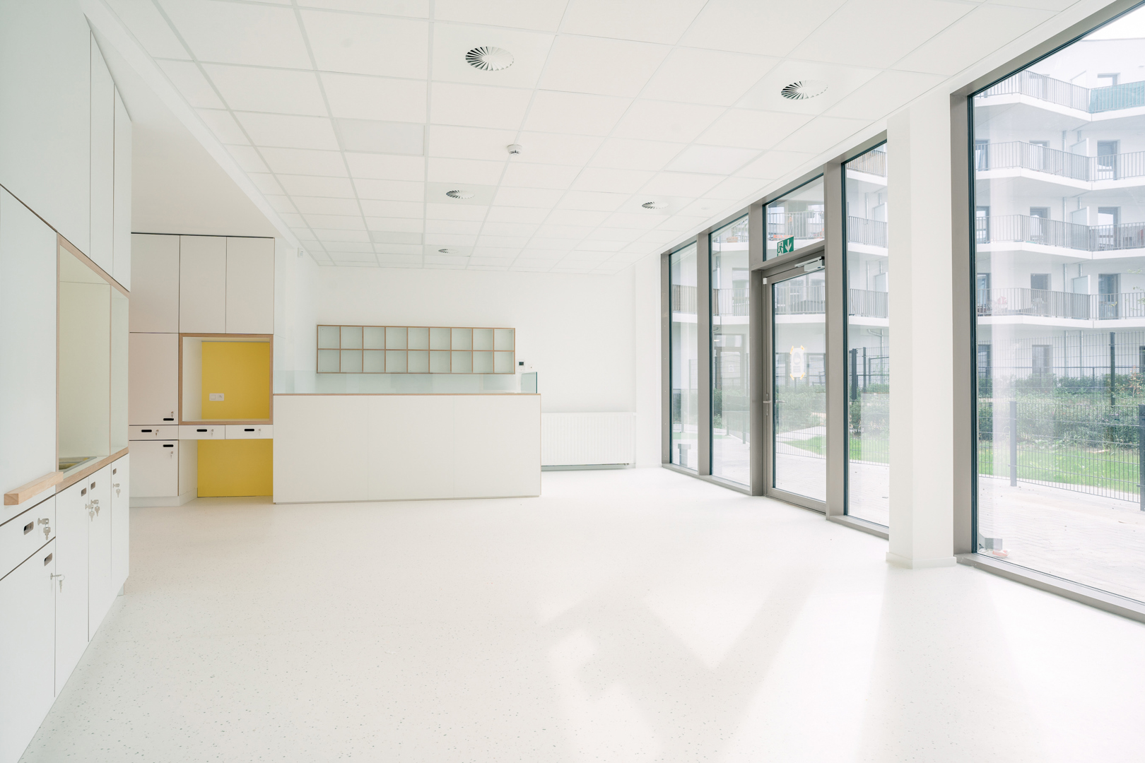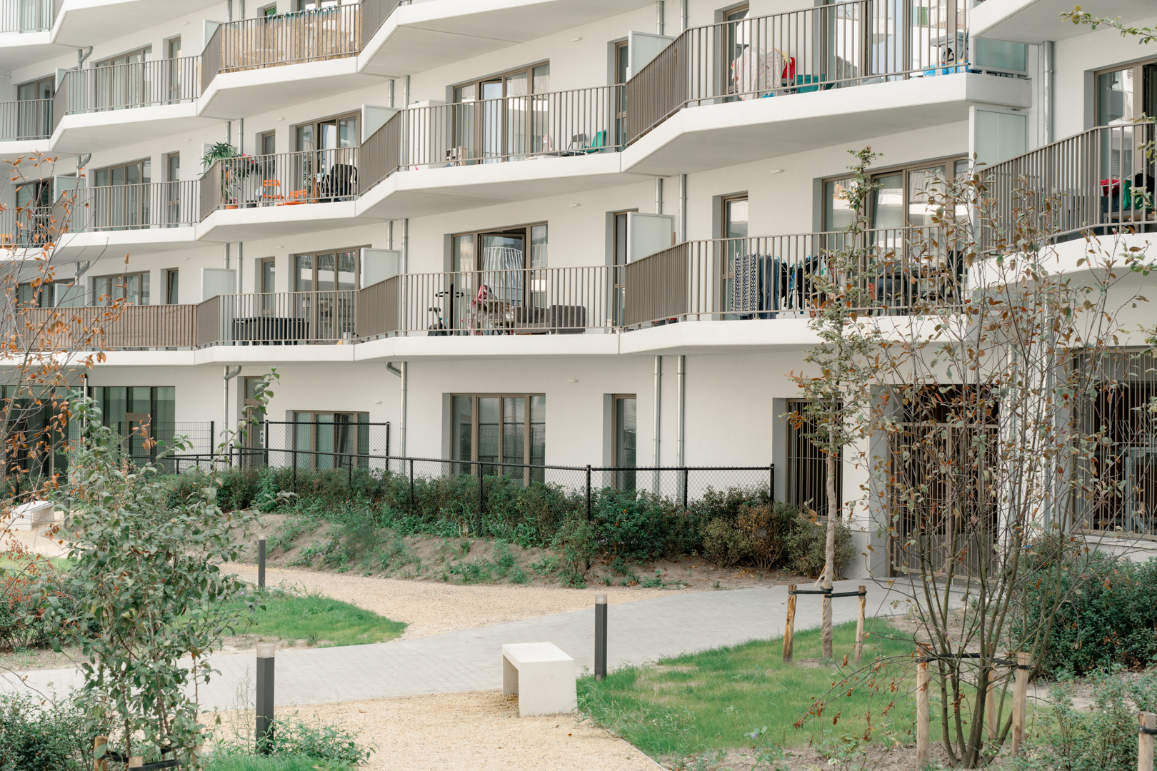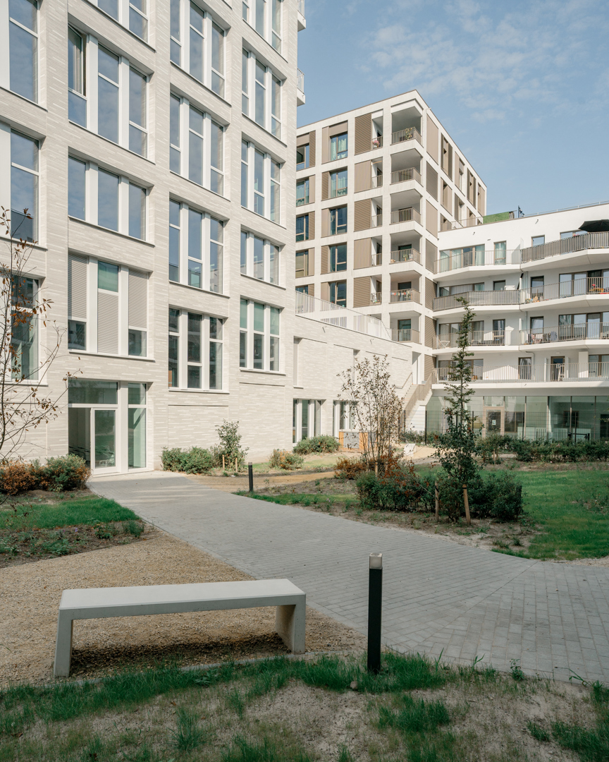 De grootste uitdaging was het verzoenen van diverse, potentieel conflicterende functies: wonen, kinderopvang, productie en publieke ruimte binnen een dicht stedelijk blok met behoud van de levenskwaliteit. In plaats van functies geïsoleerd te stapelen, introduceert het project een helder ruimtelijk systeem gebaseerd op een horizontaal grid en verticale stratificatie. Een productieve plint verankert de actieve functies, terwijl de woonvolumes zorgvuldig zijn geplaatst voor optimaal licht, uitzicht en akoestisch comfort. Directe verbindingen tussen straat en tuin bevorderen de toegankelijkheid en sociale interactie. Het resultaat is een evenwichtig kader waarin co-existentie, helderheid en aanpasbaarheid zowel het dagelijks gebruik als de evolutie op lange termijn ondersteunen.