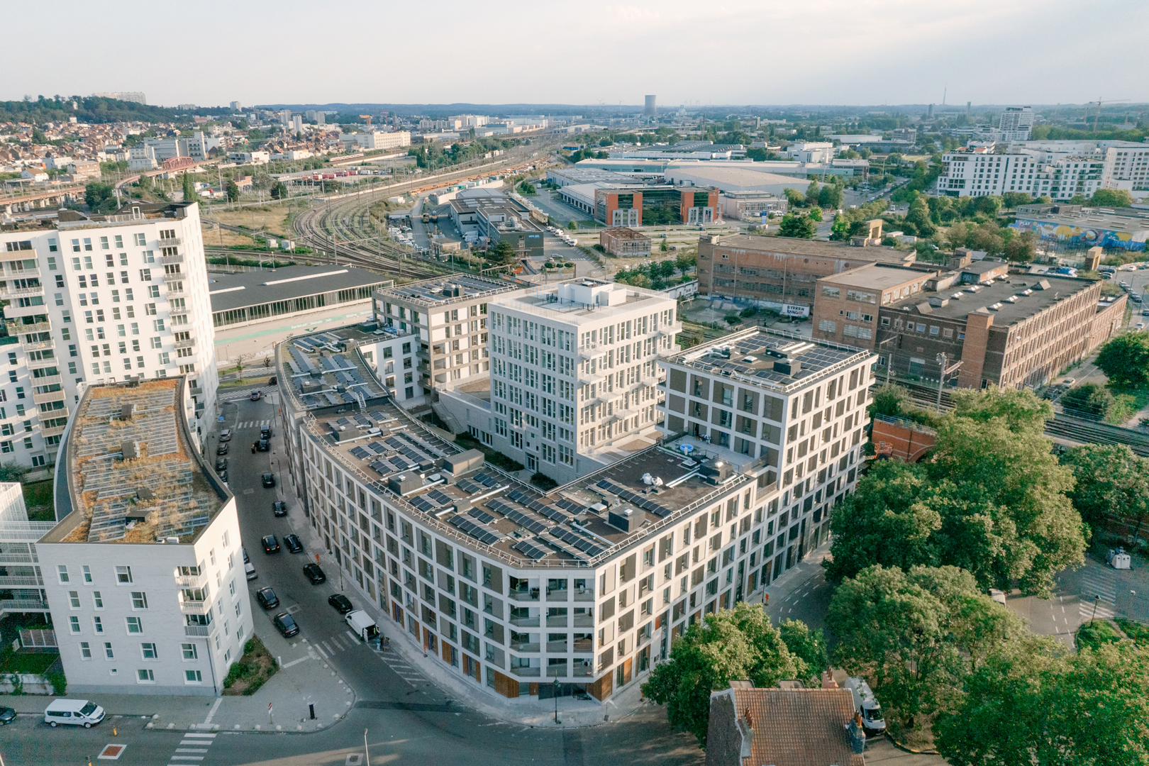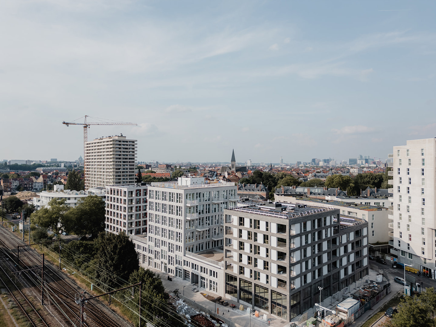 Citygate I – Marchandises is een multifunctionele stadsontwikkeling van 21.000 m² in Anderlecht die woningen, kinderopvang, productieve ruimtes, kantoren en publieke ruimte verenigt in één samenhangend bouwblok. Gelegen aan een strategische toegang tot Brussel, beantwoordt het project aan de nood om versnipperde stedelijke ruimtes tussen industriegebieden en woonwijken te herverbinden. Het programma vroeg om een compact maar divers architecturaal ensemble dat meerdere functies integreert en de publieke ruimte activeert. Hiermee worden hoogwaardige leefomstandigheden gegarandeerd en wordt bijgedragen aan een meer inclusieve, productieve en ecologisch verantwoorde metropool.