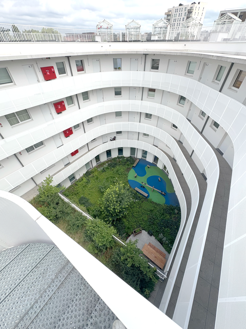 CityGate I – Goujons laat zien hoe architectuur een motor voor stedelijke en sociale transformatie kan worden. Door de mix van functies – woningen en een geïntegreerd sociaal en gezondheidscentrum, dat onder meer door Médecins du Monde wordt gedragen – creëert het project een echte leefomgeving in het hart van de wijk Cureghem. De compacte architectuur, het gedeelde binnenplein en de directe verbinding met de openbare ruimte versterken de interactie tussen bewoners en de wijk. Het project, winnaar van de Grand Prix national des Green Solutions Awards 2025 in de categorie Nieuwbouw, illustreert hoe duurzame, inclusieve en aanpasbare architectuur actief kan bijdragen aan de bouw van de stad van morgen.