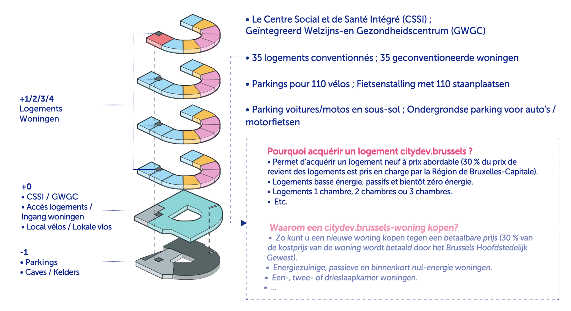 Het project CityGate I – Goujons maakt deel uit van de transformatie van een voormalig industriegebied in Anderlecht tot een gemengde stadswijk. De opdracht bestond uit het ontwerpen van een complex met 35 sociale woningen, en een geïntegreerd sociaal en gezondheidscentrum van 1 500 m², om tegemoet te komen aan de behoeften van de bewoners en de verandering van de wijk te begeleiden. Het project past ook in een dynamiek van lokaal overleg: via verschillende openbare presentaties en workshops kon er een dialoog worden aangegaan met de bewoners en de actoren van de wijk om het ontwerp te verrijken en het project te verankeren in zijn stedelijke en sociale context.