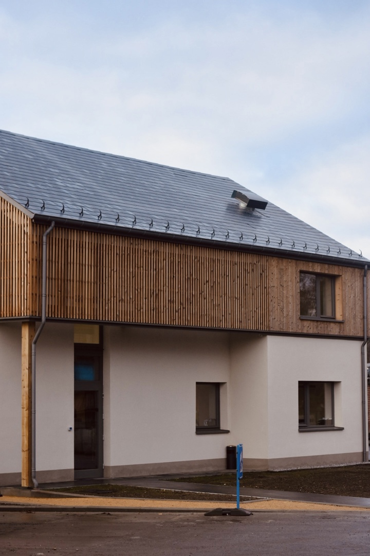Dit project belichaamt duurzame, gevoelige en voorbeeldige architectuur. Het combineert circulariteit, energieprestaties en ruimtelijke kwaliteit, terwijl het de milieueffecten met 33% vermindert ten opzichte van nieuwbouw. De symbolisch hergebruikte elementen: radiatoren die leuningen worden, hergebruikte treden, terracotta tegels, blauwe steen en CLT-afval dat tot plantenbakken werd omgevormd, geven een sterke en authentieke identiteit en een verhaal aan de plek. De lichtheid van de ruimtes, de accentuering van de steen, de geschilderde baksteen en het zichtbare hout, evenals het gebruik van CLT, creëren een eigentijdse en coherente esthetiek. Een geslaagde demonstratie van de duurzame architectuur van vandaag.