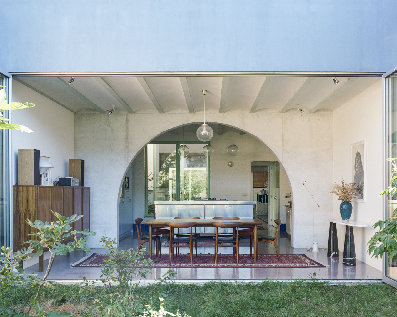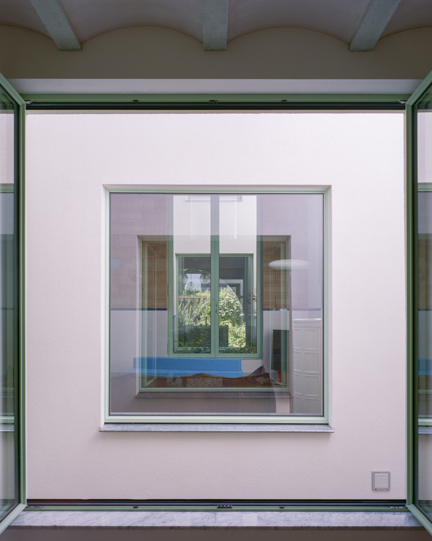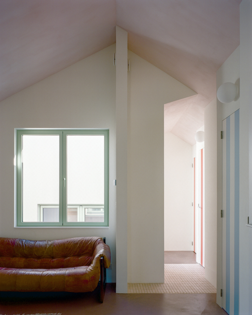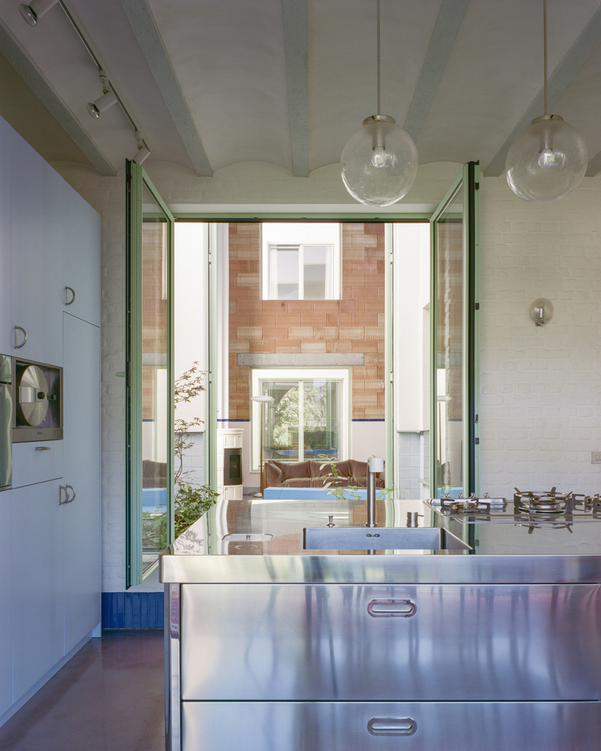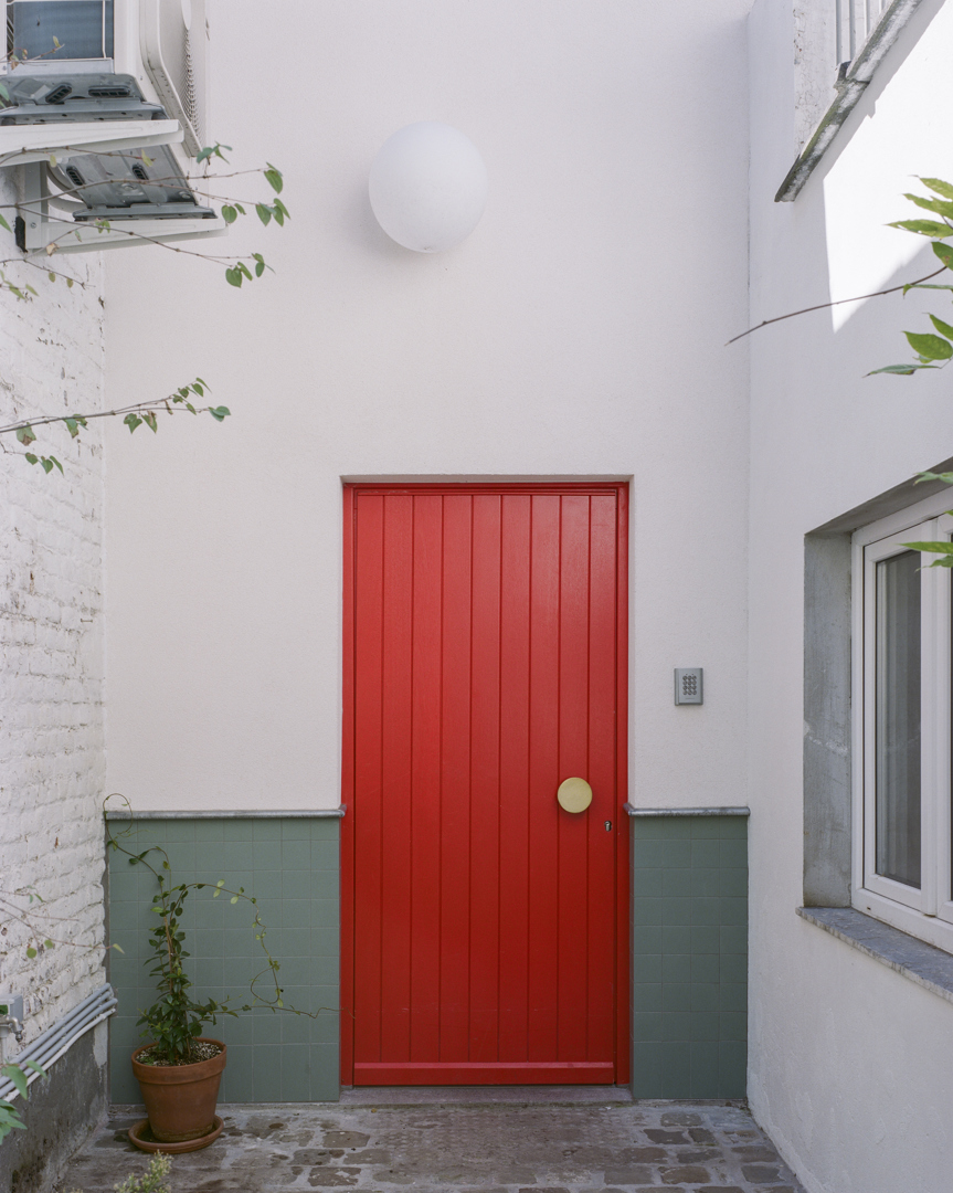 Duurzaamheid is hier ruimtelijk, materieel én stedelijk. We hergebruikten structurele en afwerkingsmaterialen en beperkten nieuwe grondstoffen tot het noodzakelijke. Door een onderbenut binnengebied te activeren dragen we bij aan zachte verdichting zonder bijkomende ruimte-inname. De patio’s zorgen voor natuurlijk licht, passieve ventilatie en een laag energieverbruik. Tegelijk creëerden we een robuuste, aanpasbare woning met een lange levensduur — sociaal en ecologisch duurzaam.