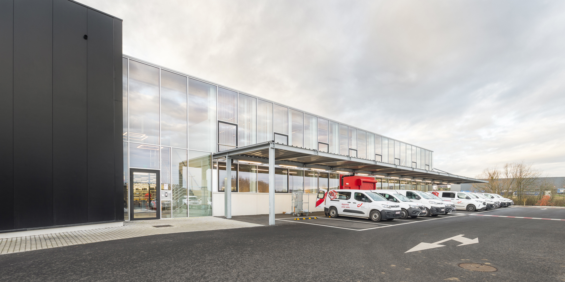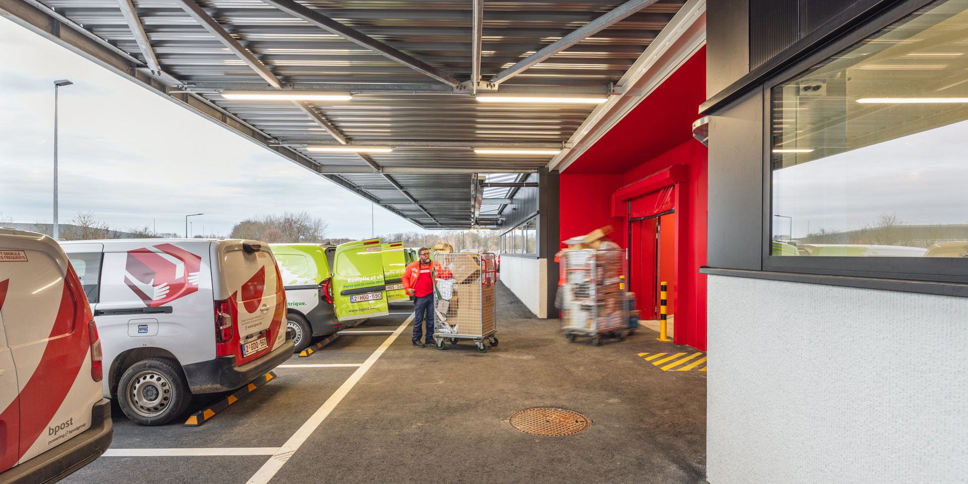 Dit project betreft de realisatie van een distributiecentrum voor de regio Charleroi, strategisch ingeplant in een bedrijvenzone in Jumet. Gezien de bijzondere stedenbouwkundige eisen op de site gaf BPost MODULO architects de opdracht om een gestandaardiseerd project om te vormen tot een samenhangend architecturaal voorstel dat beantwoordt aan de regelgeving en tegelijk het potentieel van de site versterkt. Het programma omvat een logistieke hal (5.700 m²) met een transitzone met laadkades, sorteerzones en kantoren. Daarnaast worden ruime buitenruimtes voorzien voor de logistieke werking: manoeuvreerruimtes, interne circulatie voor de postrondes en parkeervoorzieningen voor de vloot en het personeel. De kernopgave ligt in het helder organiseren en integreren van deze grootschalige stromen.