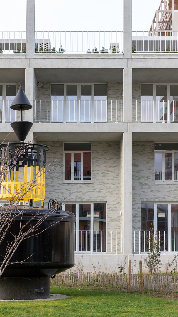 Het masterplan NIEUWE DOKKEN maakt ruimte voor nieuwe woonvormen. Cohousing is in België niet nieuw, maar groeit doorgaans bottom-up vanuit geëngageerde bewonersgroepen. Ontwikkelaars wagen zich zelden aan dit model. Hier hebben de ontwikkelaars en ontwerpers bewust hun nek uitgestoken en aangetoond dat cohousing ook marktgedreven kan worden opgezet, zonder sociale en ruimtelijke kwaliteit te verliezen. DUBBELTUUPE is een project waar mensen lang kunnen blijven samenleven, samenwerken en elkaar écht ontmoeten. Het richt zich op gemengde woonprofielen, participatie, collectieve voorzieningen en een goede doorwaadbaarheid van de open ruimte. Dit zorgt voor meer sociale controle en betrokkenheid, minder sociale vereenzaming of gettovorming. De architectuur sluit aan bij het dokkenlandschap.