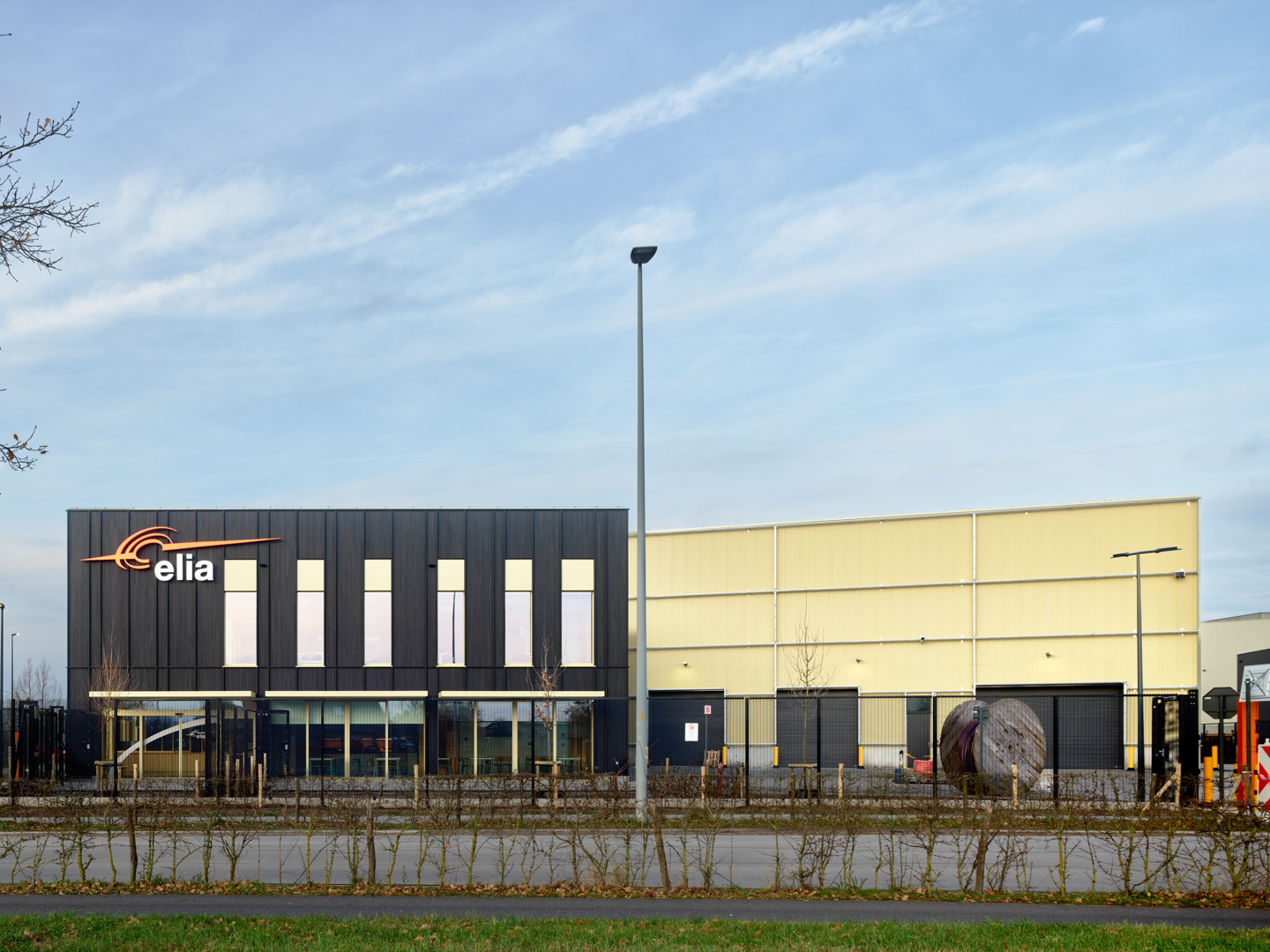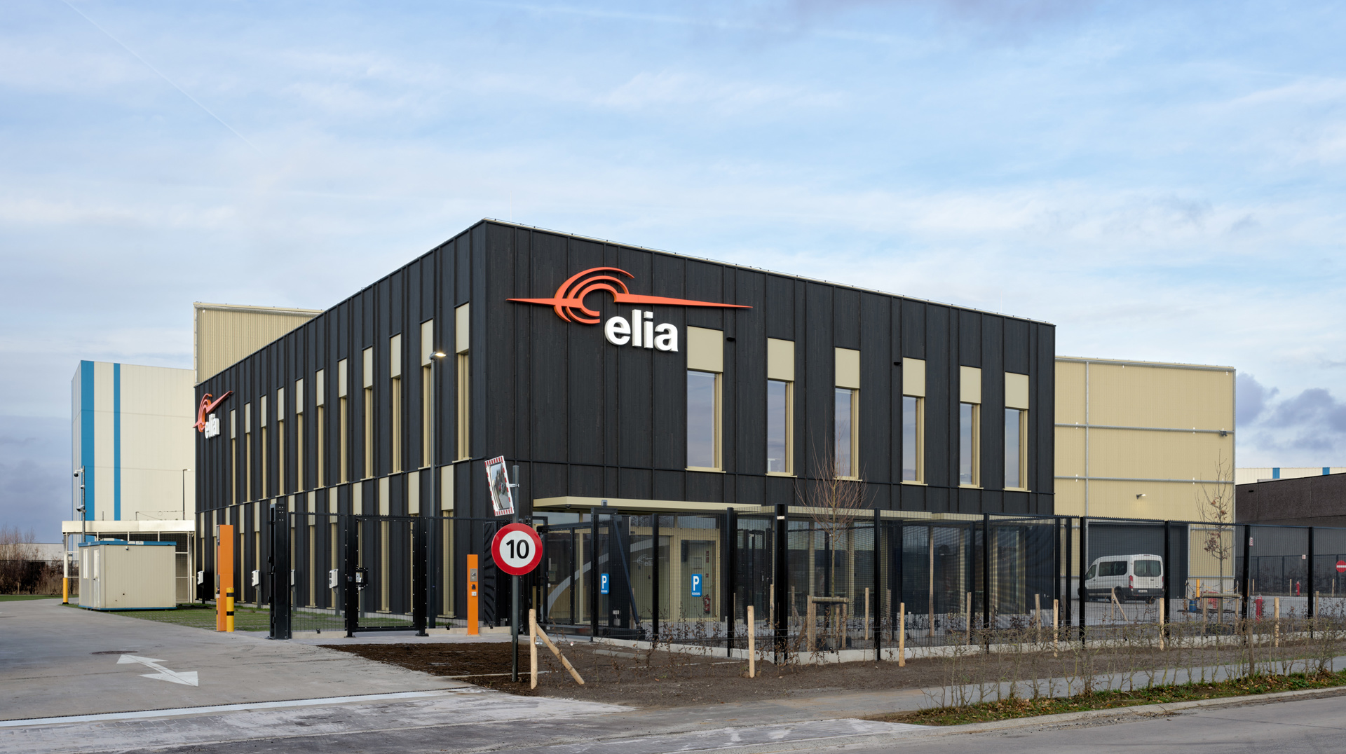 Het Service Center Kruisem is ontworpen als regionale uitvalsbasis voor Elia, de beheerder van het Belgisch hoogspanningsnet. De site verenigt drie volumes: een passief kantoorgebouw in houtbouw, een lage‑energie magazijn met atelierruimte, en een vrijstaande luifel voor buitenopslag. De omgevingsaanleg is integraal mee ontworpen, met aandacht voor waterdoorlatendheid, groen en leesbare circulatie. Binnen volgt het kantoor een heldere, flexibele planlogica met veel daglicht en gezonde materialen. De industriële hal is robuust, rationeel en onderhoudsvriendelijk. De focus ligt op een fossielvrij energetisch concept, aangevuld met lokale hernieuwbare energieopwekking. Het geheel weerspiegelt Elia’s toekomstgerichte, klimaatbewuste ambitie, en beoogt een BREEAM Excellent-certificering.