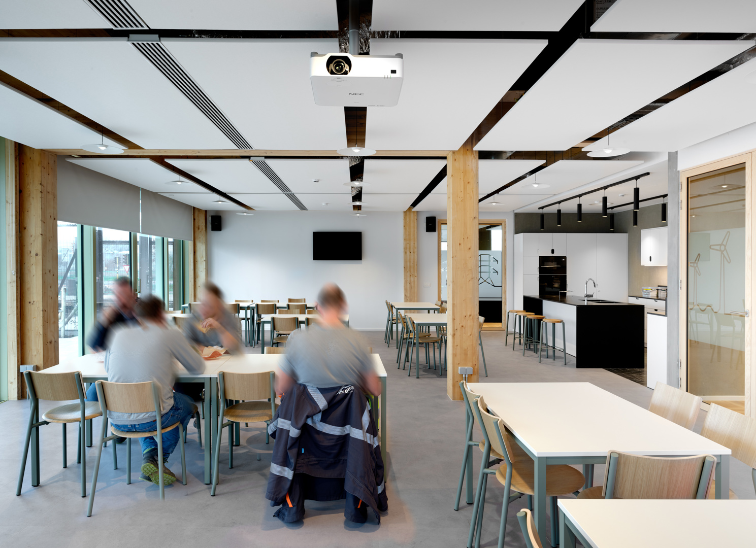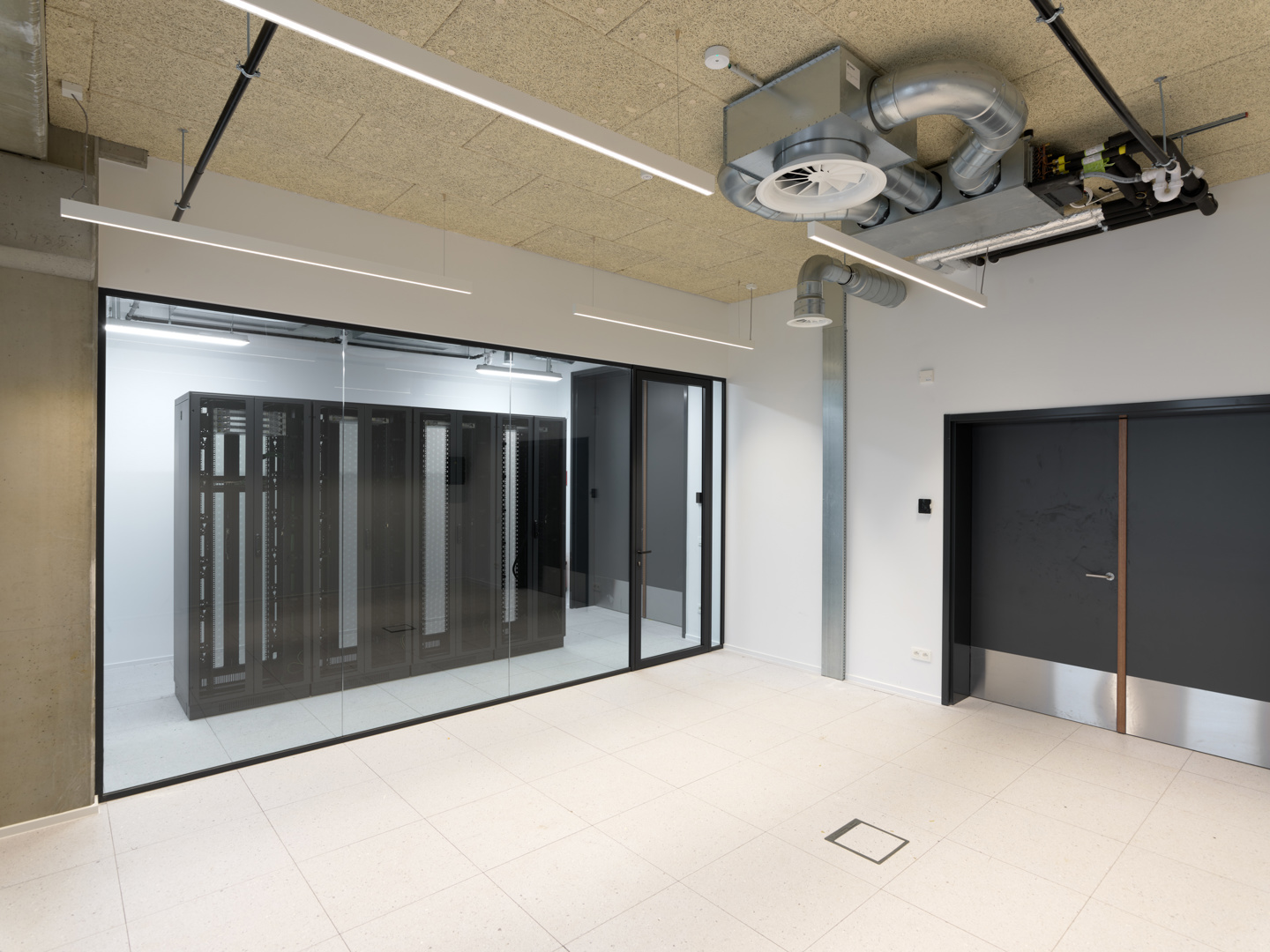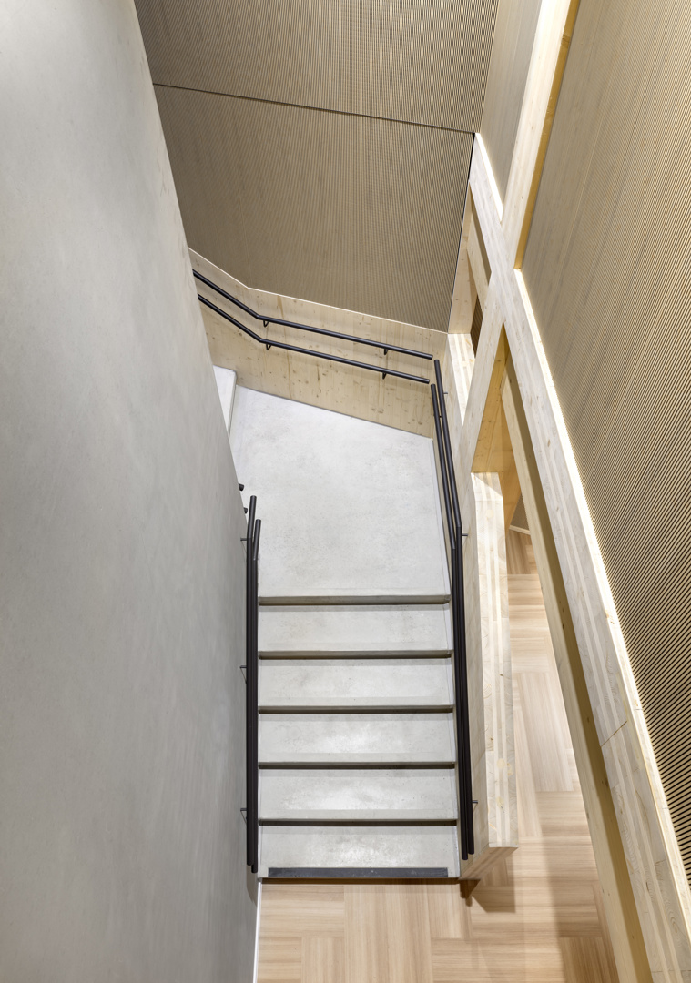 Elia’s Service Center toont hoe door een geïntegreerd ontwerp site, gebouw en techniek elkaar versterken. De buitenruimte is functioneel én ecologisch, met waterdoorlatende verhardingen, buffering en biodiverse groenaanleg. Het gebouw is klimaatrobuust: thermisch comfort is doorgerekend op een toekomstig klimaatscenario, zodat ook bij extremen de comfortgrenzen gehaald worden. Welzijn staat centraal. De materialisatie is bewust sober en rationeel: houtbouw en prefabricatie waar ze het meeste rendement bieden, demontabele lagen en robuuste afwerkingen die onderhoud en impact beperken. Het fossielvrije energieconcept functioneert met een minimaal verbruik aan hernieuwbare energie. Het resultaat is een helder en schaalbaar referentieproject.