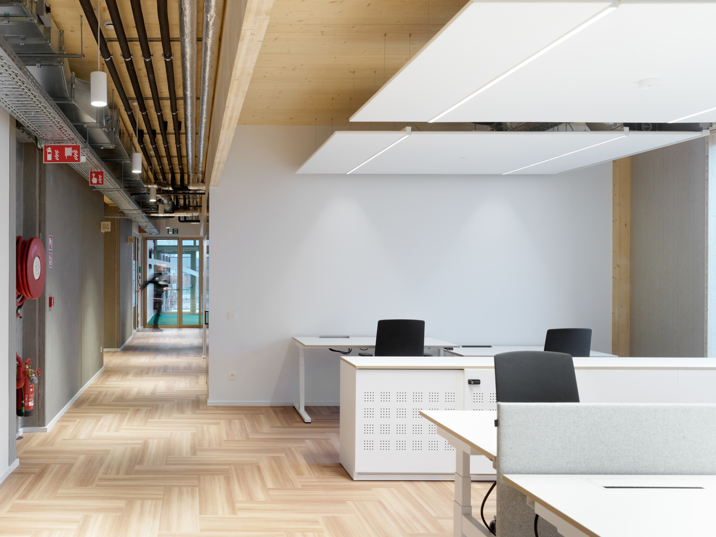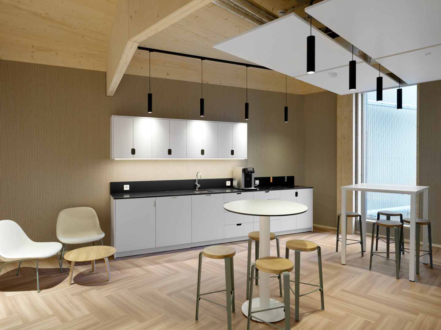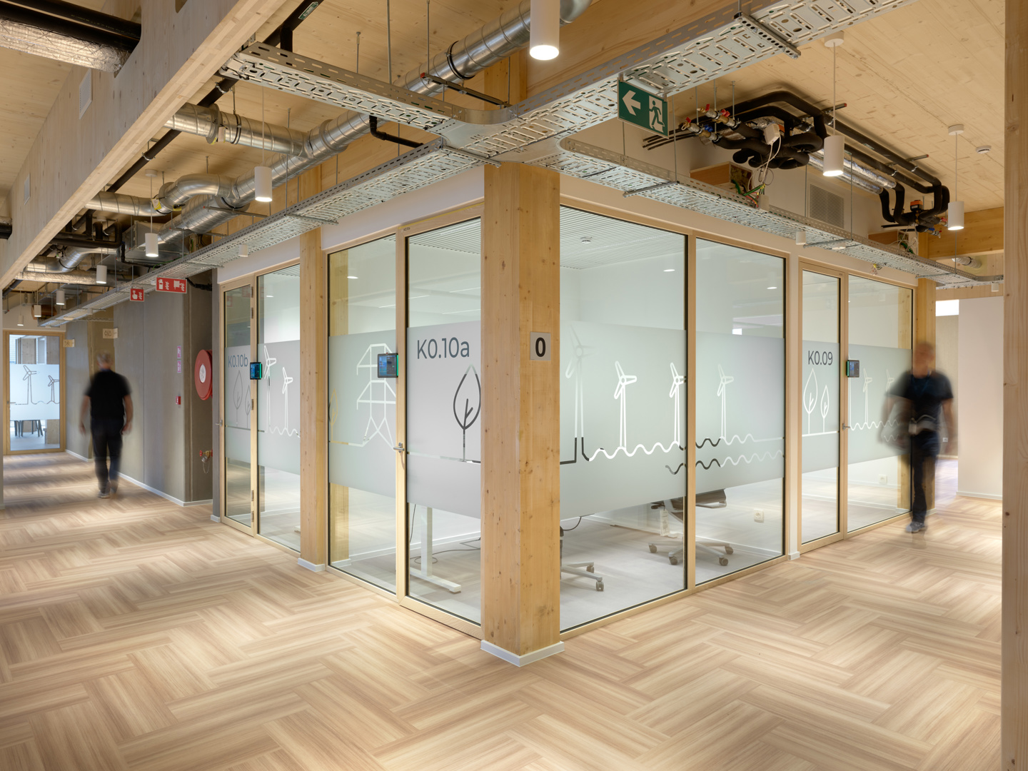 Elia’s Service Center toont hoe door een geïntegreerd ontwerp site, gebouw en techniek elkaar versterken. De buitenruimte is functioneel én ecologisch, met waterdoorlatende verhardingen, buffering en biodiverse groenaanleg. Het gebouw is klimaatrobuust: thermisch comfort is doorgerekend op een toekomstig klimaatscenario, zodat ook bij extremen de comfortgrenzen gehaald worden. Welzijn staat centraal. De materialisatie is bewust sober en rationeel: houtbouw en prefabricatie waar ze het meeste rendement bieden, demontabele lagen en robuuste afwerkingen die onderhoud en impact beperken. Het fossielvrije energieconcept functioneert met een minimaal verbruik aan hernieuwbare energie. Het resultaat is een helder en schaalbaar referentieproject.
