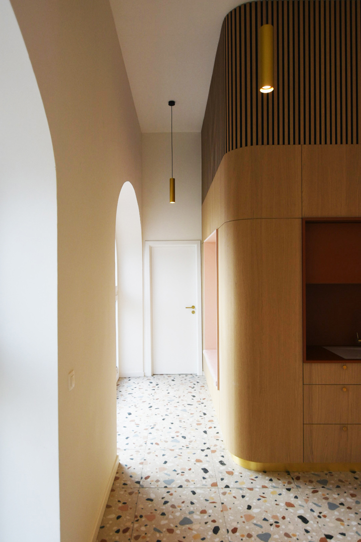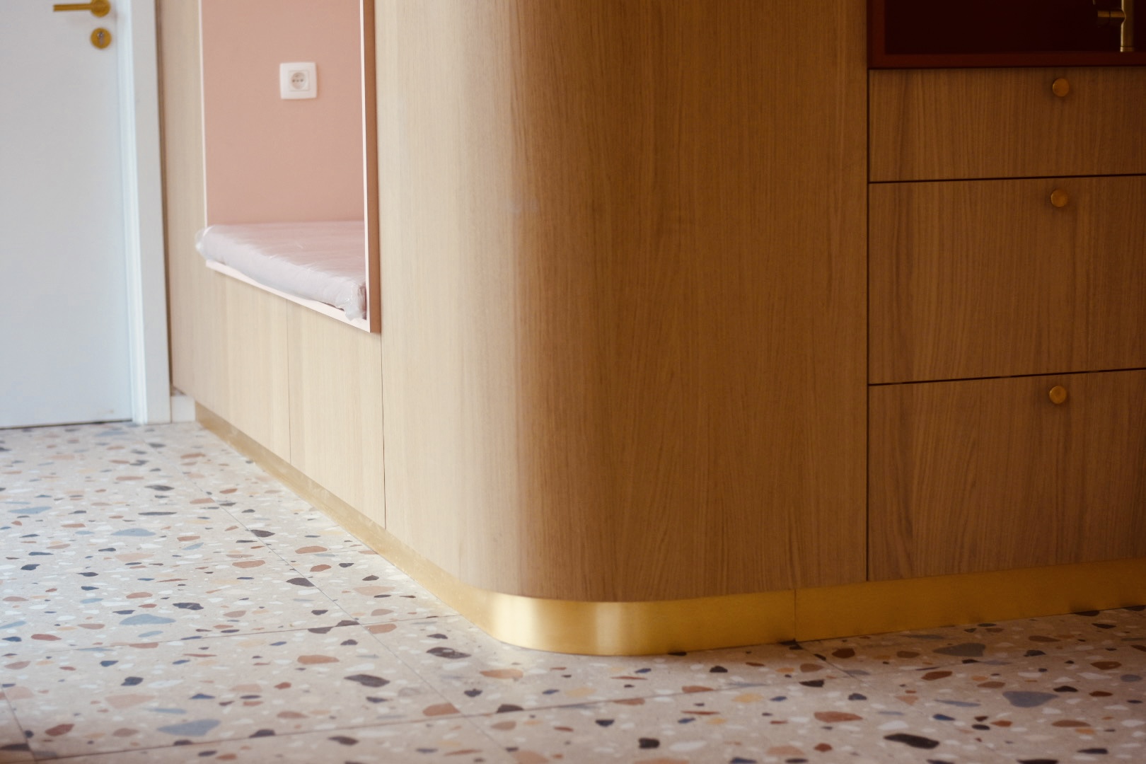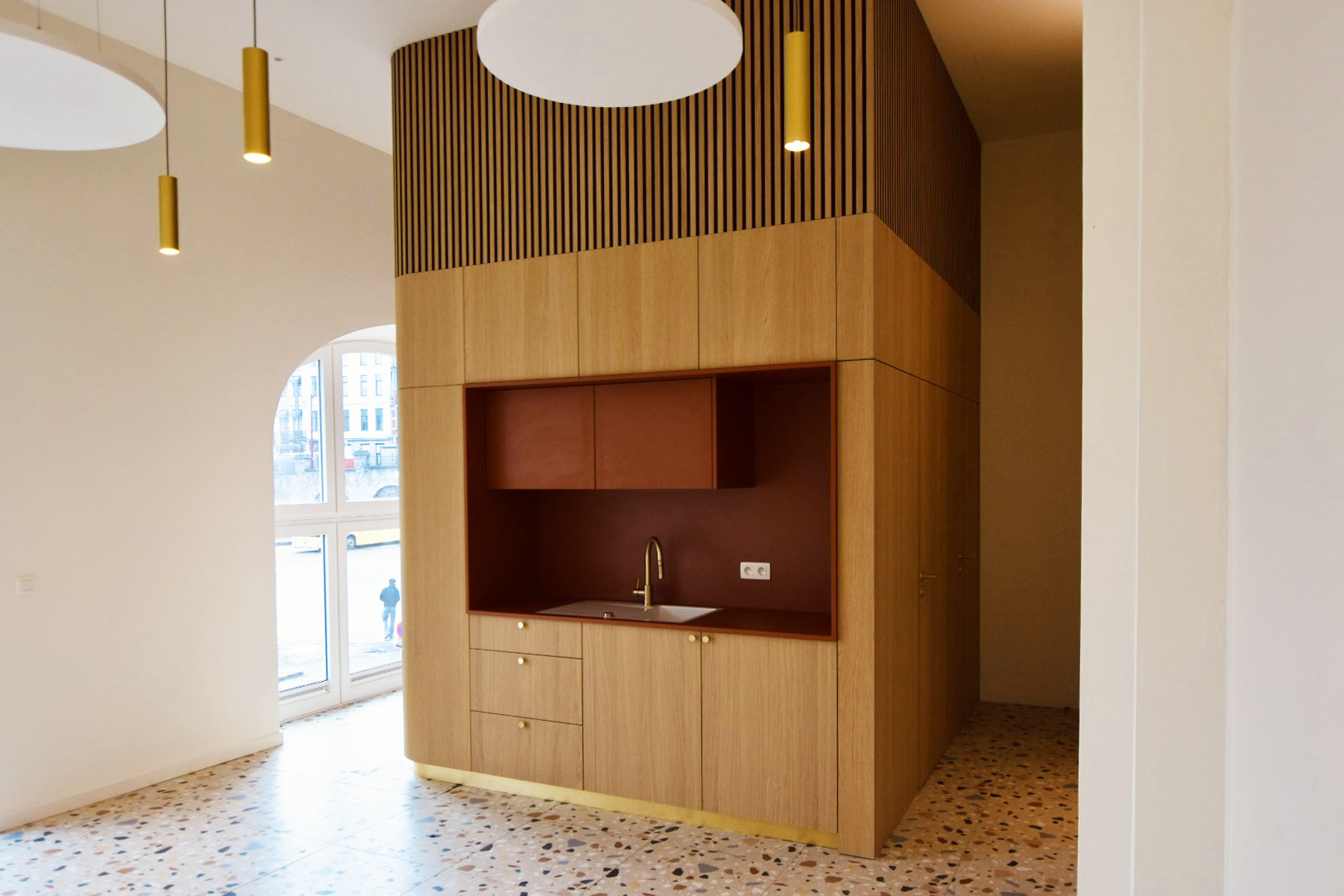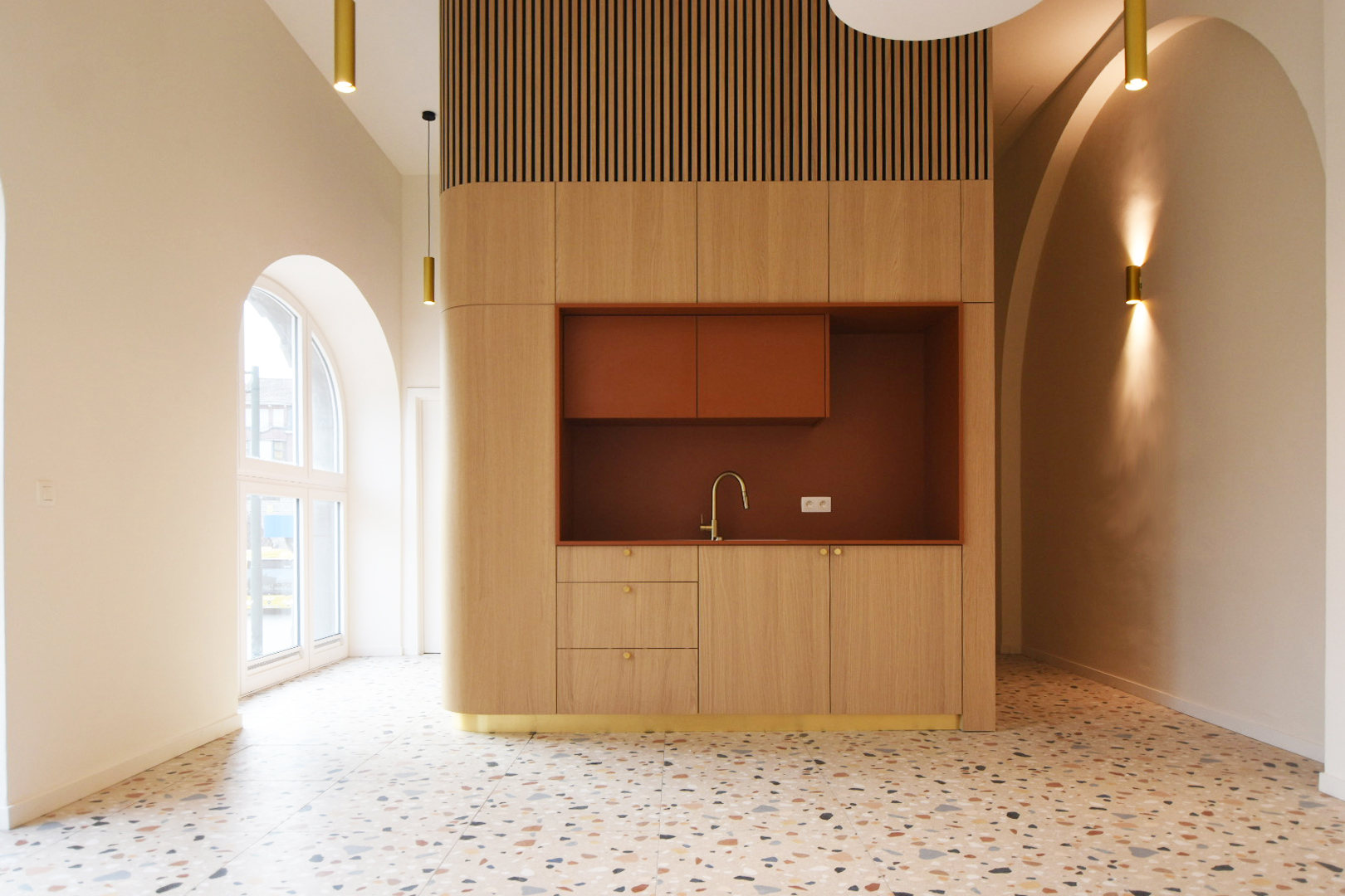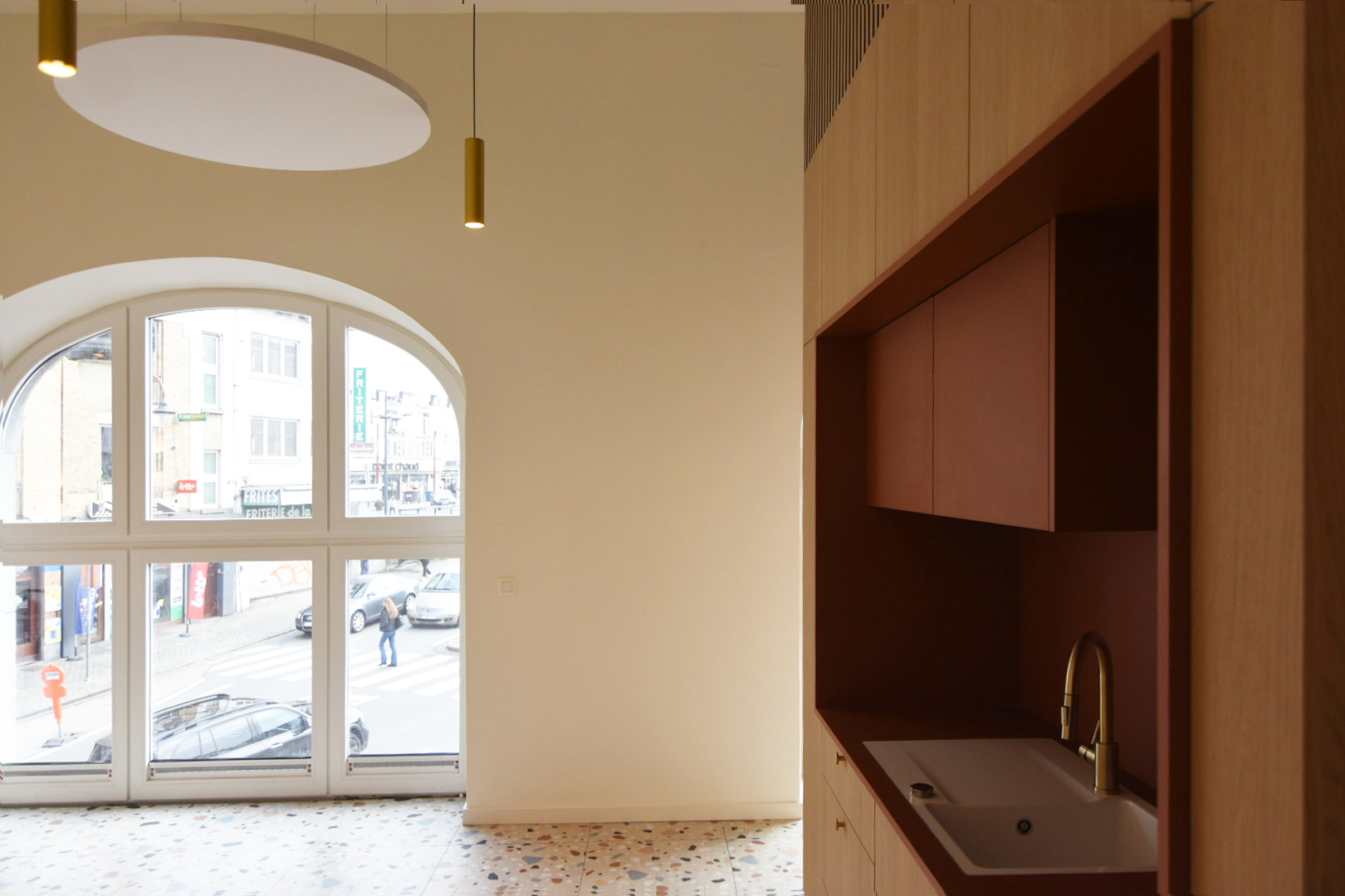 Het station van Verviers is een druk verkeersknooppunt op elk moment van de dag. De uitdaging lag in het coördineren van alle werkzaamheden volgens een strak schema zonder zware sloop te gebruiken. Om dit schema en het budget te respecteren, hebben we de gehele structuur behouden en ervoor gekozen deze te benadrukken met zachte en warme materialen. De bijzondere geometrie van sommige ruimtes vereiste ter plaatse werken zonder elkaar te hinderen. Het resultaat is een nauwkeurig werk aan details, materialen en kleur om ruimtes te creëren die zowel functioneel als gastvrij zijn.