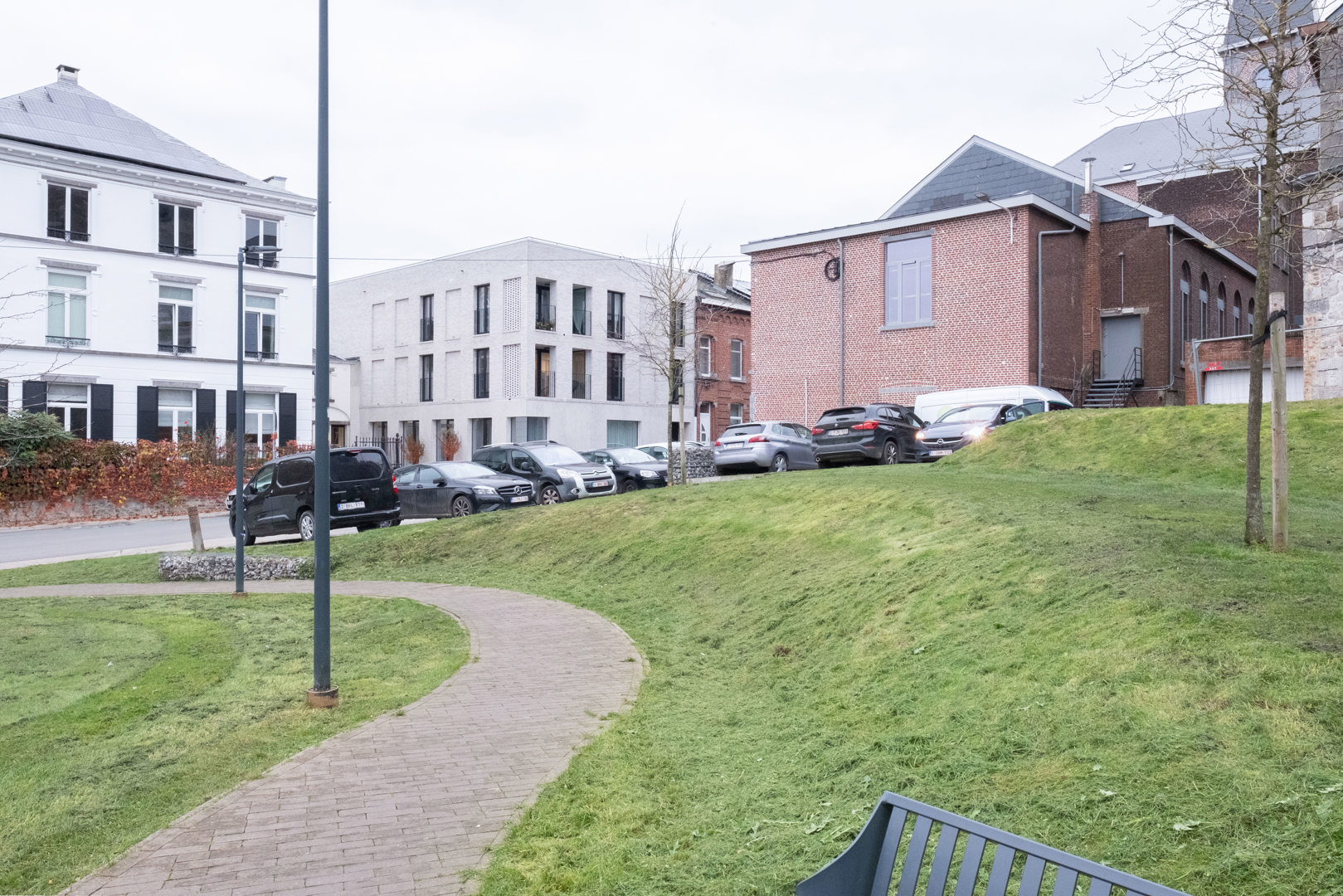 Het project omvat de sloop in het stadscentrum van Fleurus van een oud pand en de bouw van een notariskantoor en vier appartementen. Dit project heeft de bijzonderheid dat het zowel in dialoog staat met een openbare ruimte die grenst aan de kerk van de stad als met het herenhuis van de eigenaars.