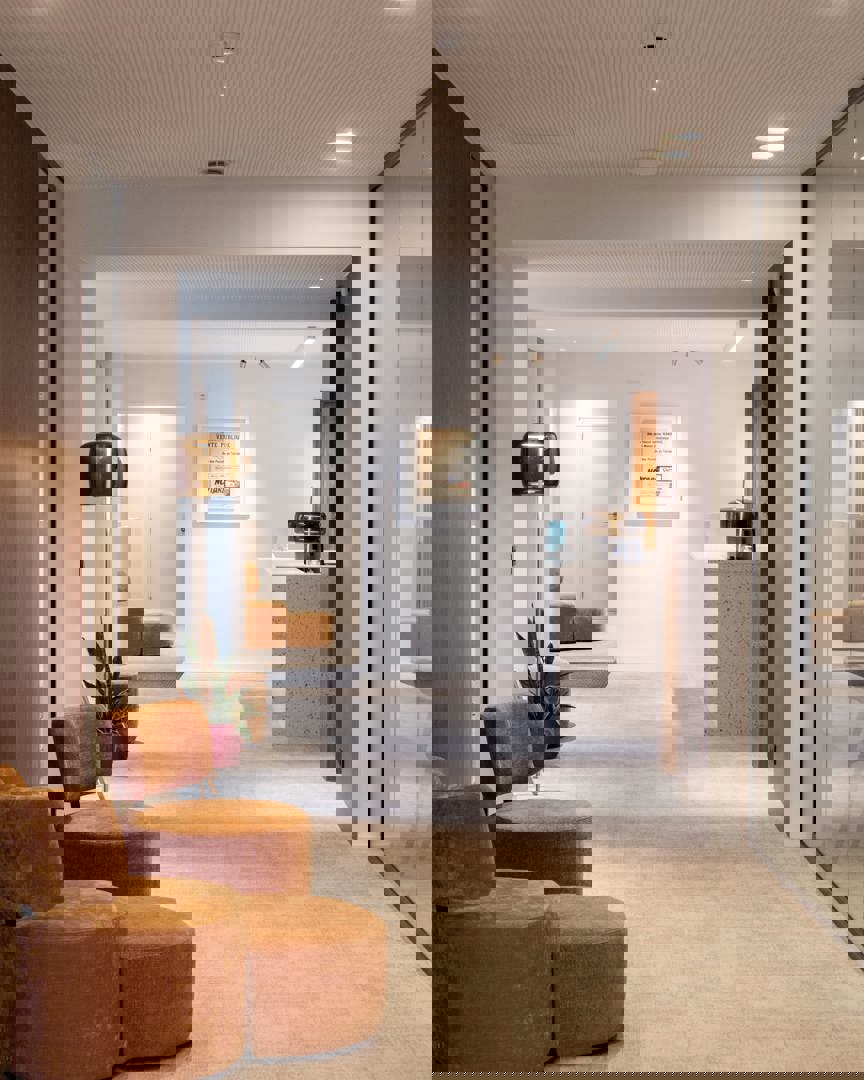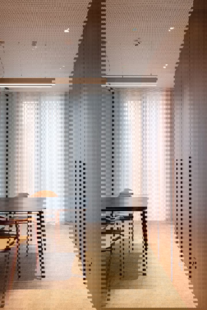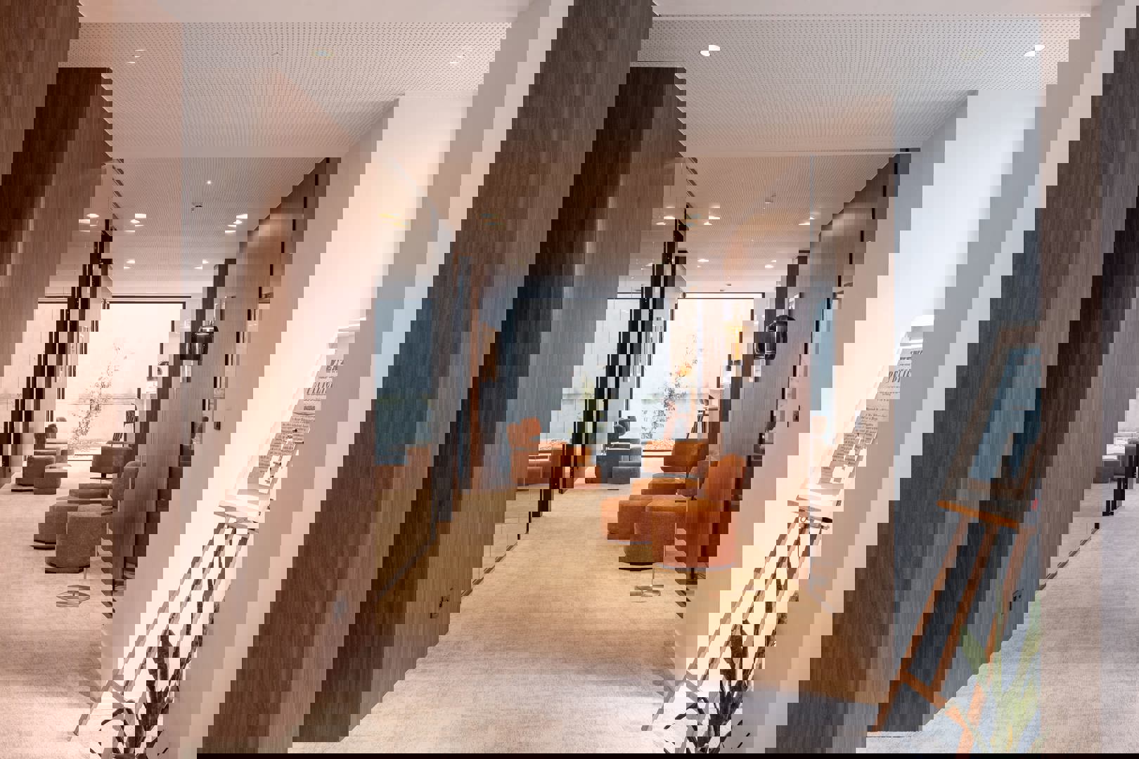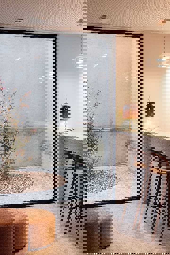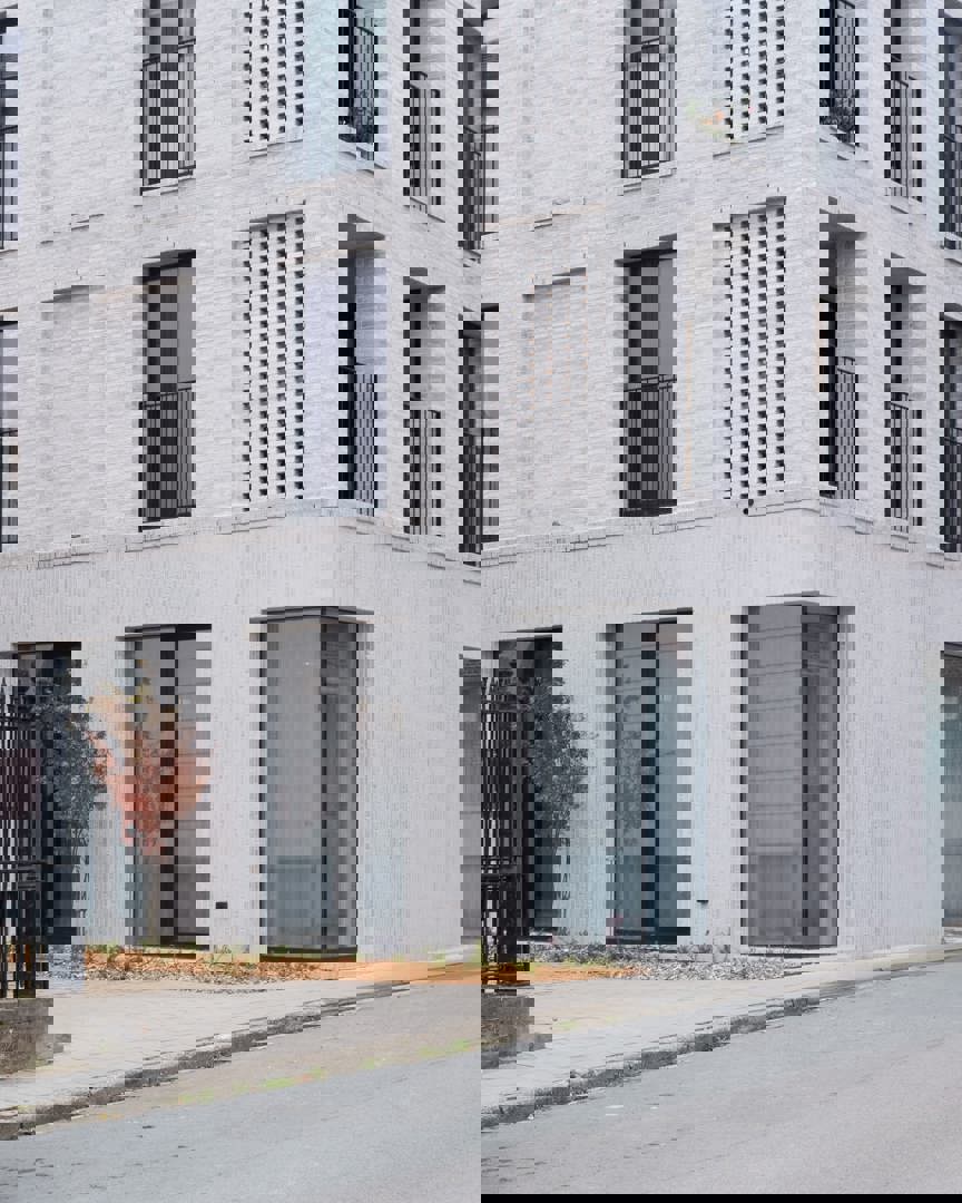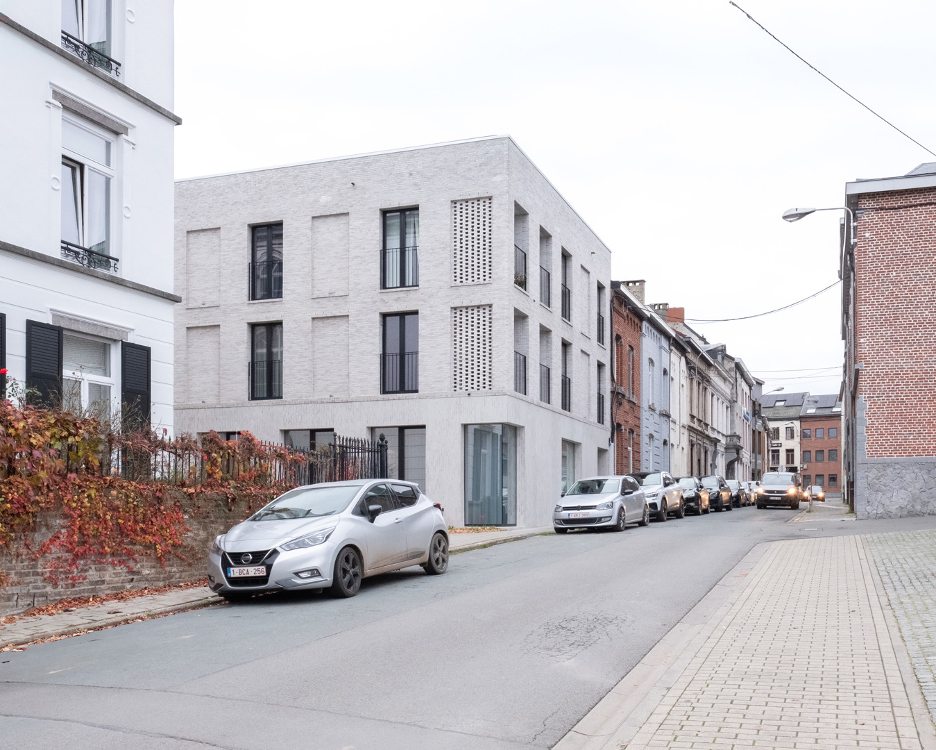 De bouw in het hypercentrum van Fleurus was een uitdaging in termen van uitzichtbeheer met de buren en de aangrenzende grenzen. Bovendien vereiste de combinatie van een notariskantoor en woningen een zorgvuldige organisatie van de stromen, zodat de ingangen van de twee functies elkaar niet storen. Bovendien waren de akoestiek en de privacybeheer bijzonder belangrijke onderwerpen in het ontwerp van deze locatie. In dit opzicht beperkt een grote moucharabieh-muur het zicht vanuit de appartementen op de privétuinen. Ten slotte leidde de dialoog met de historische bebouwde omgeving tot veel uitwisselingen met zowel de klanten als de publieke instanties.
