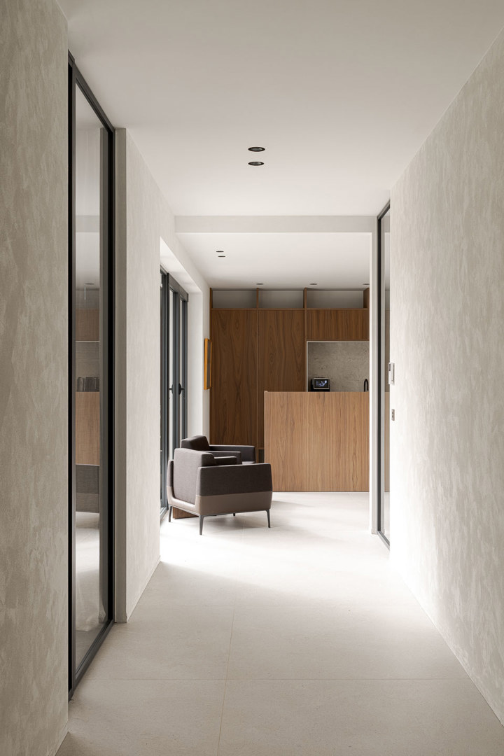De opdracht omvatte het interieurontwerp voor een nieuwbouwkantoor van circa 280 m² in Nazareth. De kernvraag was het creëren van een werkplek die de professionele zakelijkheid van een vastgoedontwikkelaar combineert met de huiselijke warmte van een family office. Het ontwerp moest een verfijnd antwoord bieden op de strakke architectuur van het gebouw met zijn zadeldak en houten lamellen. Er werd gezocht naar een omgeving die zowel representatief is voor klanten als uitnodigend voor de familie en hun team. Maatwerk en een tactiel materiaalgebruik moesten de familiale identiteit en ambities fysiek vertalen naar een werkomgeving die ook morgen relevant blijft
