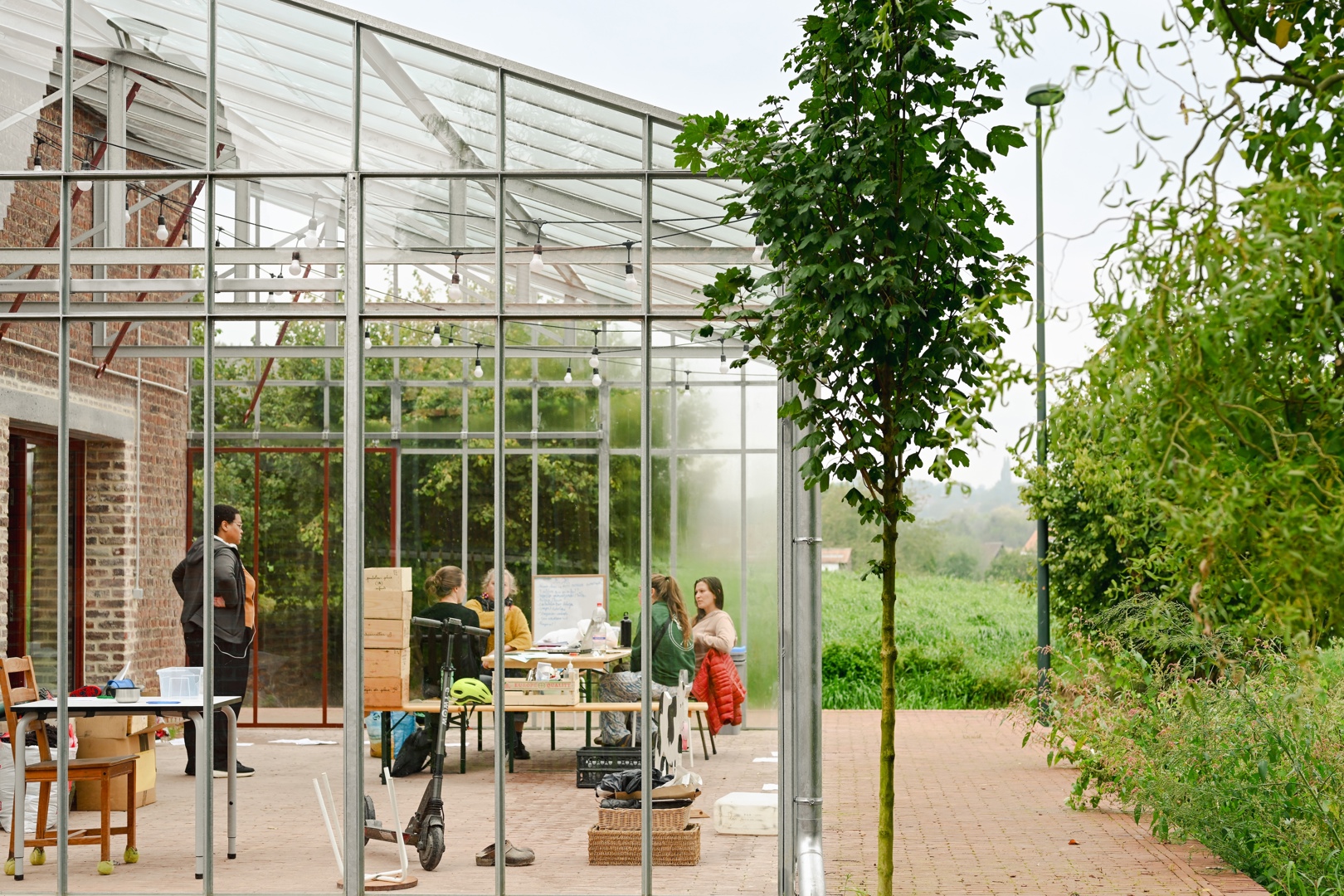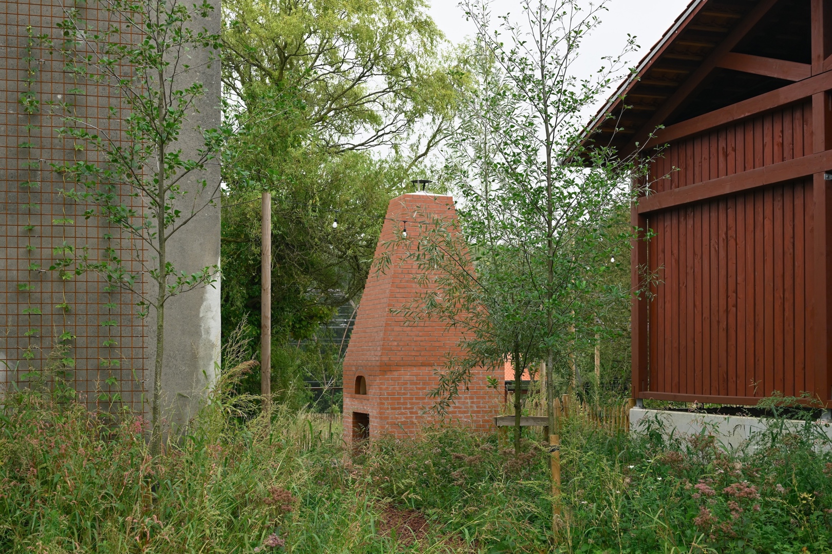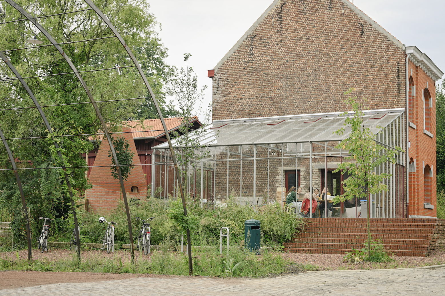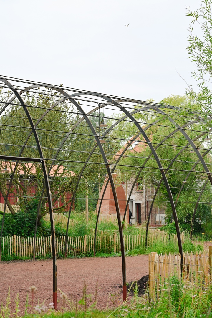 De grootste uitdaging was om een gesloten, gefragmenteerde en historisch gelaagde site te transformeren tot een open en gedeelde plek, zonder haar identiteit of ruimtelijke rijkdom te verliezen. Tegelijk moest het project plaats bieden aan uiteenlopende gebruikers, programma’s en ritmes van gebruik. Het antwoord ligt in een fijnmazige ruimtelijke opbouw: een centrale agora als bindend hart, aangevuld met complementaire buitenruimtes met elk een eigen sfeer, materialiteit en vegetatiestructuur. Daardoor ontstaat geen generieke herontwikkeling, maar een levend en precies gecomponeerd geheel waarin productie, ontmoeting, educatie en ecologie elkaar wederzijds versterken en ruimtelijk leesbaar maken.