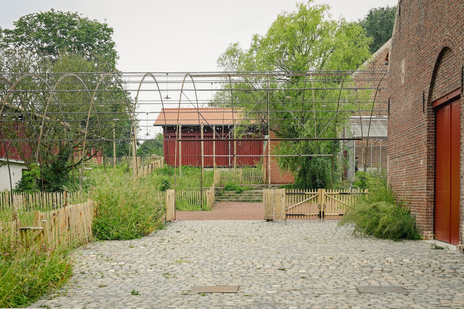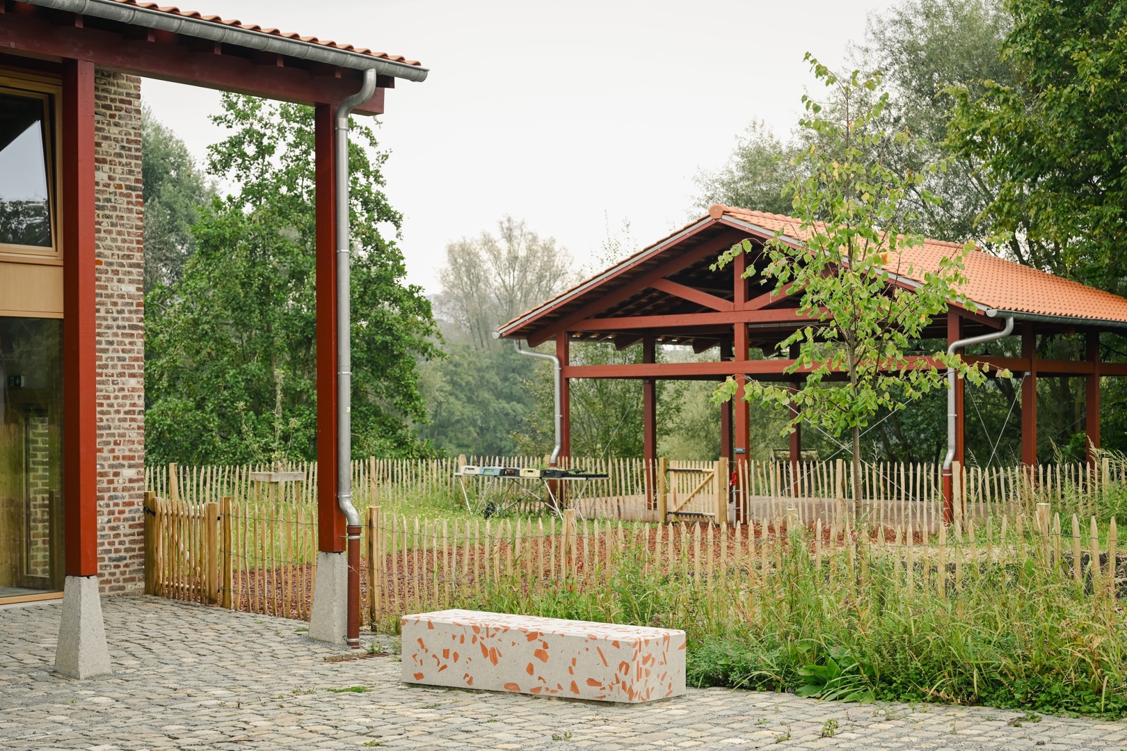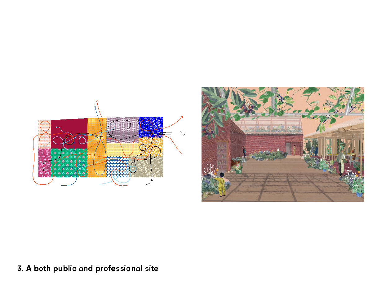 De grootste uitdaging was om een gesloten, gefragmenteerde en historisch gelaagde site te transformeren tot een open en gedeelde plek, zonder haar identiteit of ruimtelijke rijkdom te verliezen. Tegelijk moest het project plaats bieden aan uiteenlopende gebruikers, programma’s en ritmes van gebruik. Het antwoord ligt in een fijnmazige ruimtelijke opbouw: een centrale agora als bindend hart, aangevuld met complementaire buitenruimtes met elk een eigen sfeer, materialiteit en vegetatiestructuur. Daardoor ontstaat geen generieke herontwikkeling, maar een levend en precies gecomponeerd geheel waarin productie, ontmoeting, educatie en ecologie elkaar wederzijds versterken en ruimtelijk leesbaar maken.