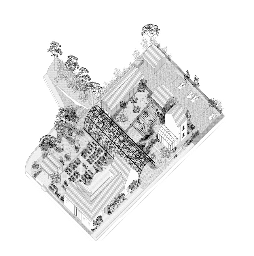 Ferme du Chaudron vertrekt van de herbestemming van een historische boerderijsite tot een hedendaagse plek voor duurzame landbouw, samenwerking, educatie en lokale productie. Samen met Plant en Houtgoed ontwikkelde 51N4E een ontwerp dat de site leest als een ensemble van onderling verbonden landschappelijke en architecturale ruimtes, eerder dan als één homogeen geheel. Gebouwen, erf, tuin en open ruimte worden opnieuw georganiseerd rond een centrale agora en een reeks productieve en ecologische deelruimtes. Zo wordt de voormalige hoeve niet alleen hergebruikt, maar ook opnieuw verankerd als open, collectieve en productieve plek tussen stad, gemeenschap en landschap.