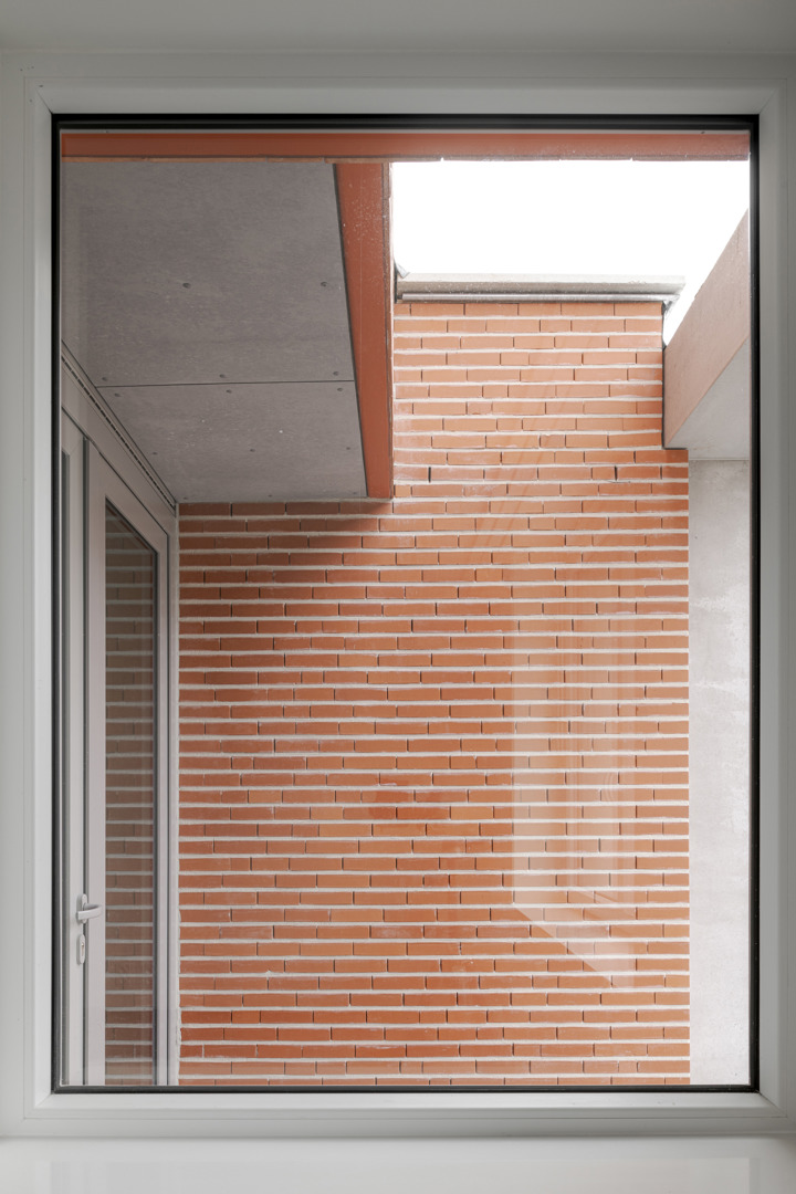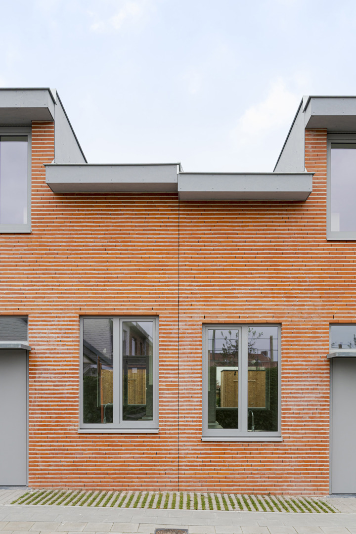 De spanning tussen densiteit en leefbaarheid vormt de kern van het ontwerp. In plaats van versnippering kiest het project voor een compacte rijwoningtypologie die ruimte vrijmaakt voor collectieve kwaliteit. Een kruipad activeert het binnengebied als ontmoetingsruimte en veilige zachte verbinding. De woningen zijn opgevat als robuuste, maar flexibele en aanpasbare kaders, zodat ze mee evolueren met hun bewoners. Architecturaal wordt aansluiting gezocht bij de lokale typologie : uitgesproken kroonlijsten en dakkapellen, rode baksteen. Een centraal daklicht, het voordeurbovenlicht, hoge ramen, een beglaasde deur, de hellende daken brengen ruimte, licht en doorzicht in de woning. De betonnen structuur achteraan zorgt voor zitplekken om te kuieren in de zon en weert tegelijk de zon in huis.