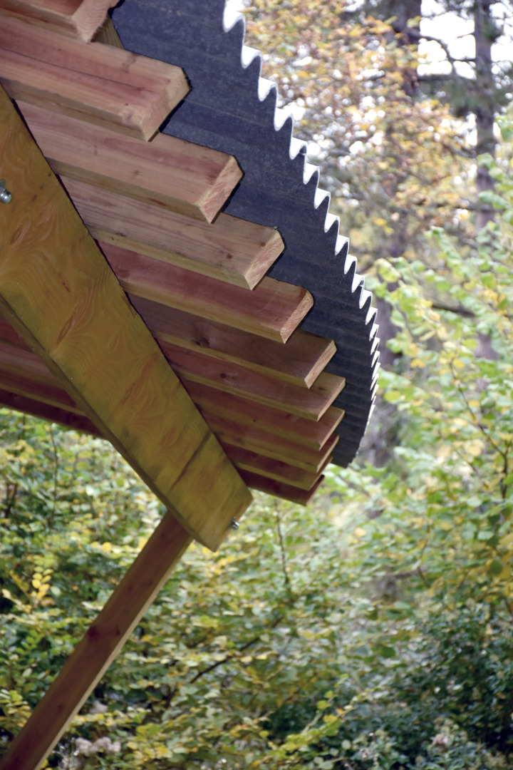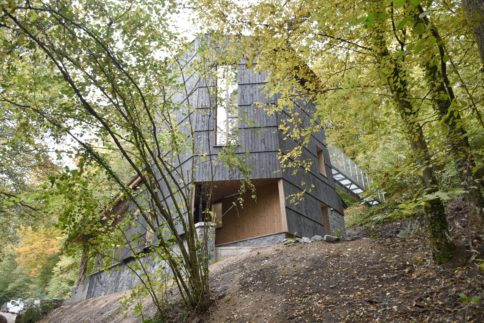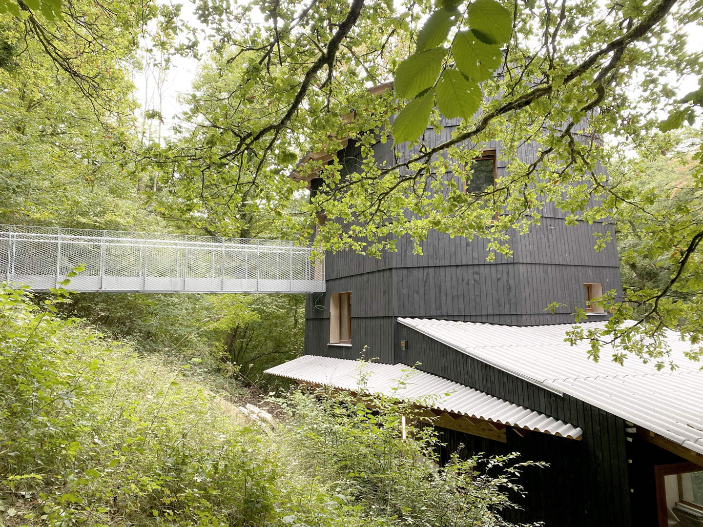 We hebben de wedstrijd gewonnen met onze duurzame en vooruitstrevende aanpak die rekening houdt met de beperkingen van de omgeving, met een permacultuur benadering van architectuur: - het nieuwe gebouw respecteert de footprint van het oude (beperkte grondwerken) - houten structuur, - lokale en biogebaseerde materialen: klei, natuurlijke kalksteen (in overeenstemming met de geologie van de locatie), natuurlijke isolatoren - eenvoudige speciale technieken, weinig onderhoud - geïntegreerd waterbeheer: recuperatie (citerne), infiltratie, phytoremediatie - biocomposttoilet (geen watergebruik) - bijzondere aandacht voor biodiversiteit (mogelijke kolonisatie van de gebruikte materialen) - bijzondere aandacht voor bio-inclusiviteit (nestkasten, vleermuizenverblijven, schuilplaatsen voor winterkoninkjes)