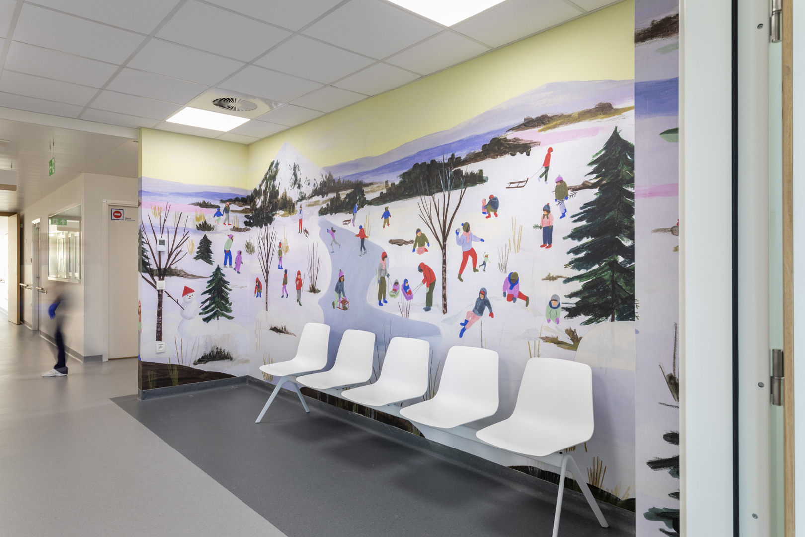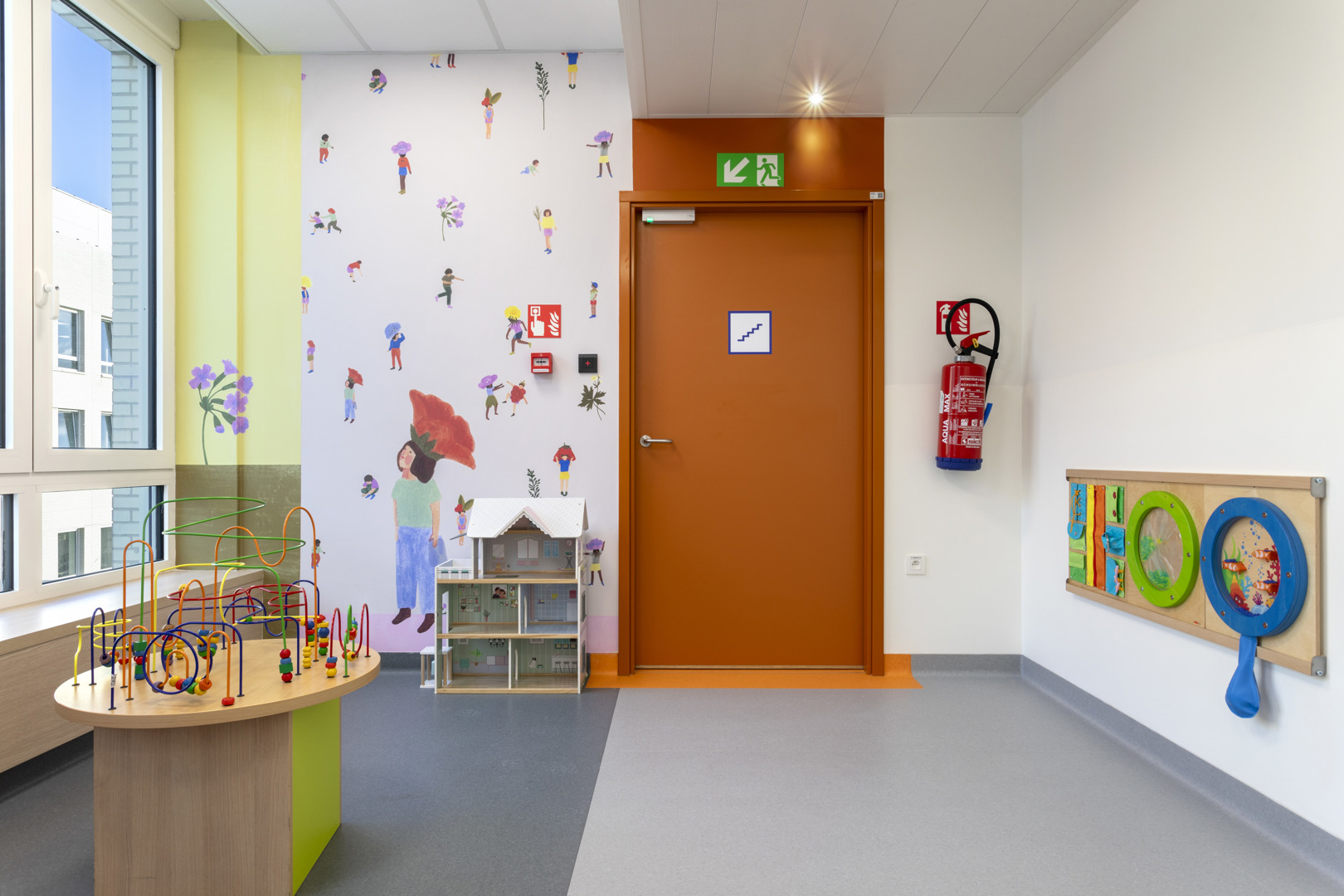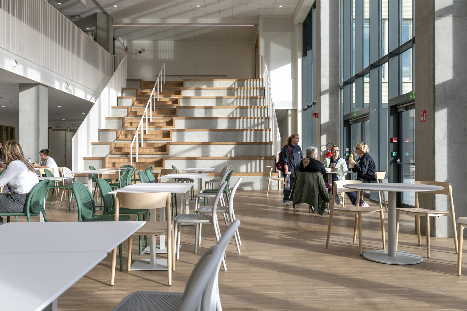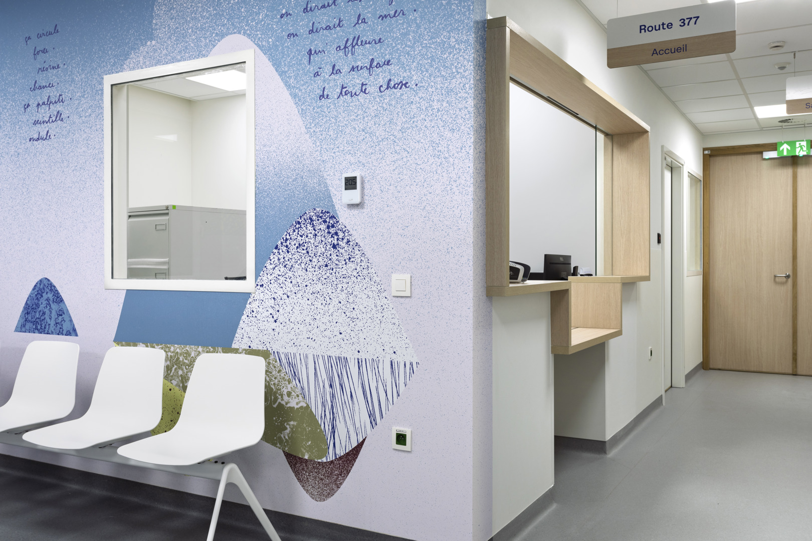 Het Grand Hôpital de Charleroi (GHdC) stelt welzijn centraal in zijn ontwerp door in te zetten op een symbiose tussen architectuur en landschap. Het ziekenhuis ligt in een park van 10,5 hectare en biedt een rustgevende natuurlijke omgeving die het lichamelijke en geestelijke herstel bevordert. Om te breken met het massieve uiterlijk van ziekenhuisgebouwen, maakt het project gebruik van openingen en kleurenspel die een intuïtieve oriëntatie vergemakkelijken. Deze geruststellende aanpak is erop gericht dat patiënten en naasten zich ‘thuis’ voelen. De humanisering van de ruimtes komt tot uiting in een gradatie van intimiteit, waarbij de voorkeur wordt gegeven aan hout in de kamers en artistieke muurschilderingen worden geïntegreerd.