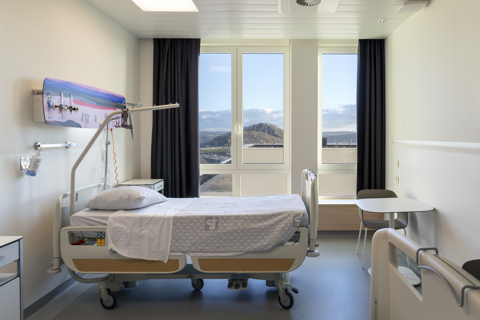 Het samenbrengen van vijf locaties in één gigantisch complex, zonder dat dit een monolithisch effect oplevert. Om dit te realiseren heeft het architectenbureau VKRA gekozen voor een compacte architectuur die echter wordt onderbroken door openingen en een gelaagde structuur, wat zorgt voor flexibiliteit en aanpasbaarheid. Door te spelen met de kleurcontrasten tussen donkere bakstenen aan de buitenkant en lichte bakstenen in de patio's, en door hout en artistieke muurschilderingen te integreren in de intieme zones, slaagt het ziekenhuis erin om een technisch gigantisch bouwwerk om te vormen tot een geruststellende ruimte die het gevoel van thuis nabootst.