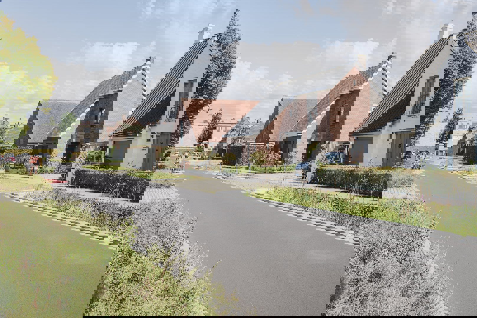 Dit project is duurzaam omdat we de ondergrondse Sint Amandsbeek opnieuw zichtbaar maken via herhaalde infiltratiesystemen die regenwater bufferen, vertraagd infiltreren. De infiltratiebakken passen in de beperkte ruimte waar nutsleidingen of bestaande bomen aanwezig zijn. We kozen voor duurzame materialen en voor beplanting die zowel droogte als natte periodes aankan en biodiversiteit aantrekt. Door bestaande groenzones te verbinden tot een blauwgroene as met paden, speelzones en open water stimuleren we actief buitenleven en creëren we een klimaatbestendige wijk.