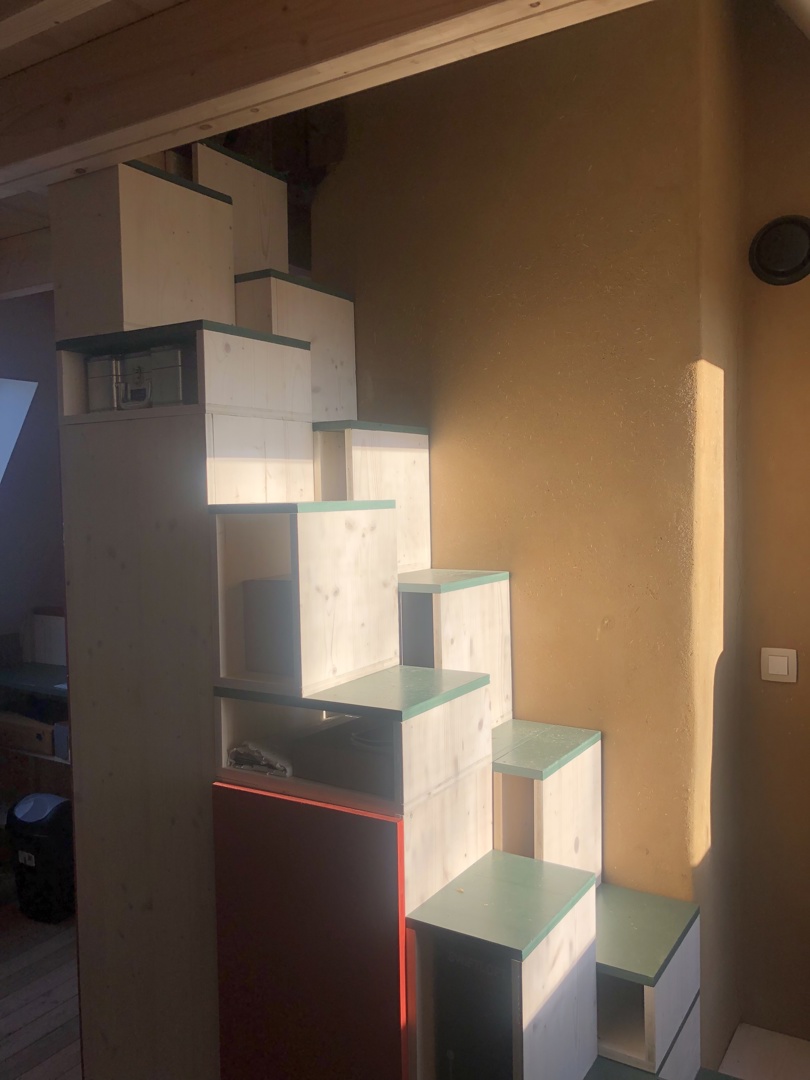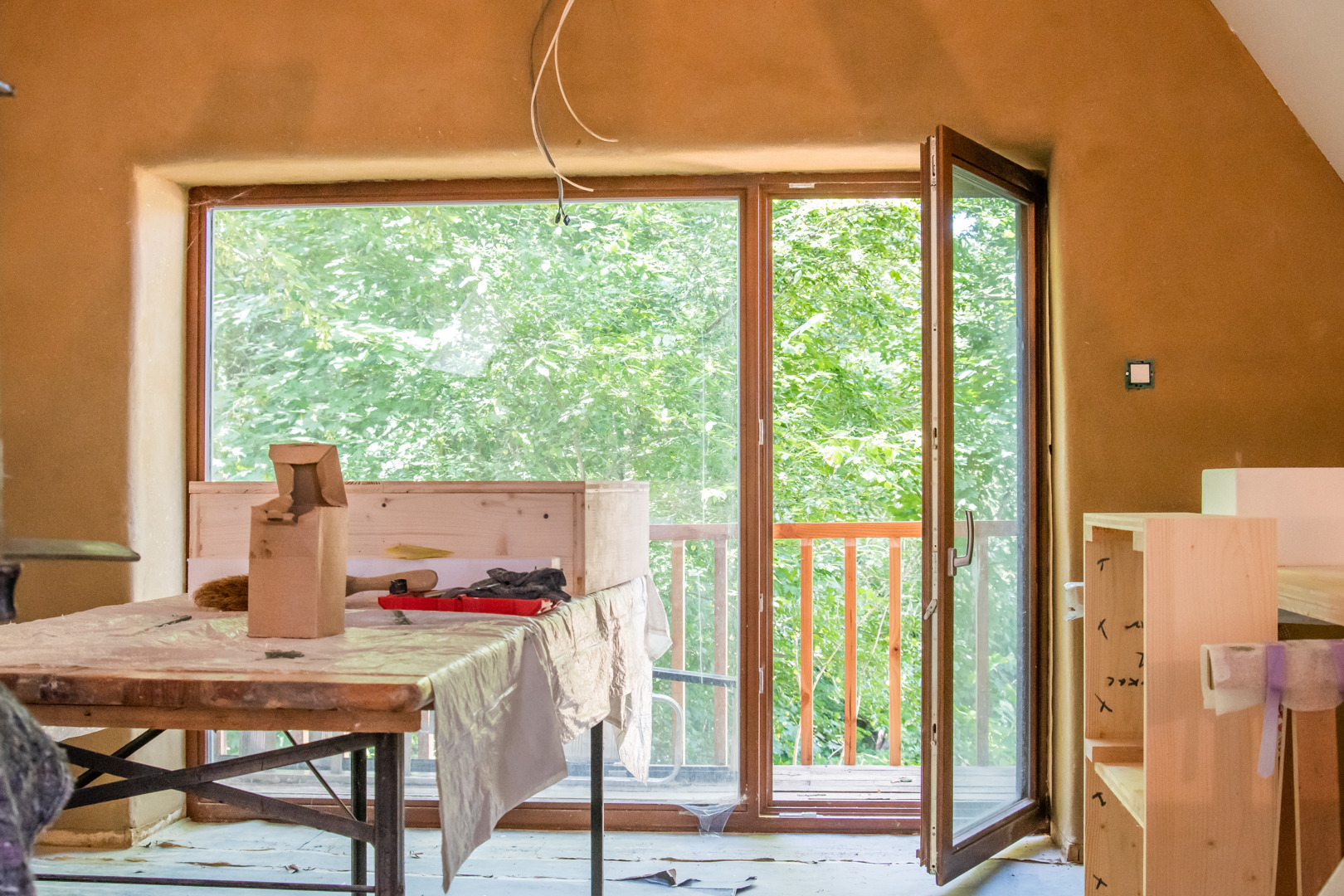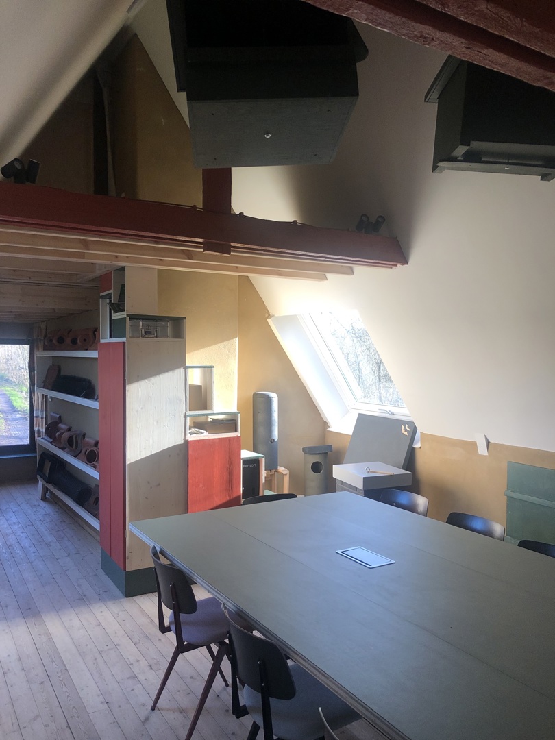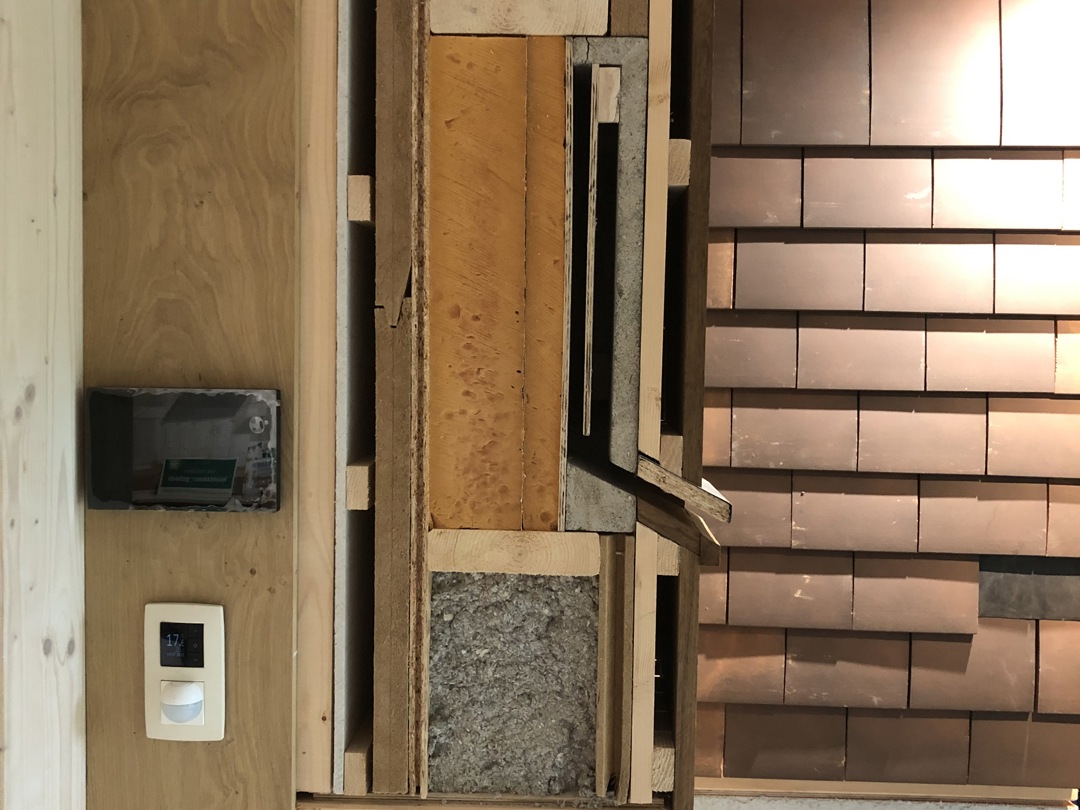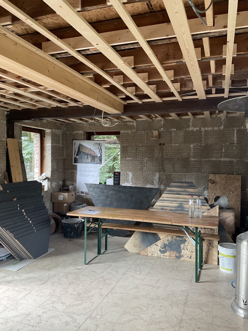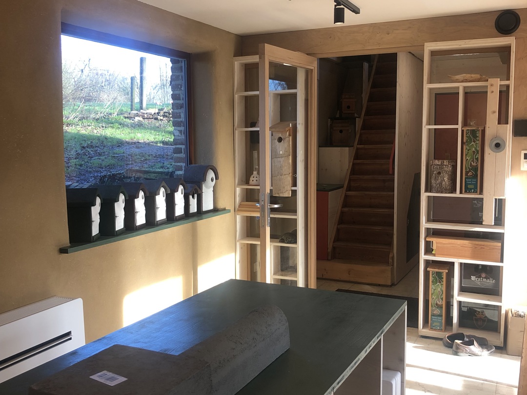 De woning zelf was al opgetrokken uit recup materialen (balken en bakstenen uit vroegere constructies) Aan deze laag hebben we een nog een laag van bio en geo -based isolatie en afwerkingsmaterialen toegevoegd. (Kalkhennep blokken, houtwolisolatie, gipsvezelplaten, leempleister, drielagen platen, natuurlijke olieen, enz) Hoe klein het project ook lijkt, het is een publieke ontmoetingsplaats waar geinteresseerden en professionals samenkomen om te vergaderen en ideeen op te pikken. De demonstratiewoning wordt niet bewoond en heeft een periodieke bezetting. De juiste techniek moet daar een antwoord op bieden. Toegangscontrole en fail-free bediening van verlichting en verwarming is daarom ook cruciaal. Er werd geopteerd voor decentrale warmtepompen per verwarmingsunit met muur aansluiting