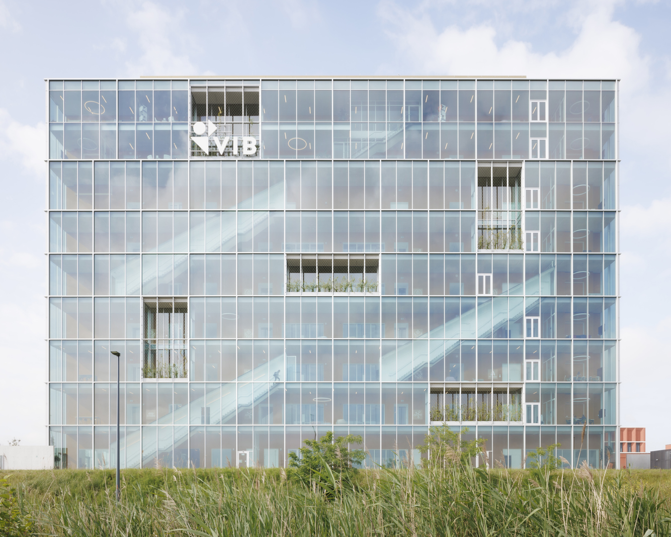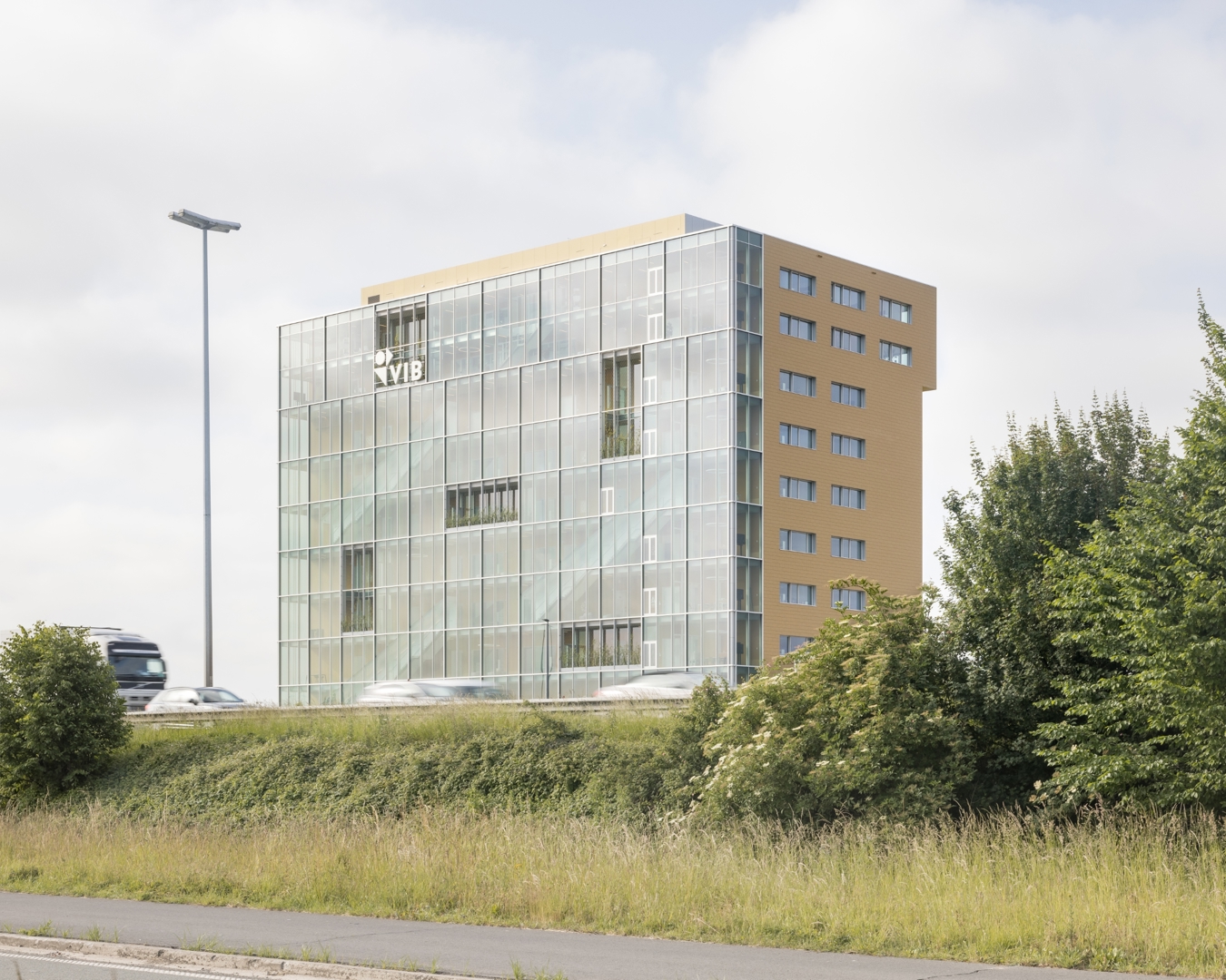 De opdracht: een nieuw gebouw op de wetenschapscampus in Zwijnaarde dat 22 bio-incubatoren en het VIB-hoofdkantoor samenbrengt in één helder, goed functionerend en flexibel geheel. Het moest bouwtechnisch doordacht, kostenefficiënt en verzorgd zijn, met een duidelijke wayfinding en een planlogica die wisselende gebruikersnoden kan opvangen. In de context van de E40 moest het zich profileren als poortwachter en herkenningspunt: een zichtbaar uithangbord voor biotech, terwijl het intern privacy, rust en concentratie voor labo- en kantoorwerk garandeert. Het ontwerp moest kaderen binnen een beeldkwaliteitsplan voor de achterliggende campus. Dit impliceerde een dubbel adres, nl. visibiliteit langs de E40 maar de hoofdinkom aan tegenovergestelde zijde waar de technologiecampus zal oprijzen.