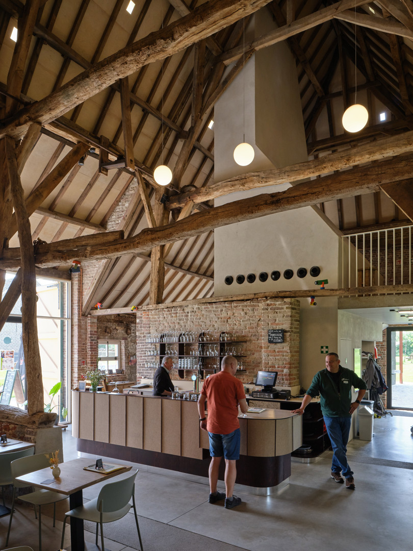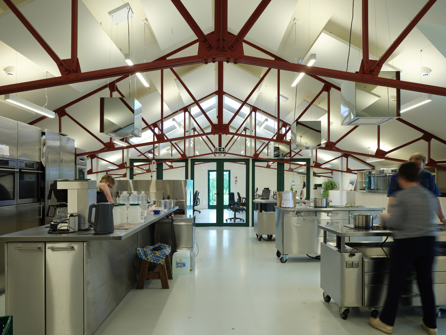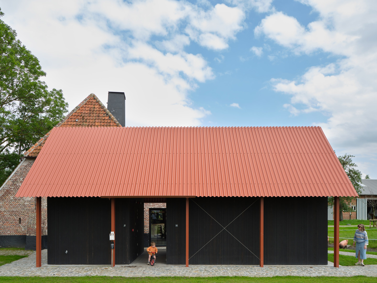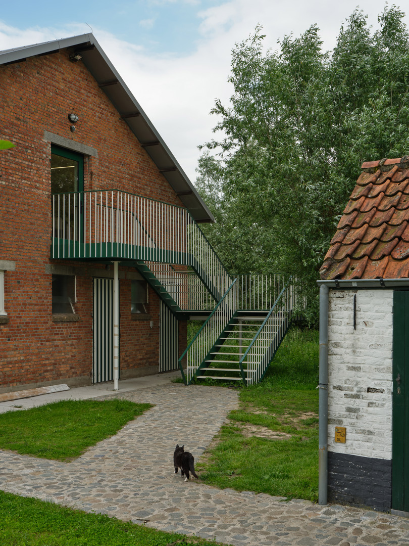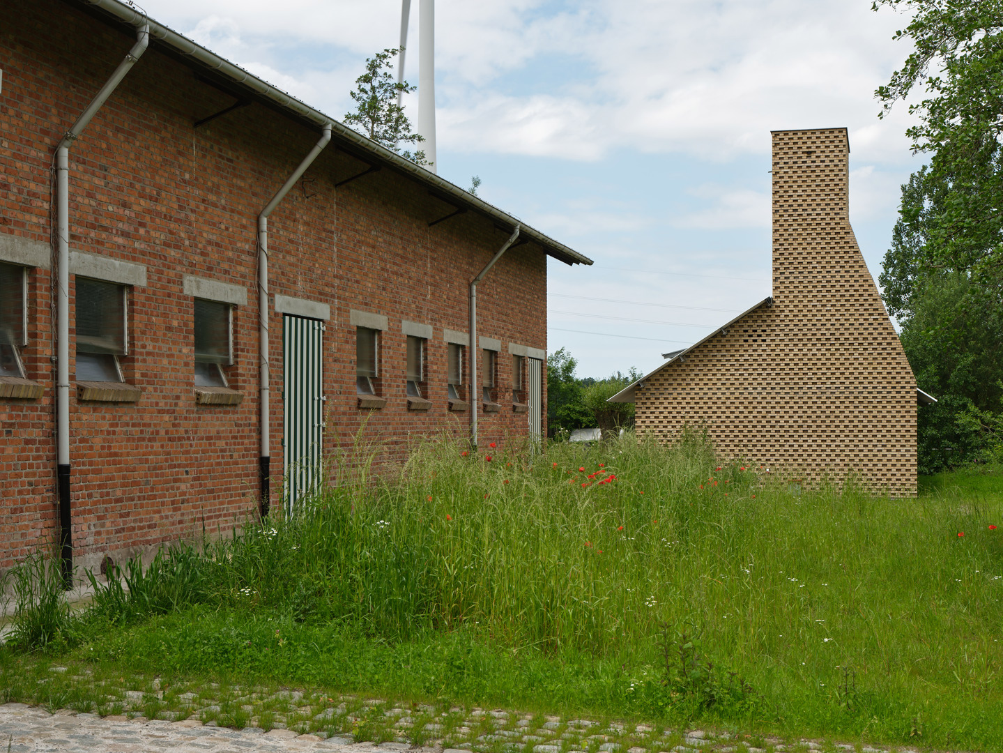 De grootste uitdaging lag in het verzoenen van erfgoedwaarden met hedendaagse noden. In plaats van het voorziene masterplan met een nieuw volume, werd gekozen om bestaande ruimtes zoals de eerste verdieping van de koestal maximaal te gebruiken. Hierdoor blijft de openheid van de site behouden en ontstaat meer ruimte voor groen. Nieuwe ingrepen worden leesbaar en eigentijds toegevoegd, zonder te concurreren met het historische geheel. Flexibiliteit wordt verzekerd via strategische circulatie en lichte, aanpasbare structuren, waardoor verschillende gebruiksscenario’s mogelijk zijn.