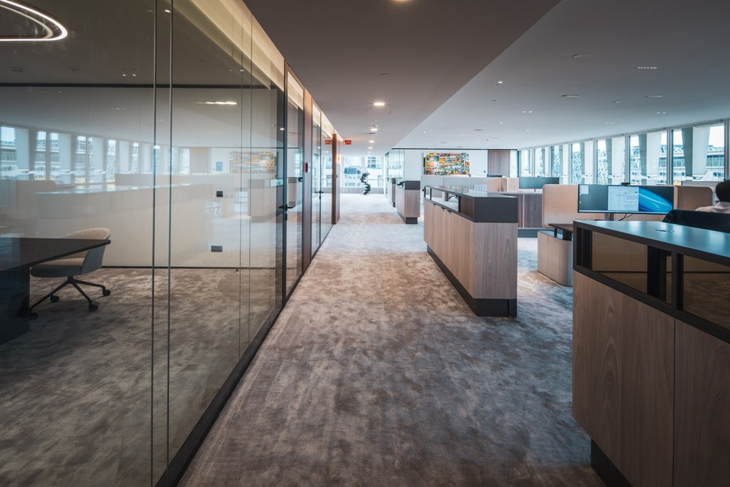 Gevestigd in het Marnix-gebouw in Brussel, was dit project bedoeld om een verdieping van kantoren te revitaliseren om het welzijn van de medewerkers te verbeteren, terwijl het de identiteit van het bedrijf weerspiegelde. De doelstellingen omvatten het voldoen aan de BREEAM- en WELL-standaarden, evenals een Space Planning-onderzoek dat het Nieuwe Werken (NWOW) integreert. De technische uitdaging lag in de onzichtbare integratie van technieken om de architectonische elegantie te behouden, en dat alles binnen een zeer korte uitvoeringstijd van 238 werkdagen. Deze opdracht vereiste sobere en slimme oplossingen die zich verbergen achter de vloeiende lijnen, om een omgeving te bieden die zowel functioneel als inspirerend is.
