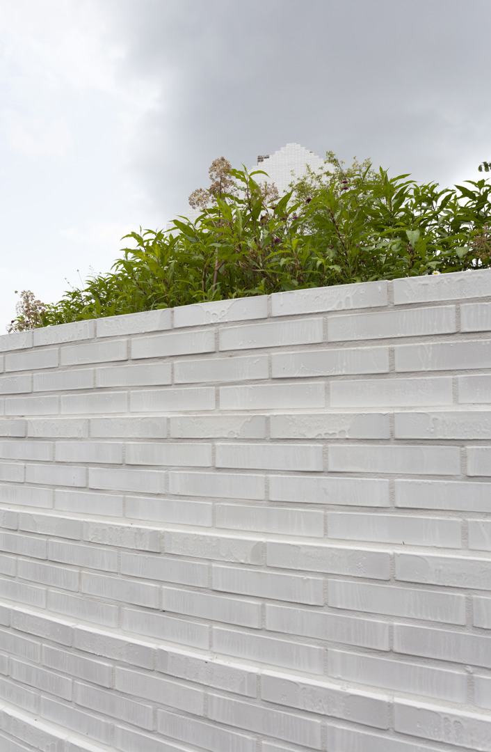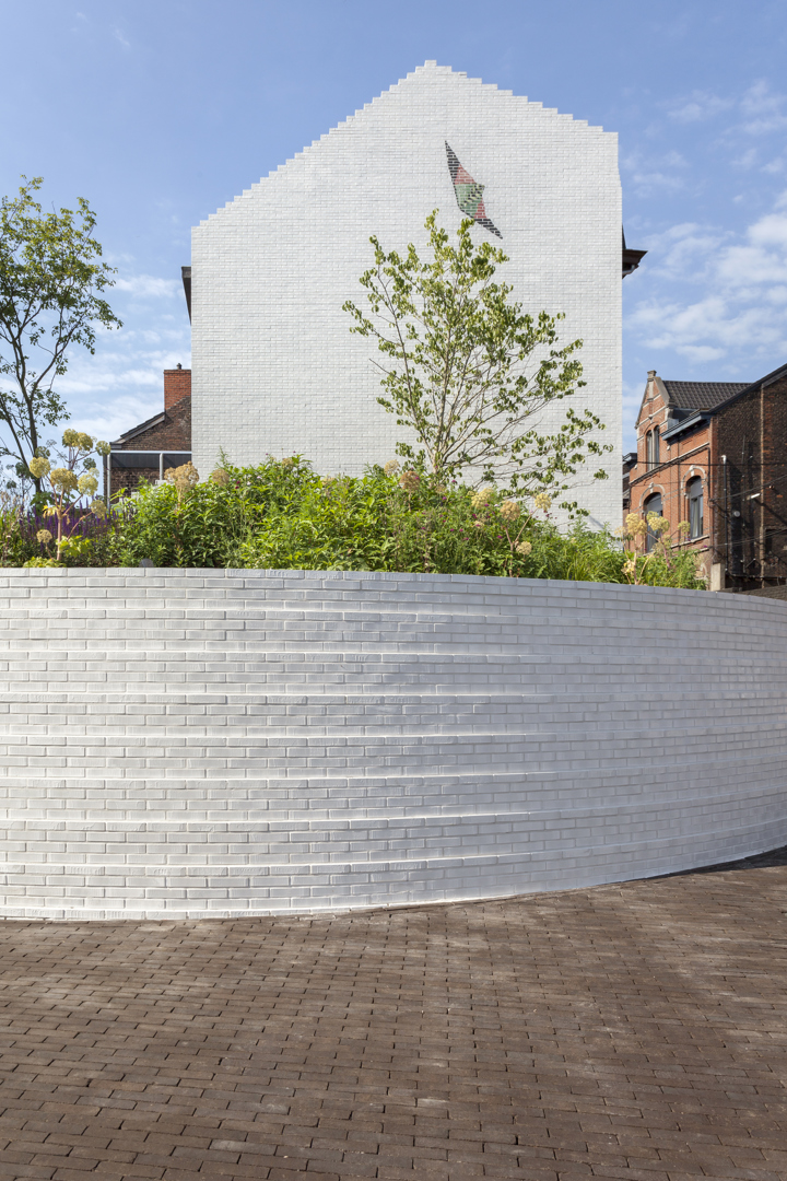 Door een bebouwd en verhard perceel te vervangen door een “wonderlijke tuin” op een met groen begroeide heuvel, draagt het project actief bij aan het ondoordringbaar maken van de bodem. Deze transformatie zorgt voor een betere opname van regenwater en beperkt de afvloeiing in een dichtbebouwde omgeving. De keuze van de plantensoorten bevordert de lokale biodiversiteit en gaat tegelijkertijd hitte-eilanden tegen dankzij de verdamping. Ten slotte is het gebruik van witte geglazuurde bakstenen op de gevels niet alleen esthetisch: het weerkaatst het licht en vermindert de warmteopname, waardoor de albedo van de locatie wordt geoptimaliseerd voor thermisch comfort.
