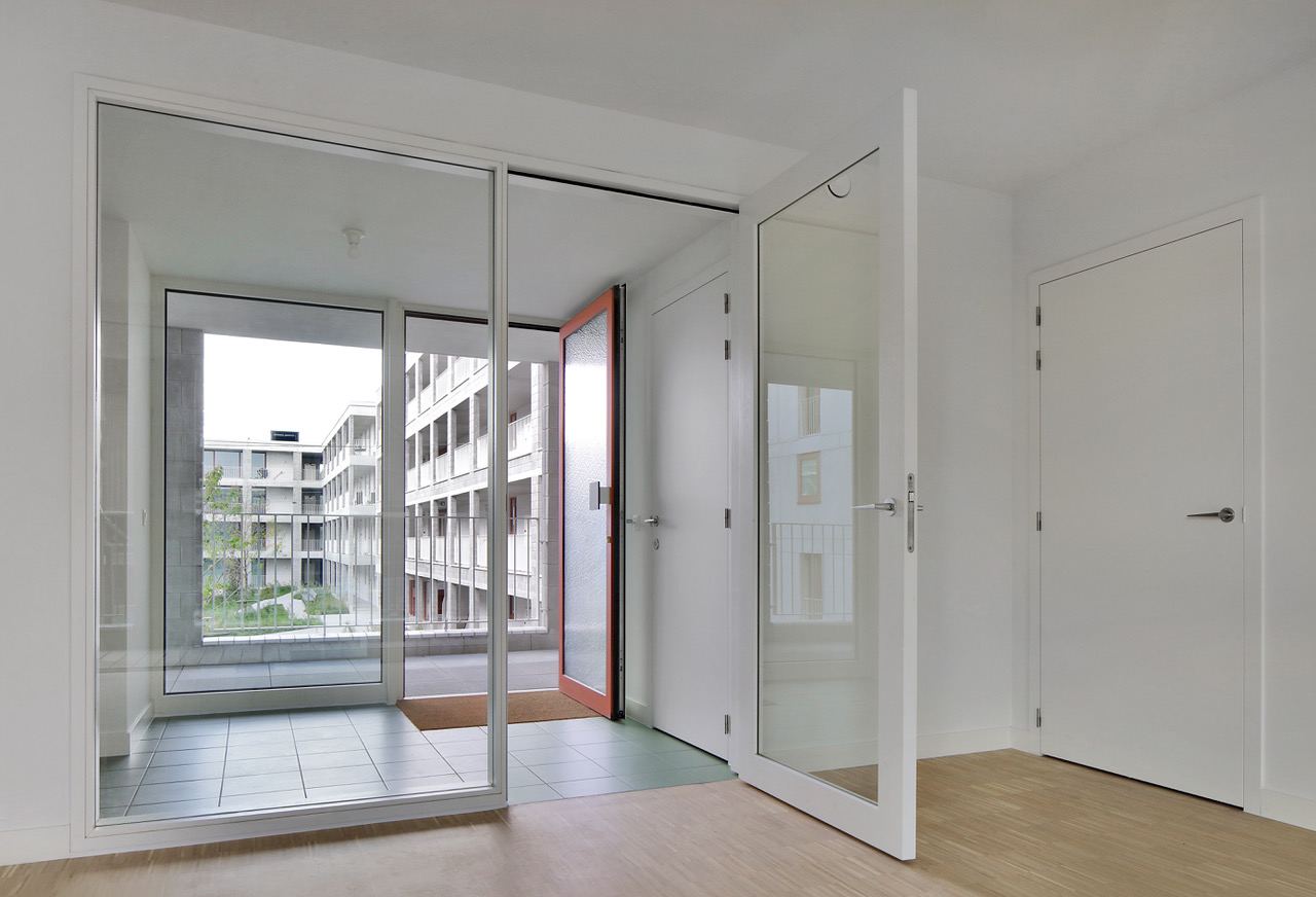 Door de grote woonvraag in Vlaamse steden worden volop andersoortige plaatsen aangesneden, zoals de voorhaven van de Muide. Bij de opstart (2010) was Kaai 24 vooruitstrevend: het schikt grootschalig collectief wonen in een ietwat verwaarloosde buurt én brengt drie doelgroepen samen. Als antwoord op de context oogt het volume van ver monumentaal; van dichtbij toont zich de voor het wonen noodzakelijke gelaagdheid, verscheidenheid, finesse. Het binnenplein met gaanderijen rondom injecteren het blok met een shot collectiviteit. Door aandacht voor de grenzen tussen (semi)publiek en privaat profiteert elke unit (sociaal of koophuur) van dezelfde generositeit. Gemengde woonprojecten als deze mogen - naast de huidige focus op monotone woonenclaves - dringend meer navolging krijgen.
